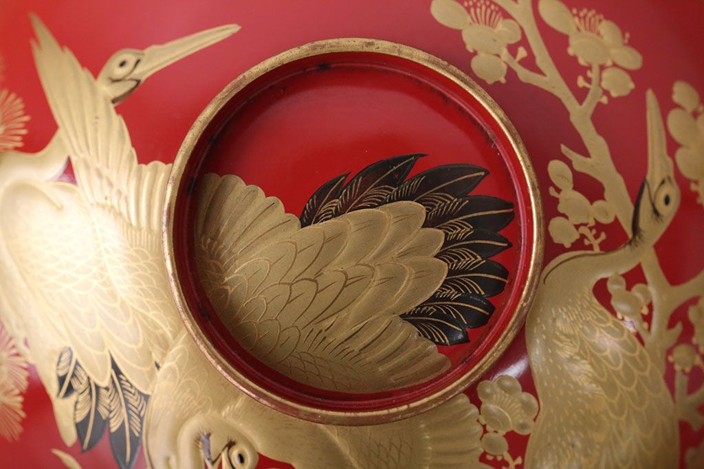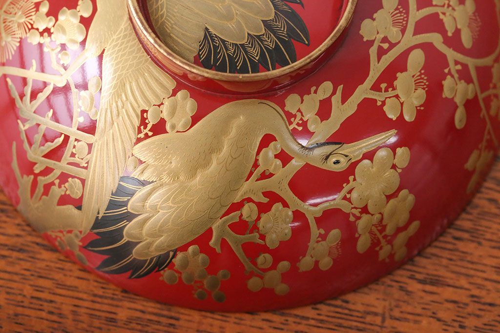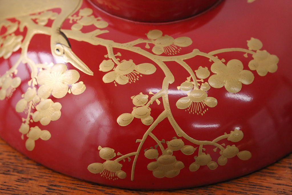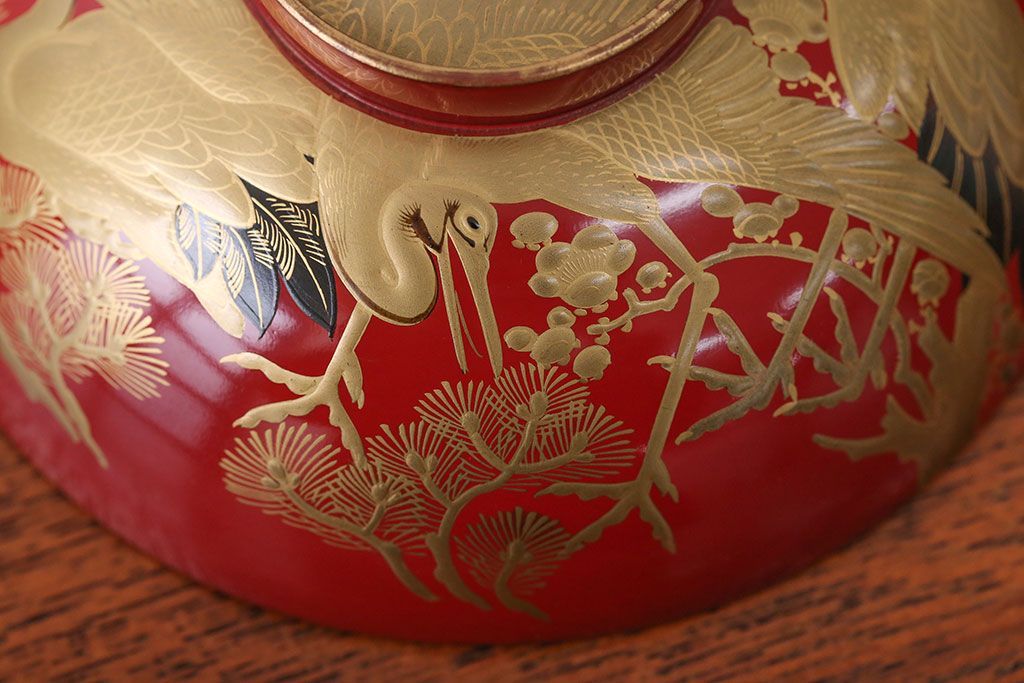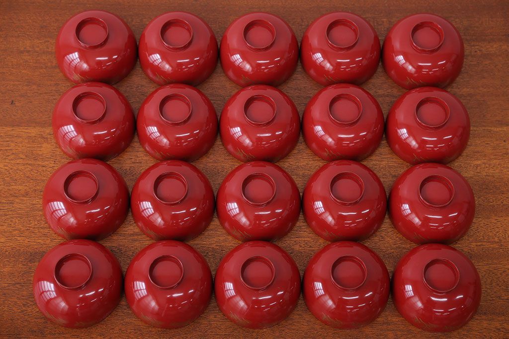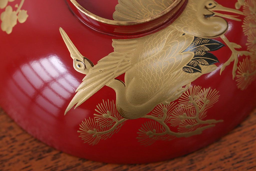 アンティーク雑貨 アンティーク 朱梅松鶴高蒔絵木製椀20客(漆器)