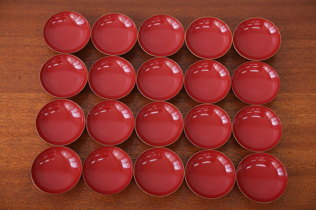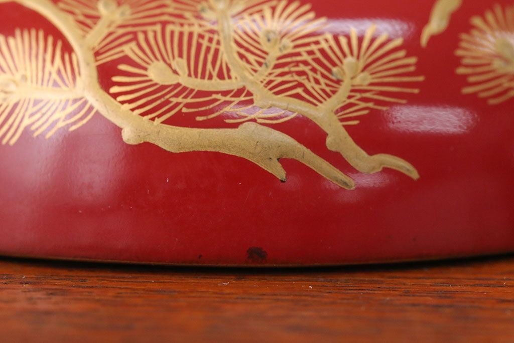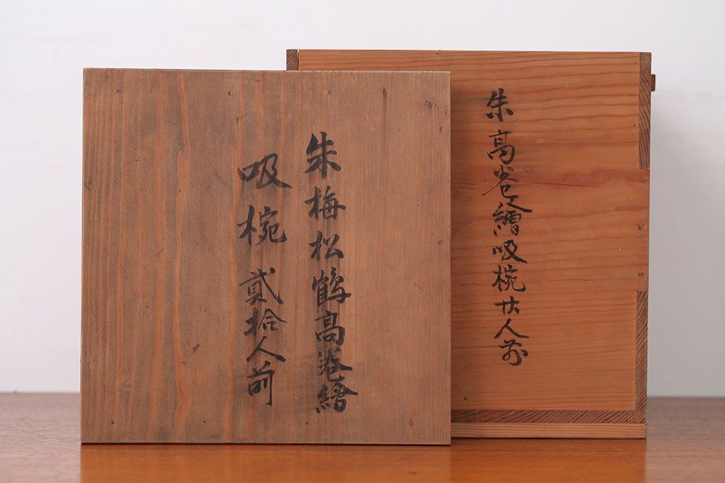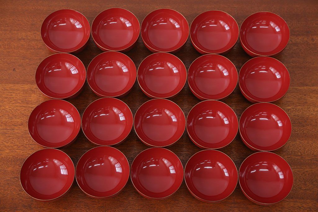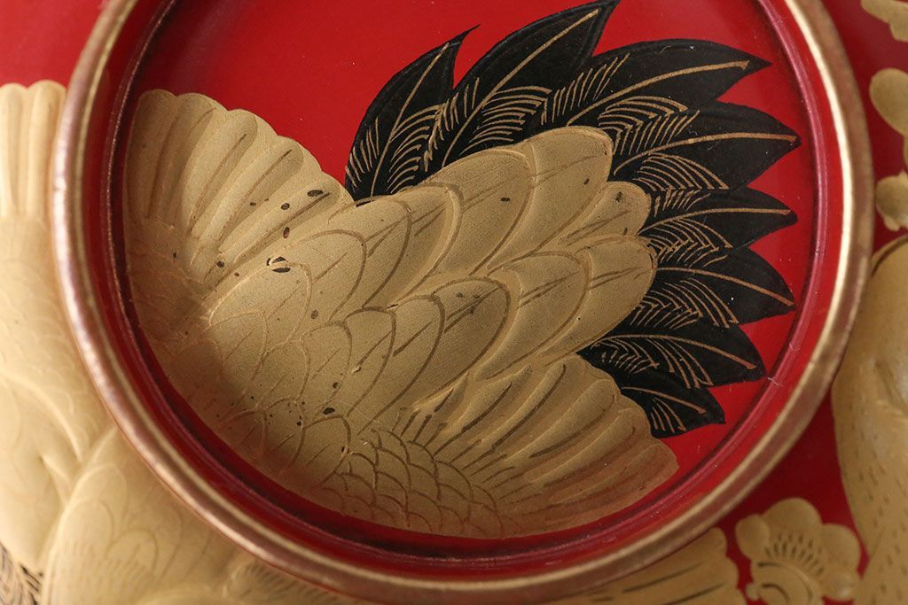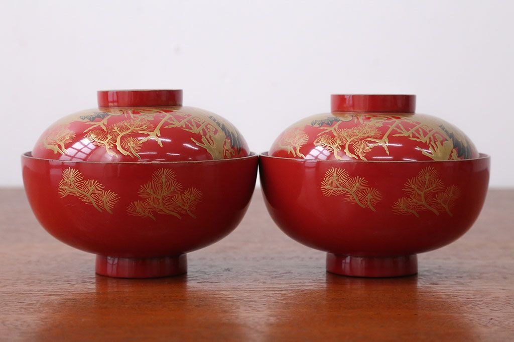 アンティーク雑貨 アンティーク 朱梅松鶴高蒔絵木製椀20客(漆器)