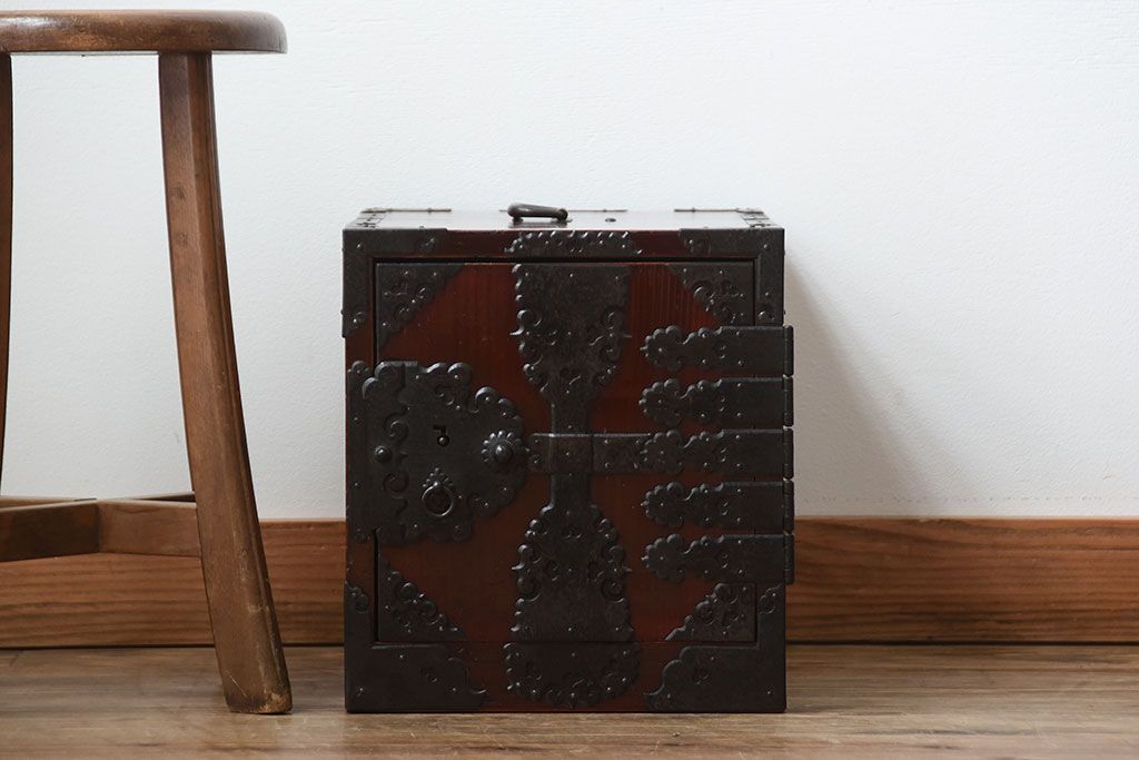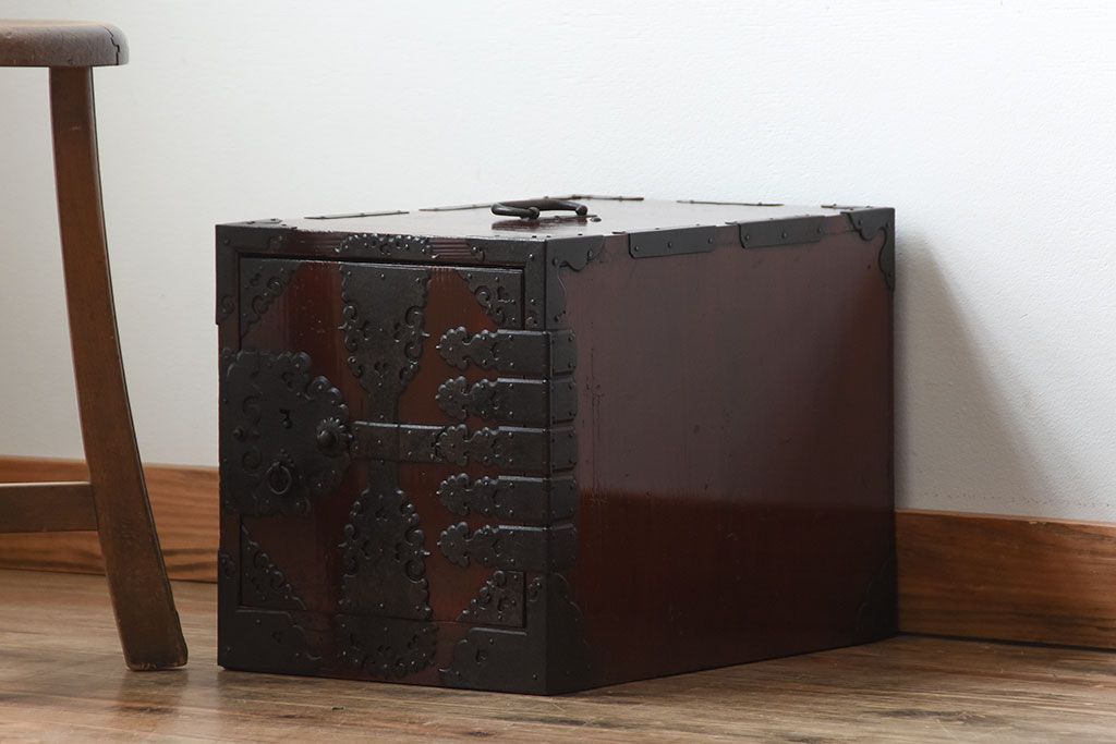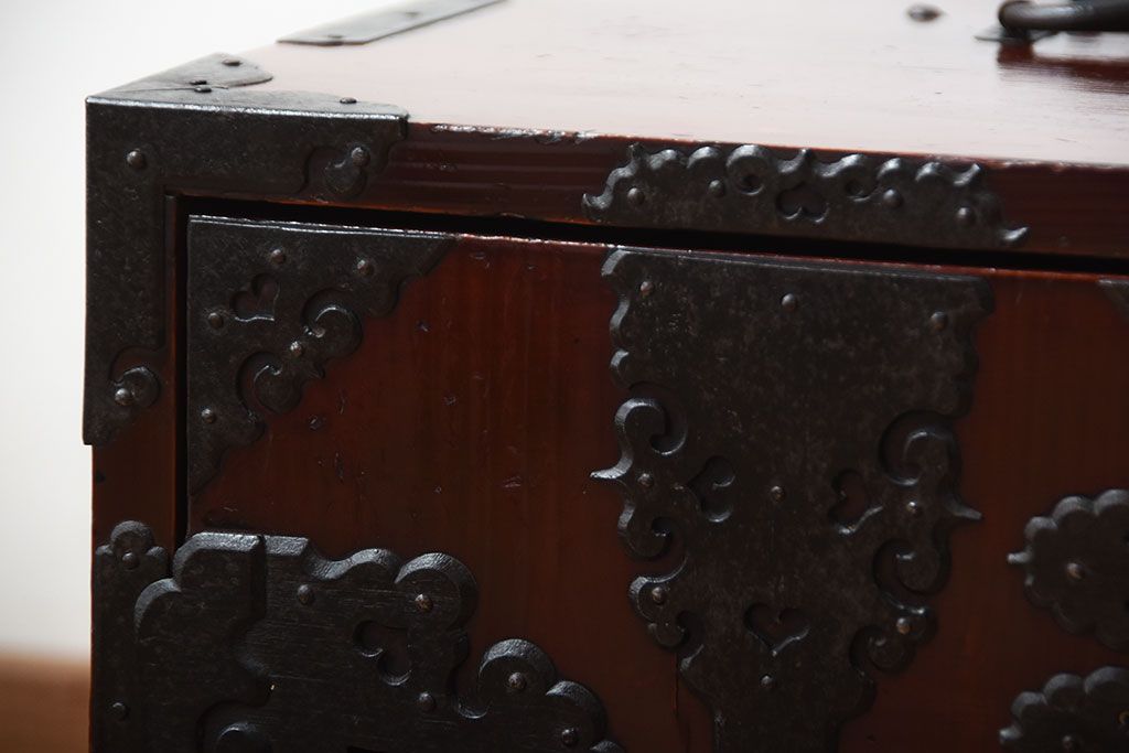 古民具・骨董 金具が重厚な船箪笥(掛硯型、懸硯型、三国箪笥)です。