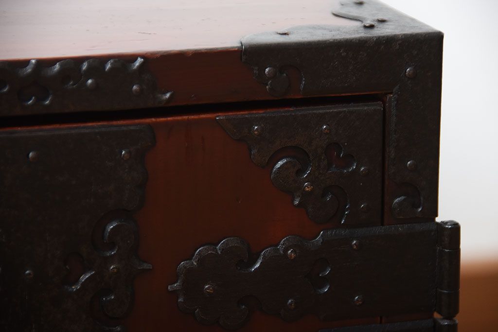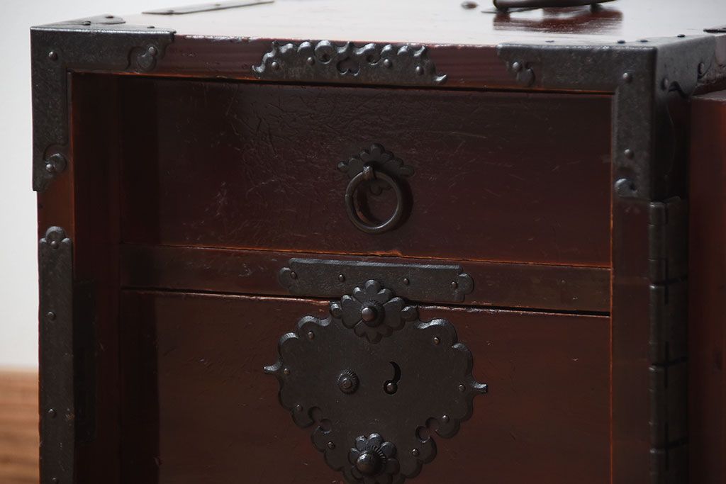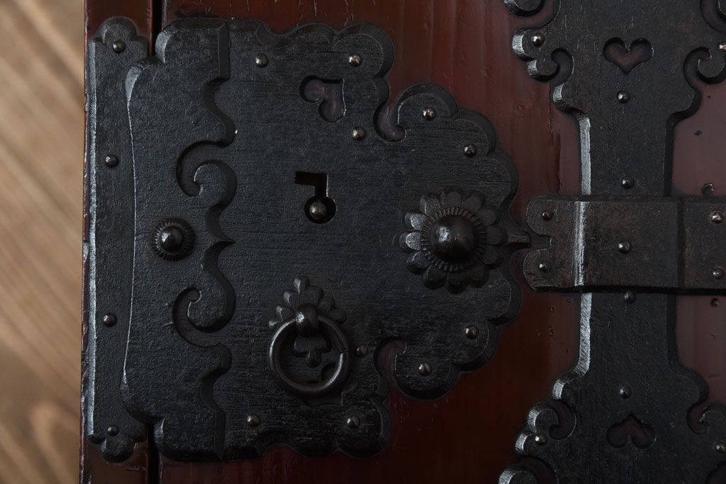 アンティーク家具 古民具・骨董 金具が重厚な船箪笥(掛硯型、懸硯型、三国箪笥)