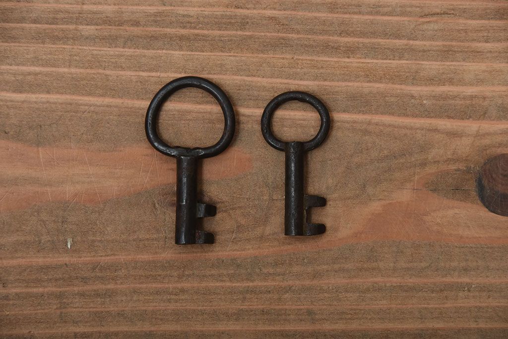 鍵は付属します。画像にありますように、袋に入れお付けします。スムーズに動くように調整していますが、あくまでも古いものや中古品ですので、長期の使用保証は出来かねます。ご購入後不具合が発生した場合は、当店でサポートさせていただきますので、お気軽にご相談くださいませ。