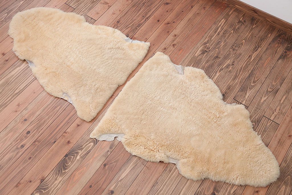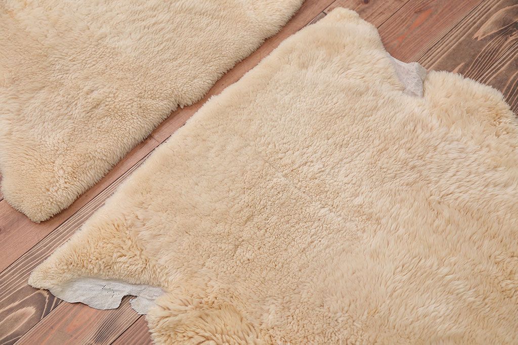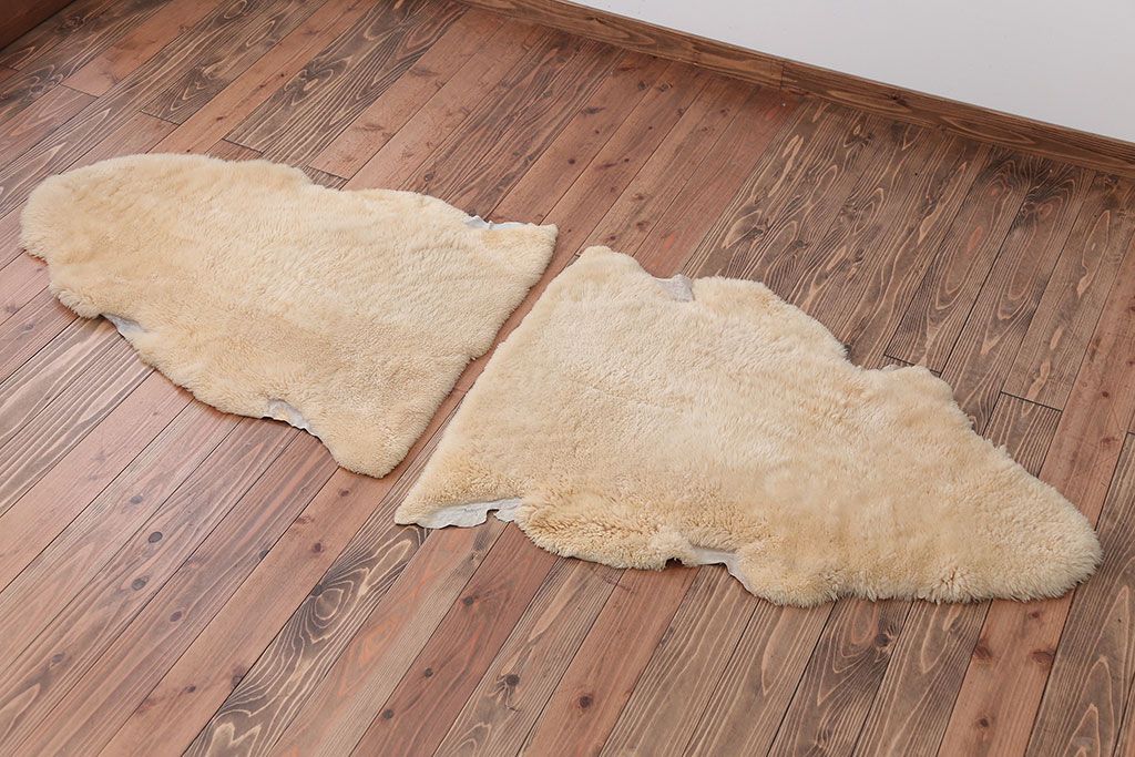 アンティーク雑貨 ビンテージ 高級感あふれるムートンのラグマット2枚セット