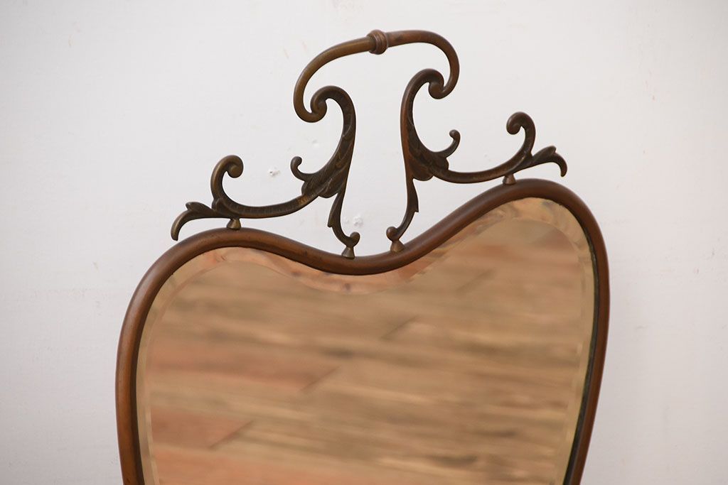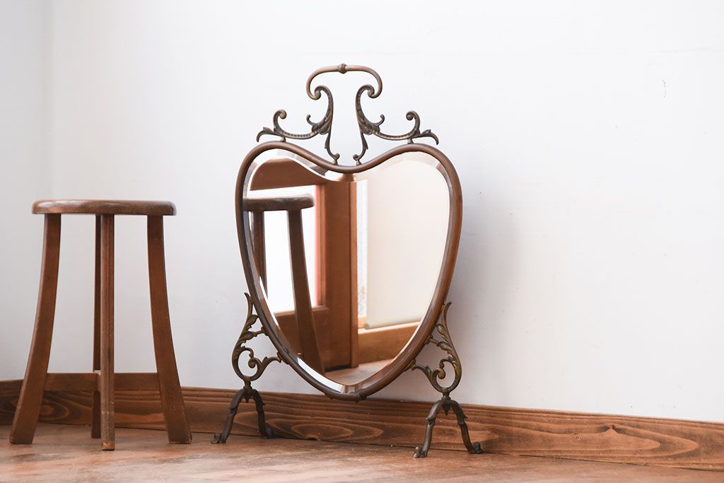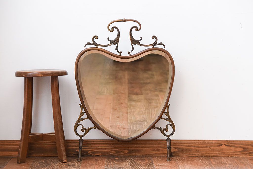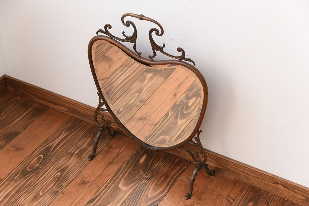 ラフジュ工房> 鏡> 卓上鏡 > アンティーク雑貨 イギリスアンティーク おしゃれなハート型の真鍮製ファイヤースクリーン(ミラー)