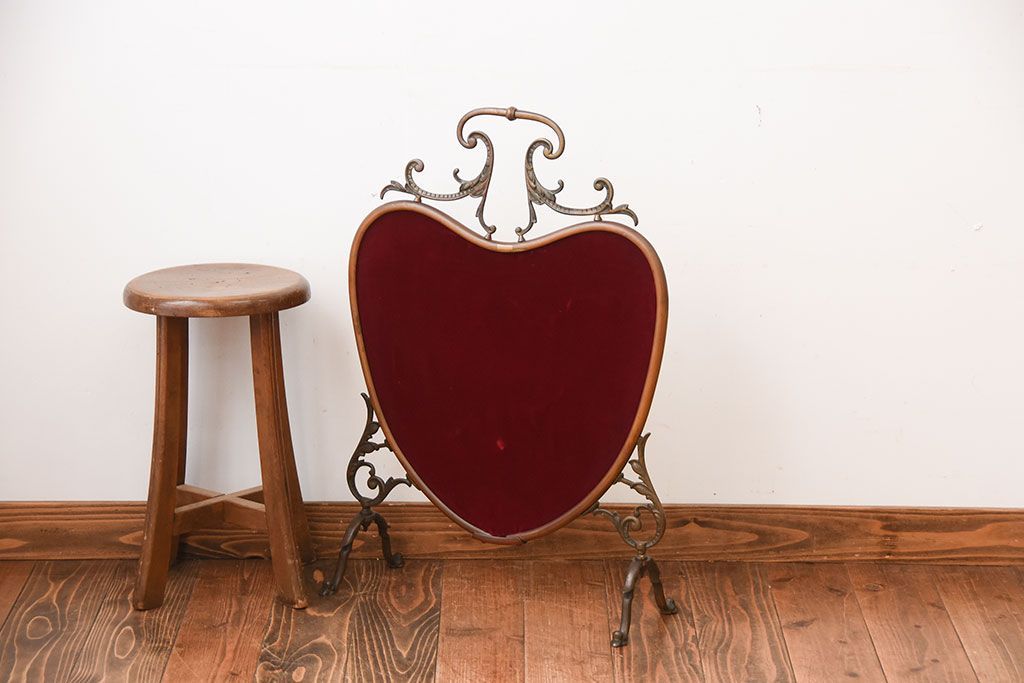 ラフジュ工房> 衝立・パーテーション > アンティーク雑貨 イギリスアンティーク おしゃれなハート型の真鍮製ファイヤースクリーン(ミラー)