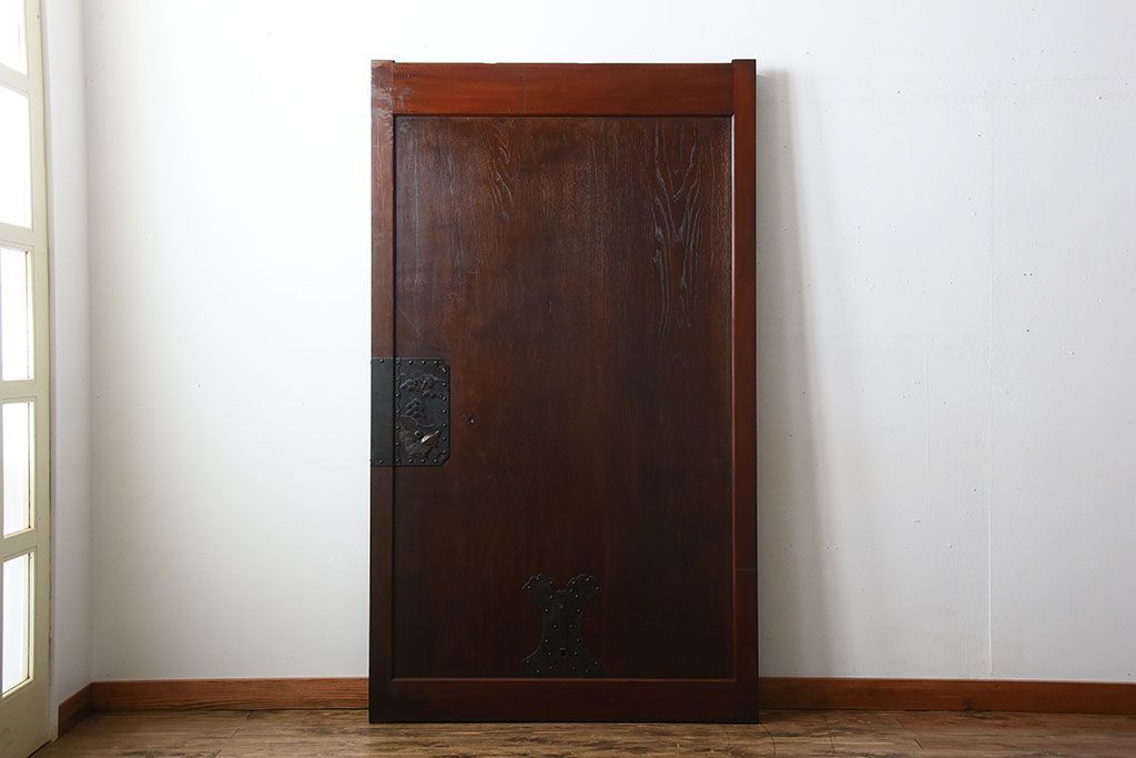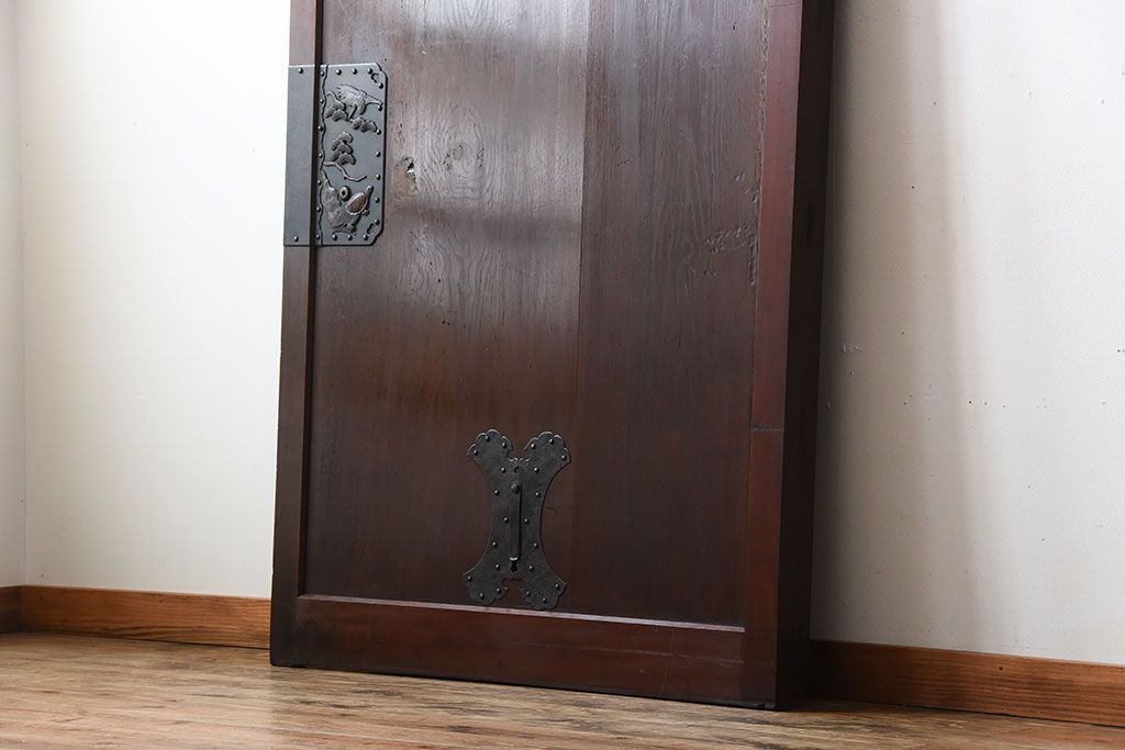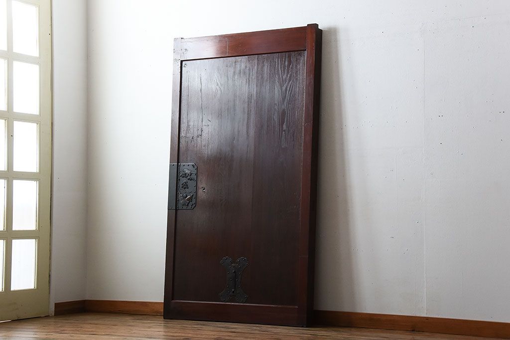 古民具・骨董 枠は檜材・鏡板は栗材の金具が美しい蔵戸(玄関戸)