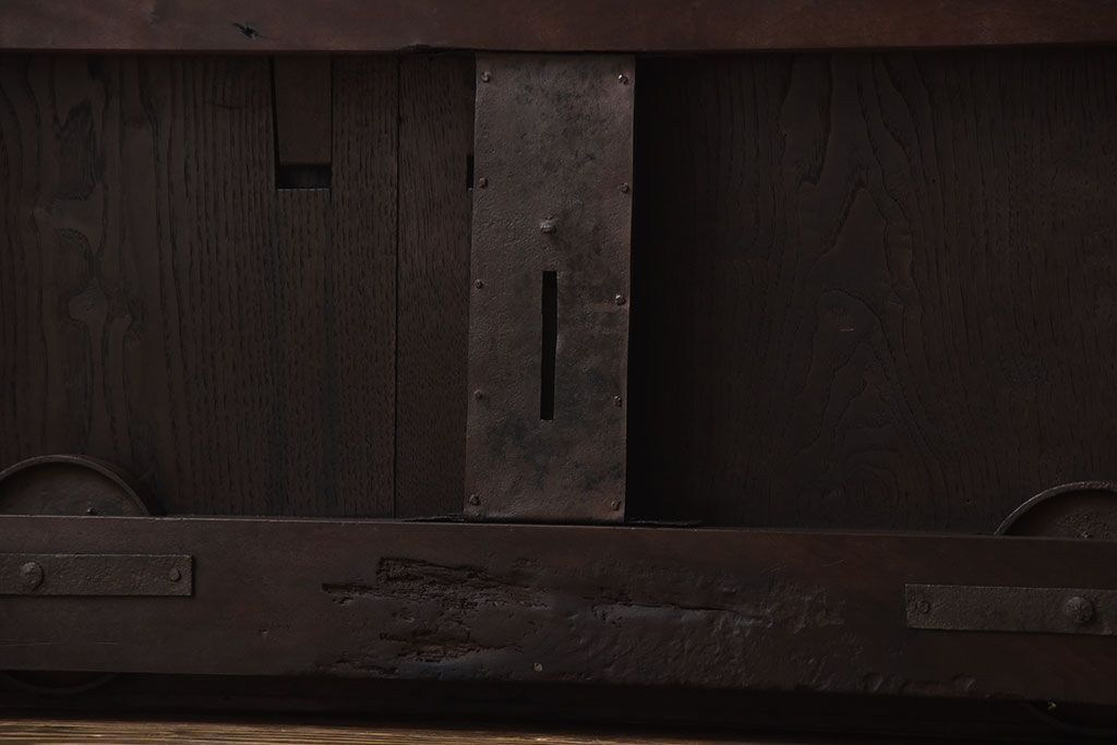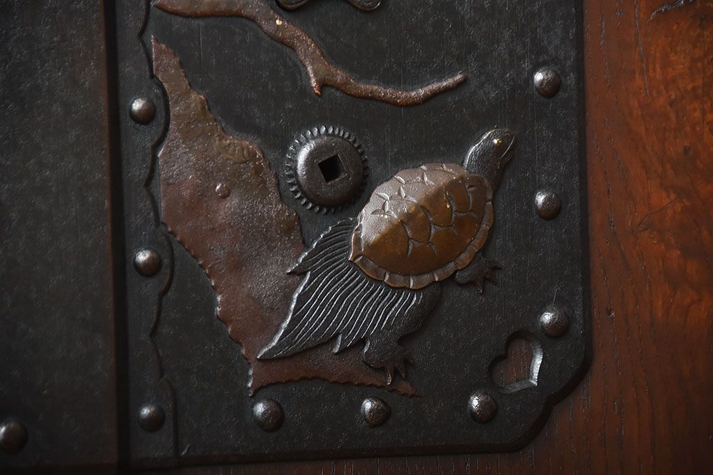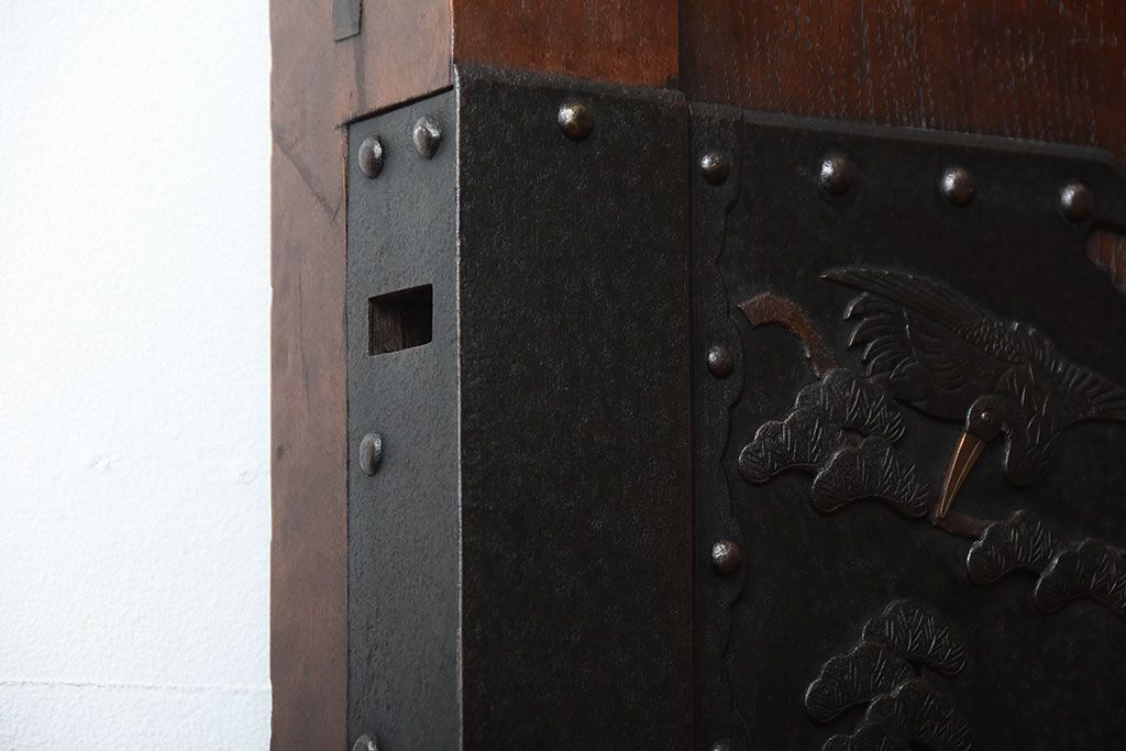 古民具・骨董 枠は檜材・鏡板は栗材の金具が美しい蔵戸です。