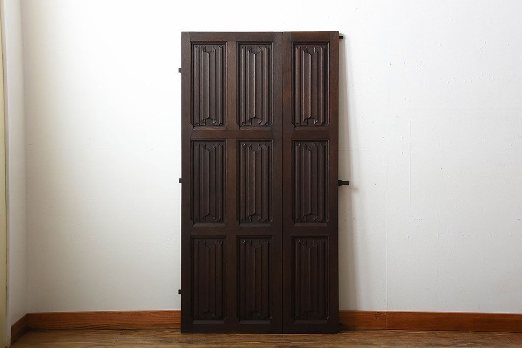 イギリスアンティーク 重厚なオーク材の優美な扉(ドア)(1)
