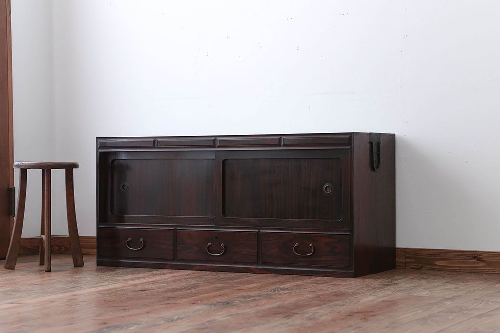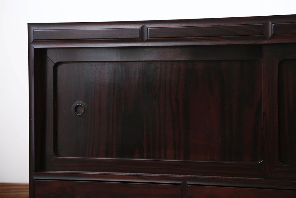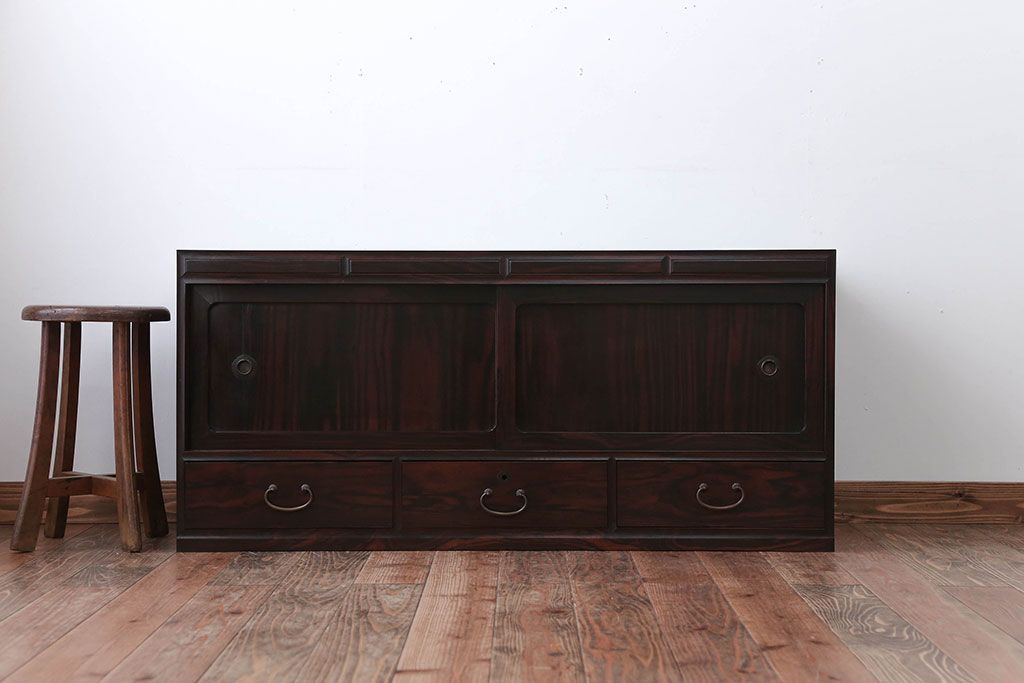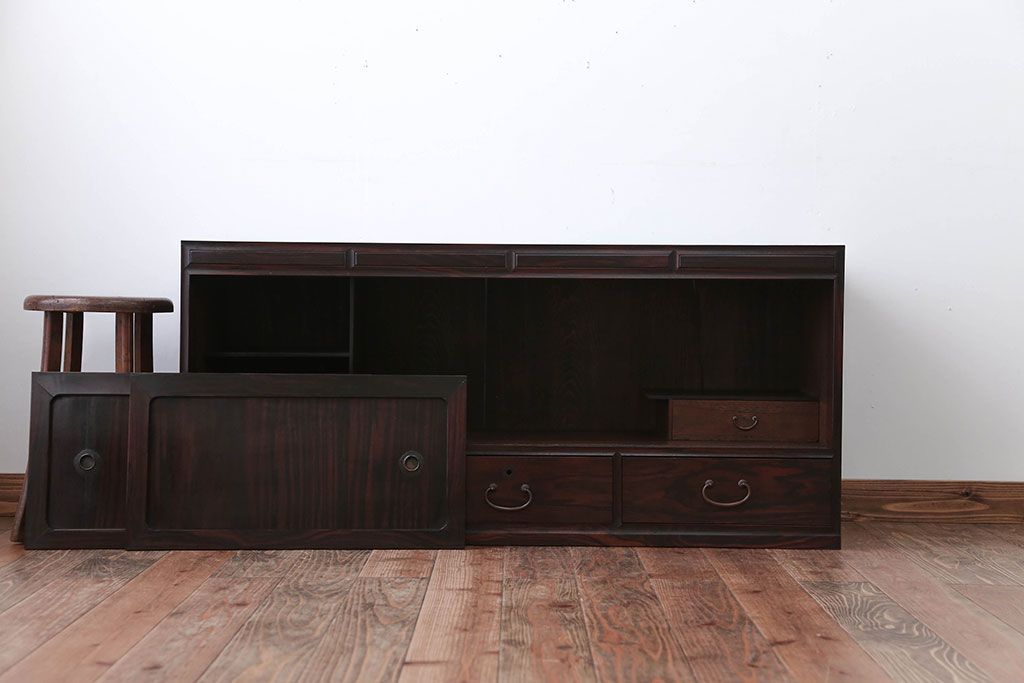 古民具・骨董 前面黒檀材!アンティークテレビボード(ローボード)です。