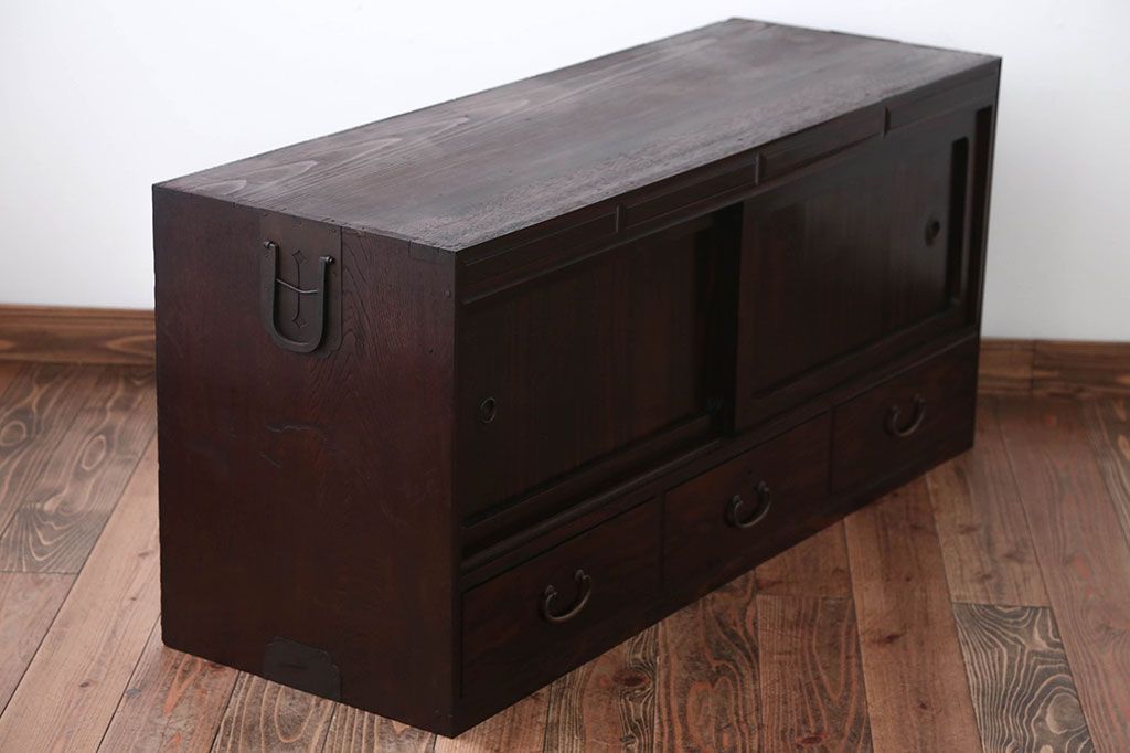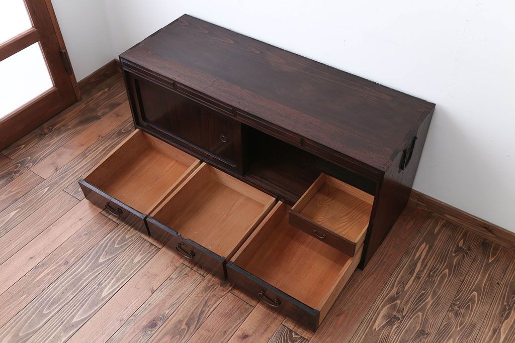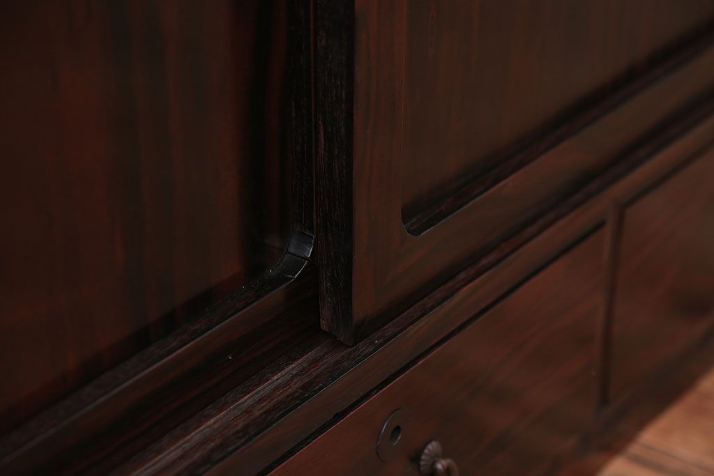 アンティーク家具 古民具・骨董 前面黒檀材!アンティークテレビボード(ローボード)