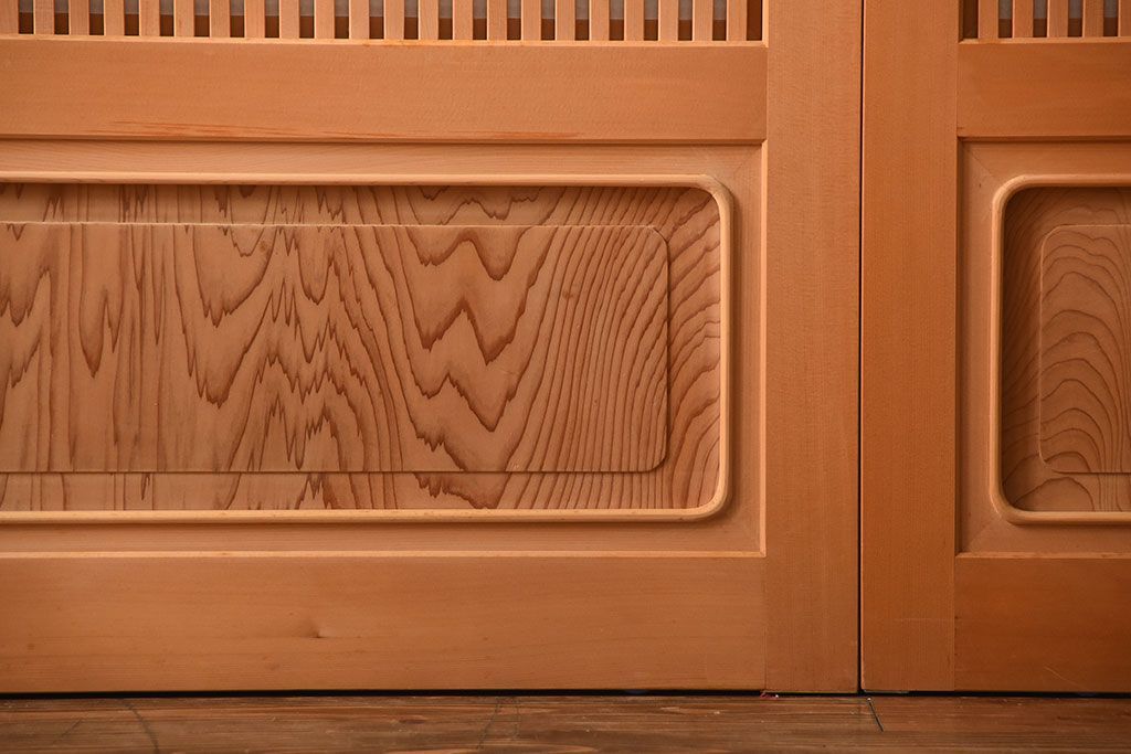 本体に檜、腰板に杉を使用したとてもキレイな高級格子戸です。