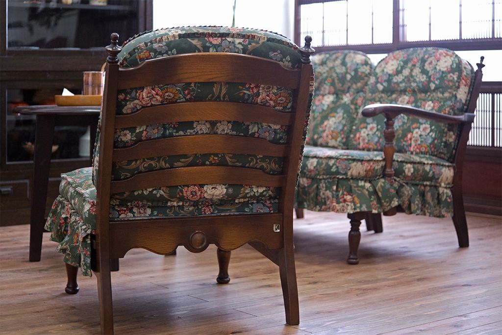 チェアの美しいフォルムとクラシックなパターンがマッチした、