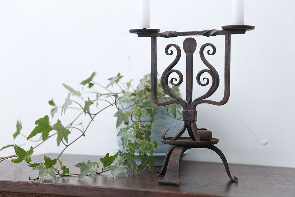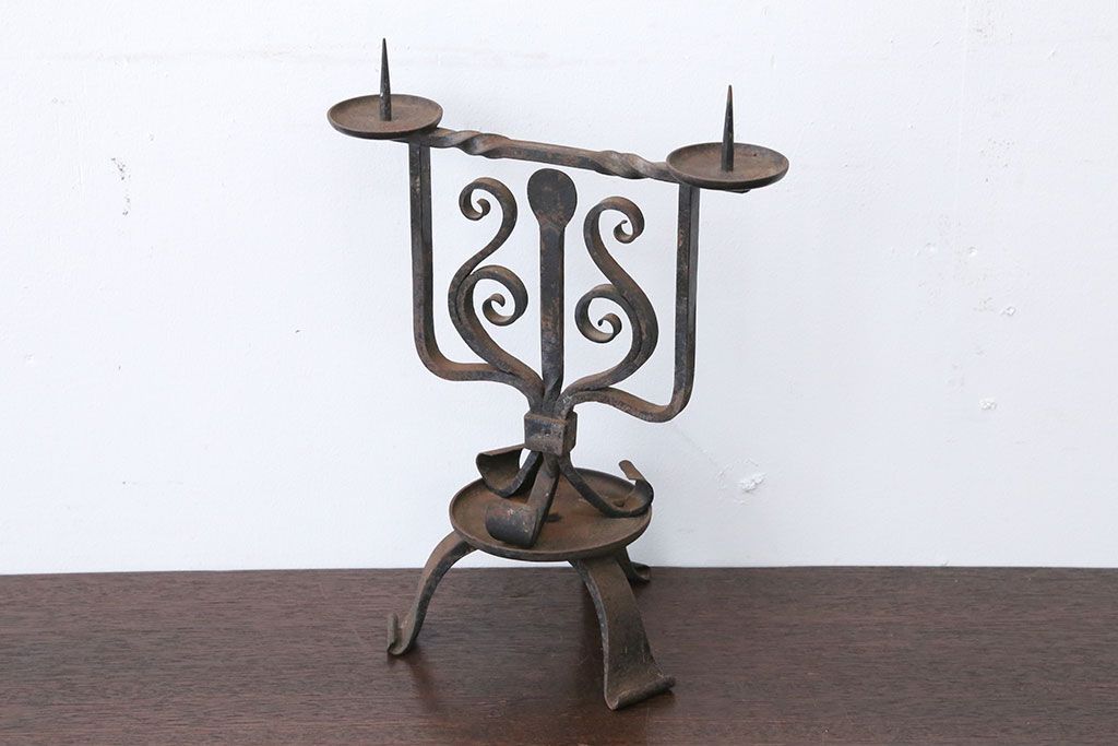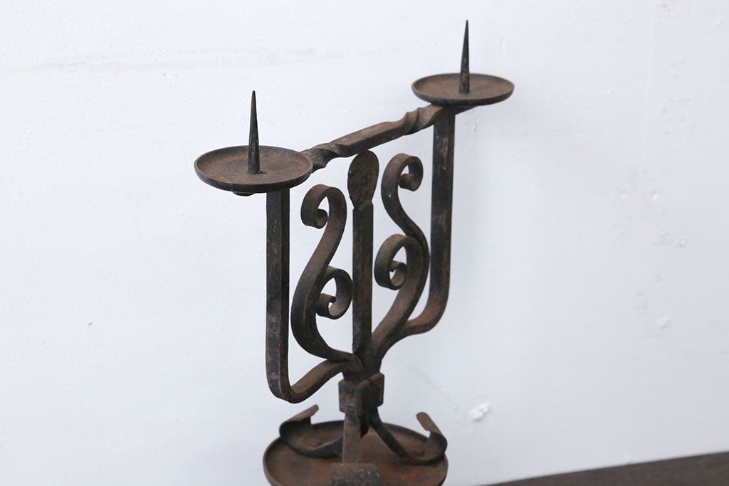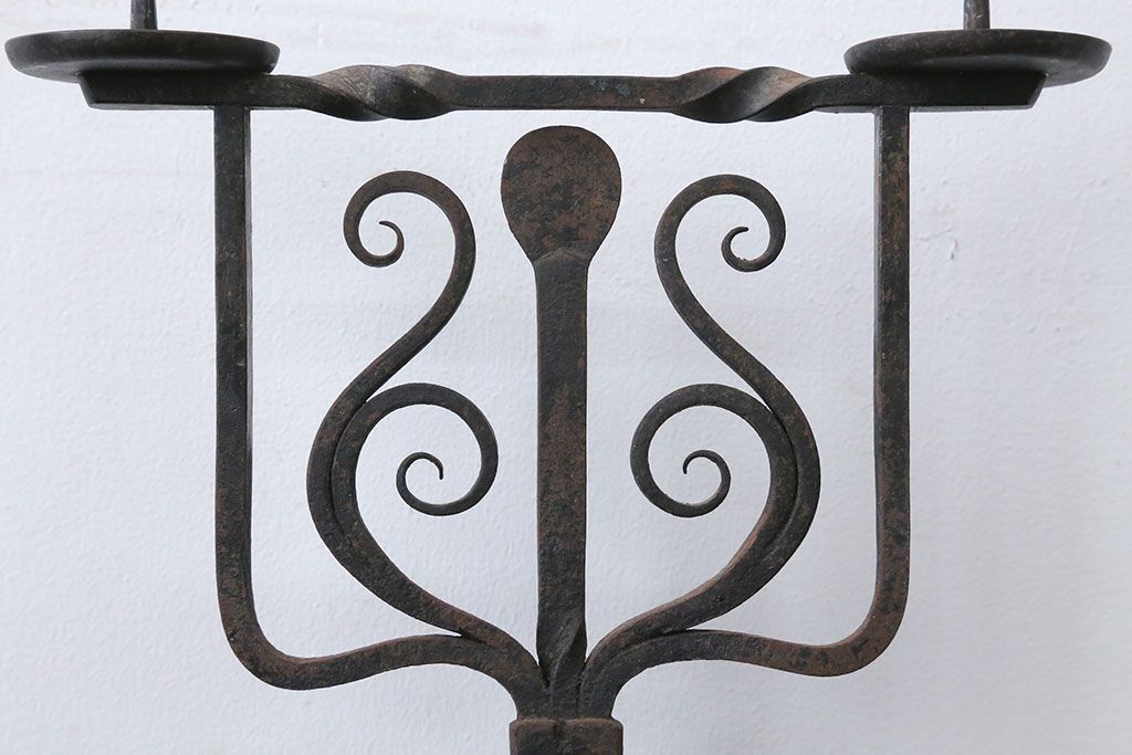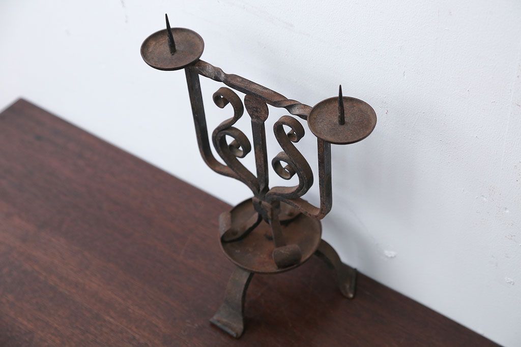 アンティーク雑貨 イギリスアンティーク 重厚なアイアン製2灯キャンドルスタンド