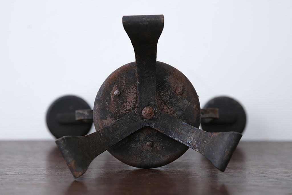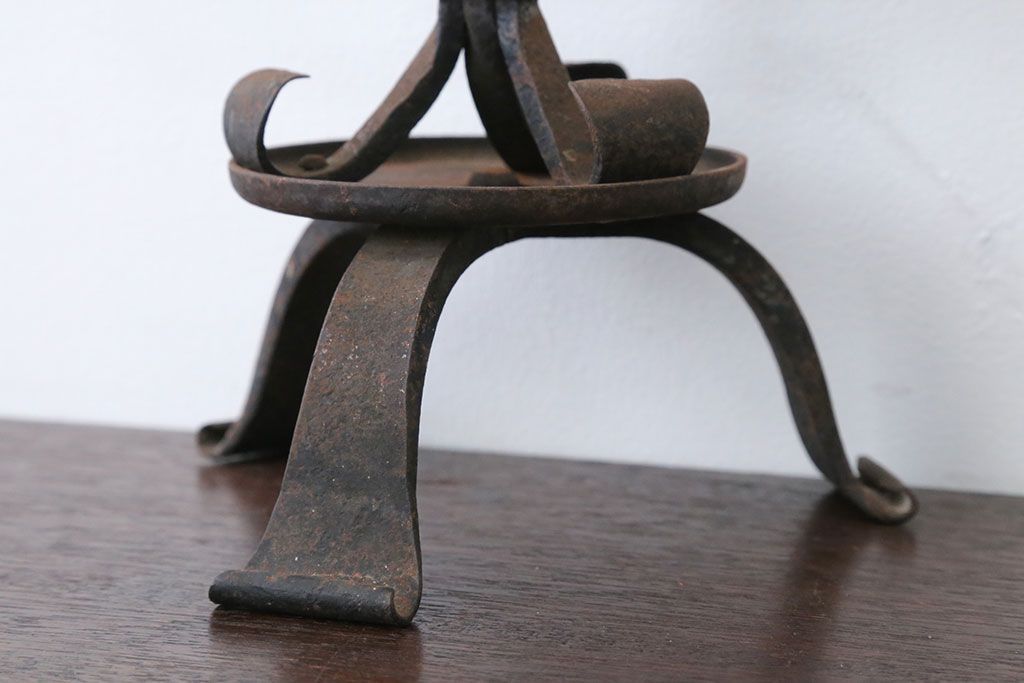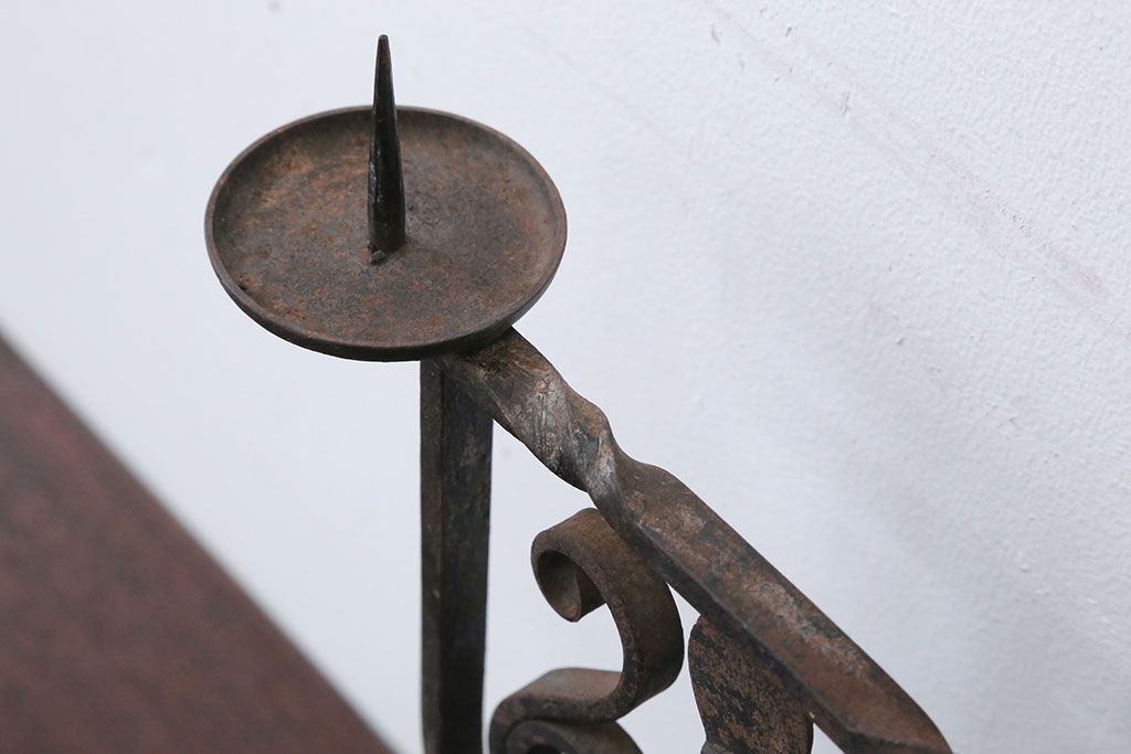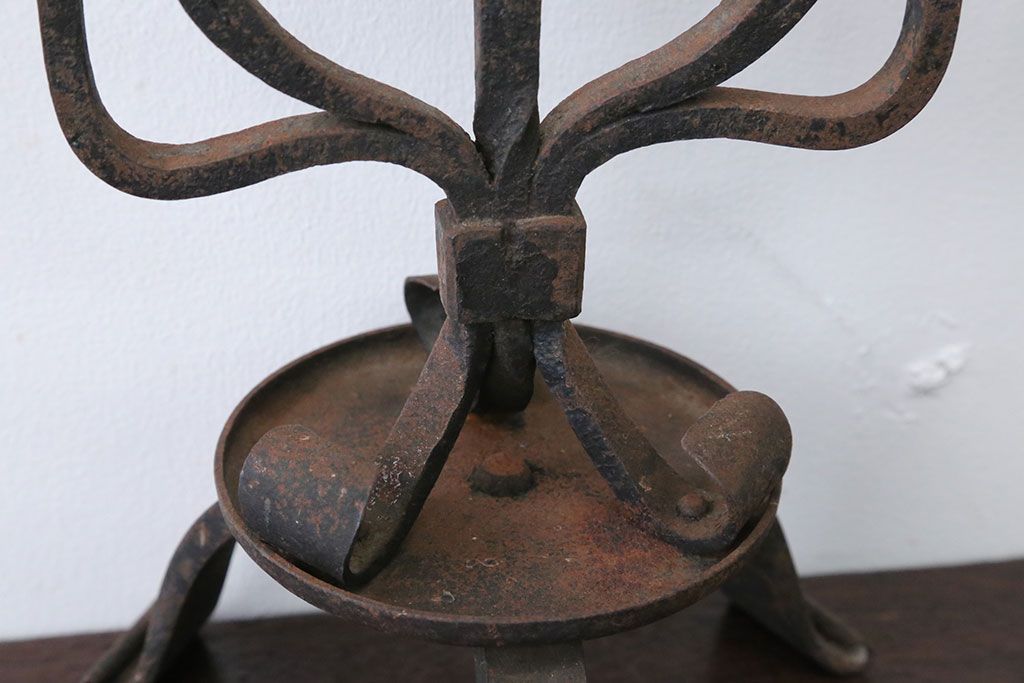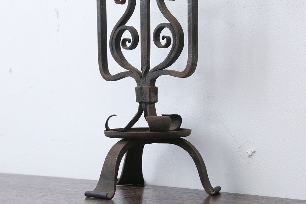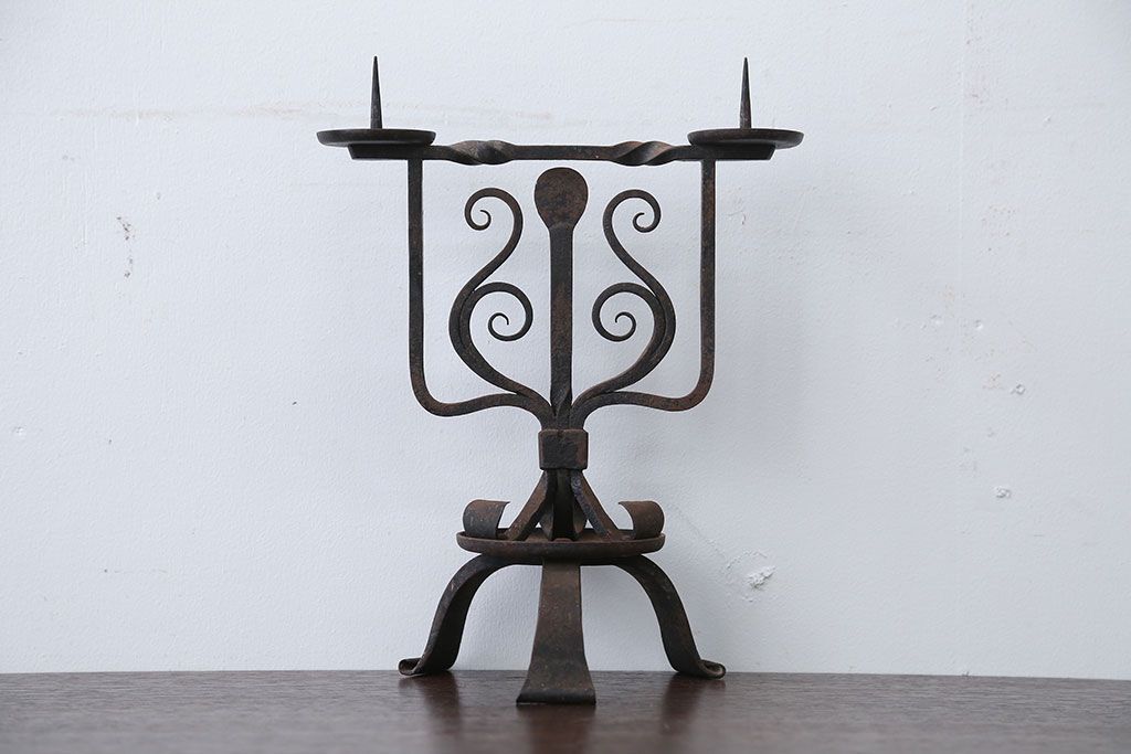 アンティーク雑貨 イギリスアンティーク 重厚なアイアン製2灯キャンドルスタンド