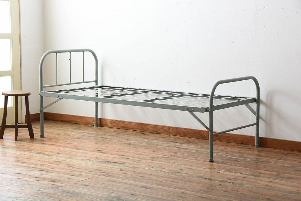 ベッド > アンティーク家具 アンティークペイント 爽やかな色のアイアン折り畳みベッドフレーム