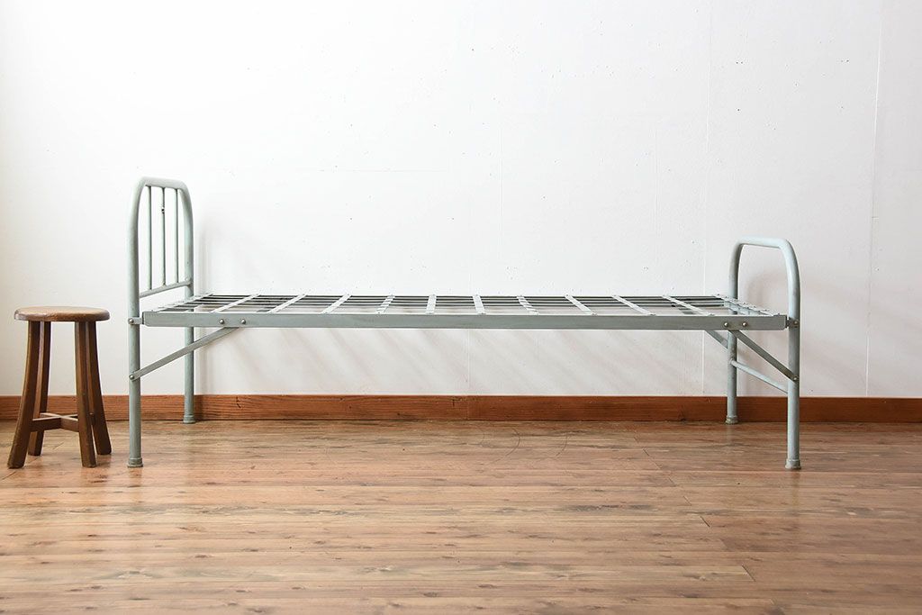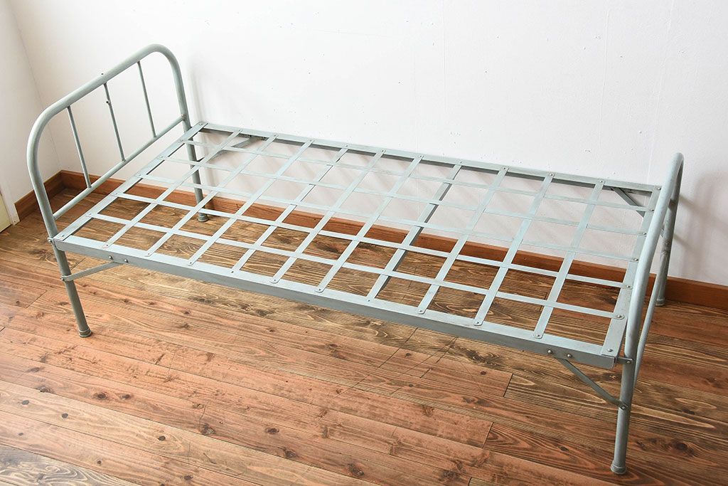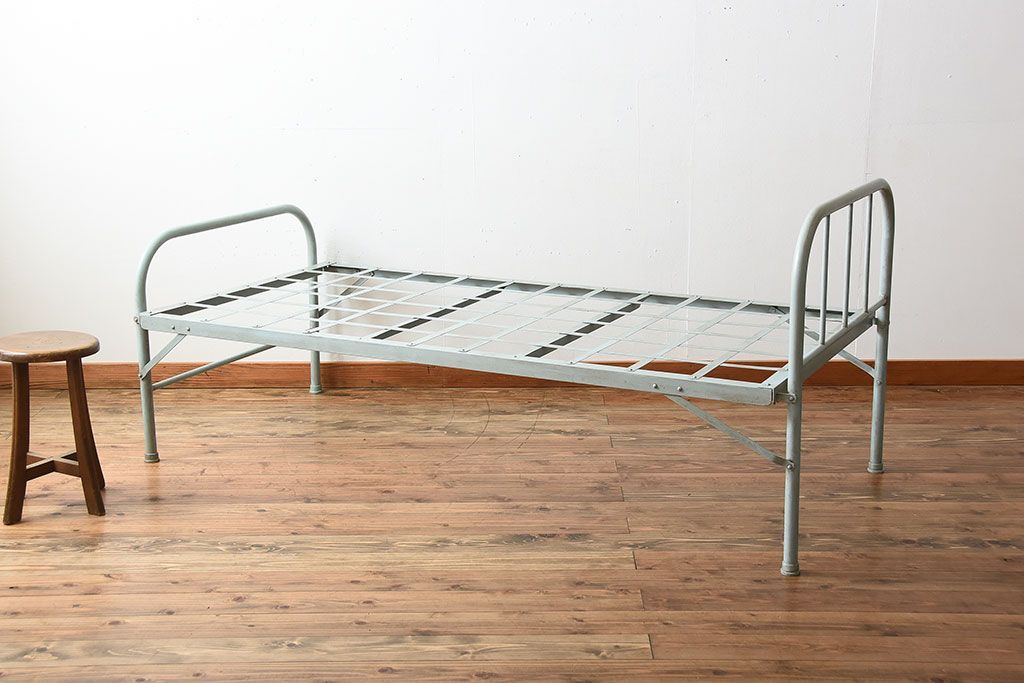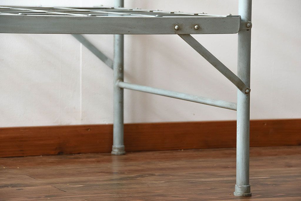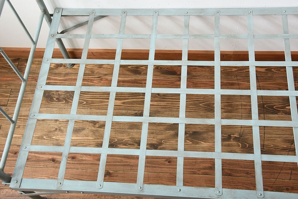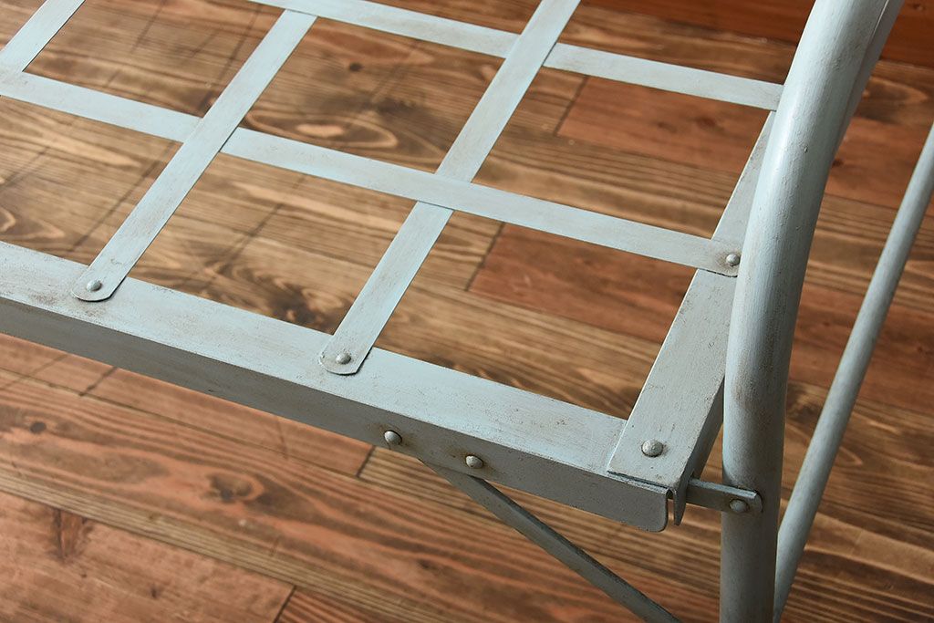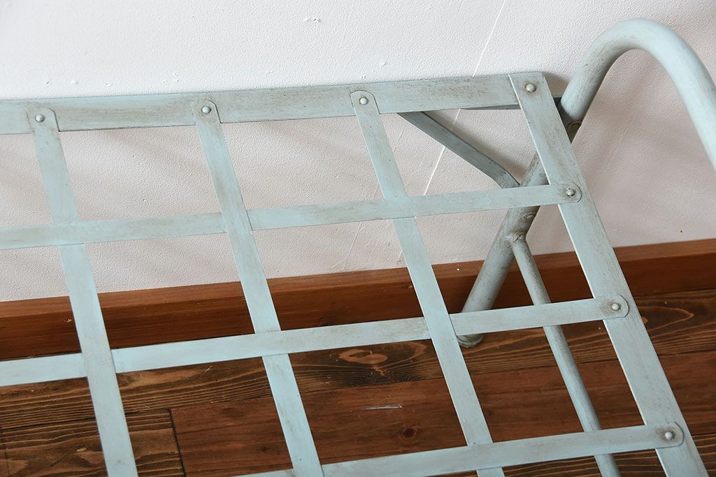 アンティーク家具 アンティークペイント 爽やかな色のアイアン折り畳みベッドフレーム