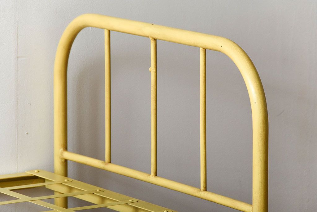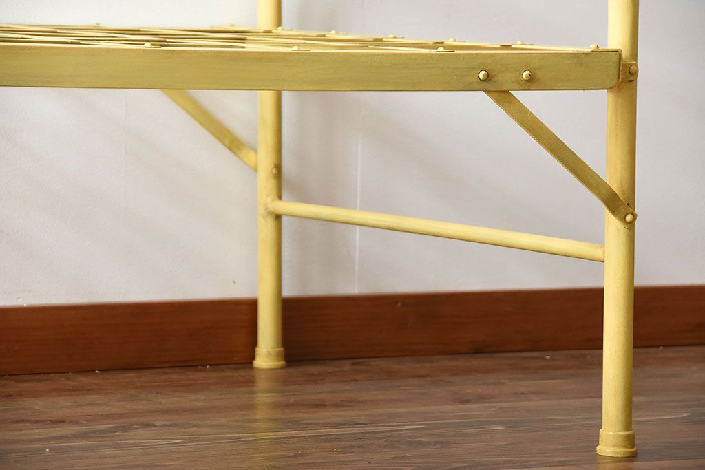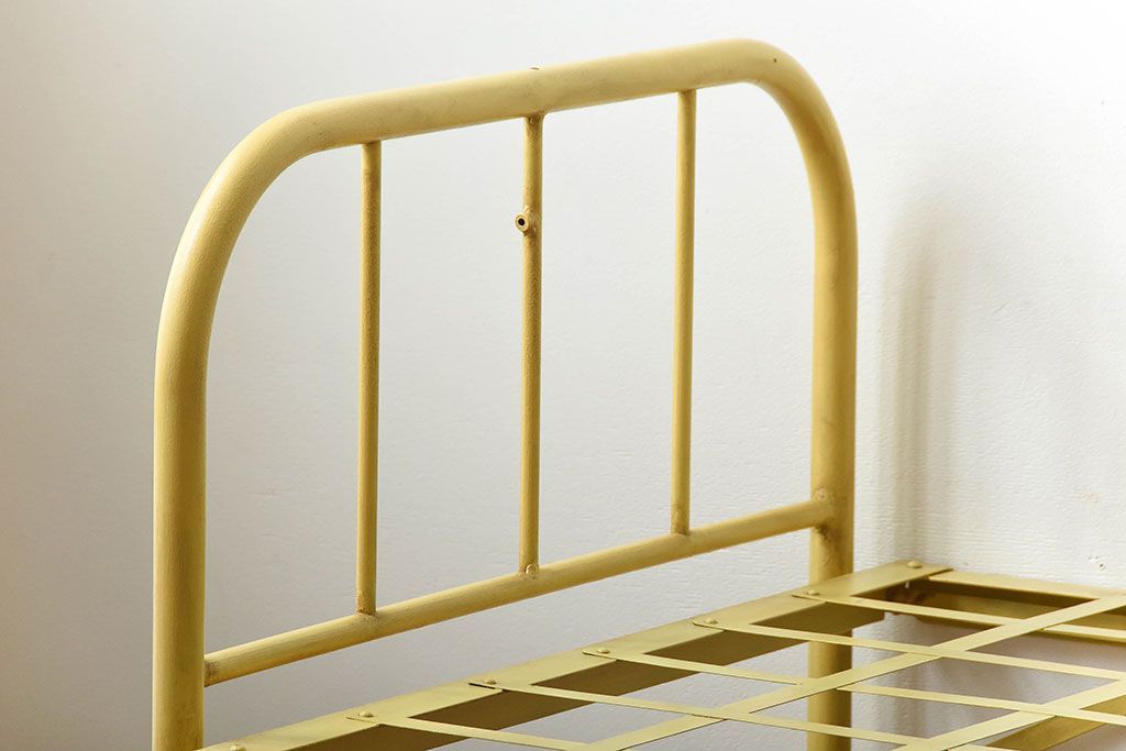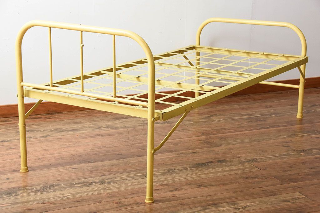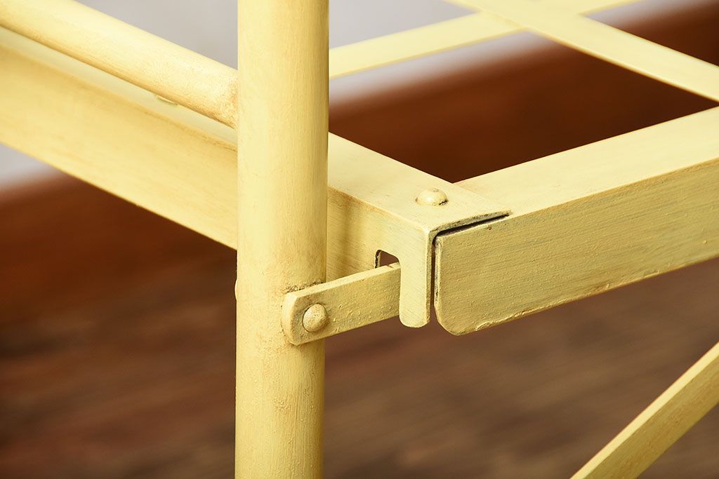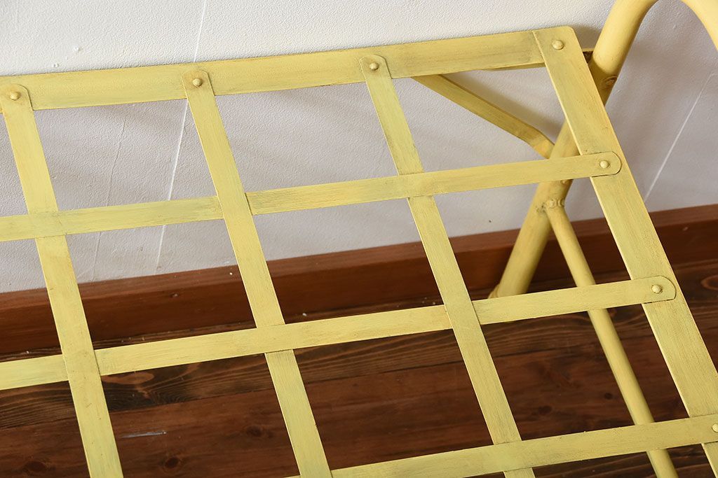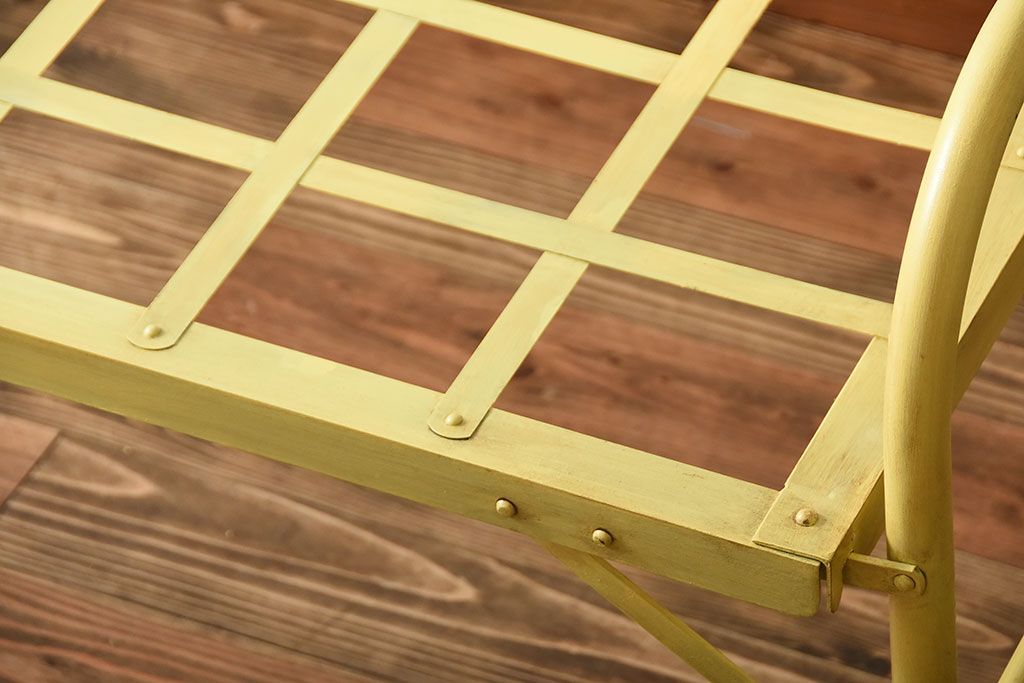 アンティーク家具 アンティークペイント かわいらしい色のアイアン折り畳みベッドフレーム