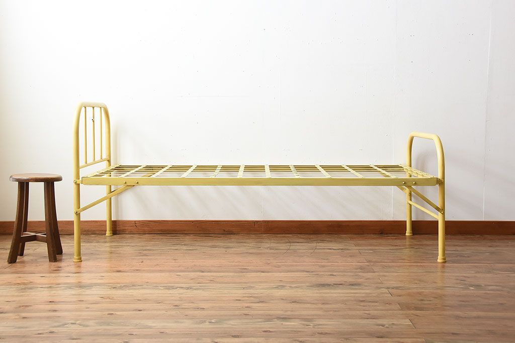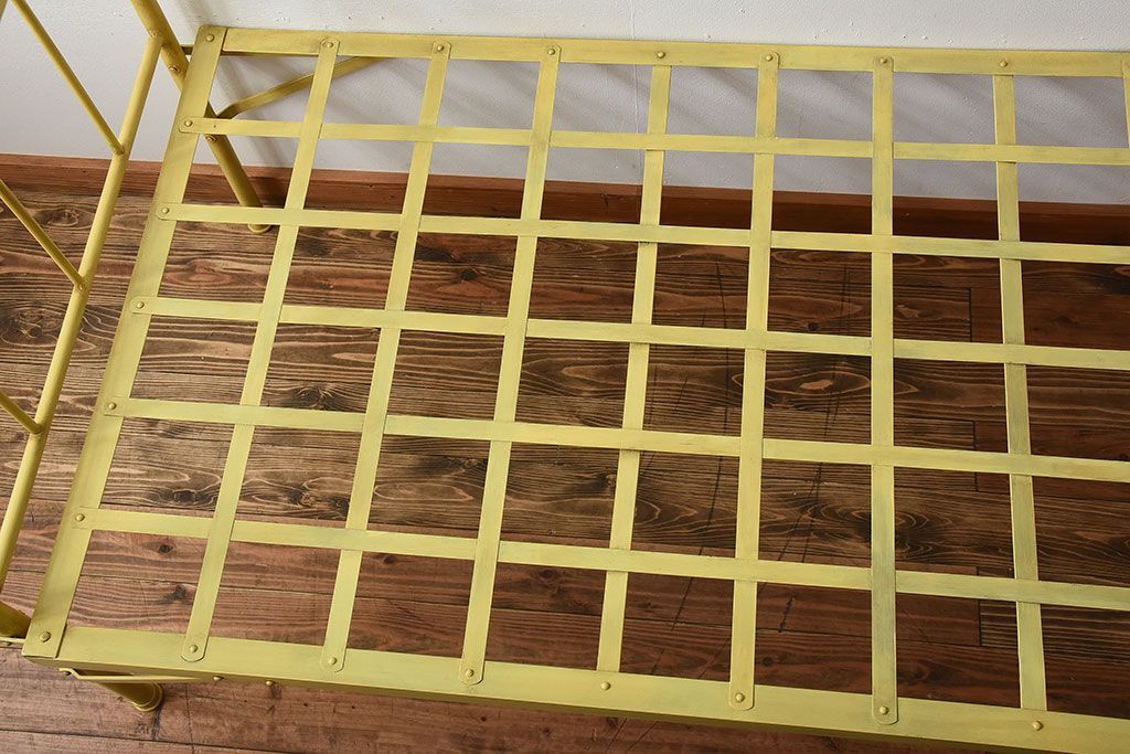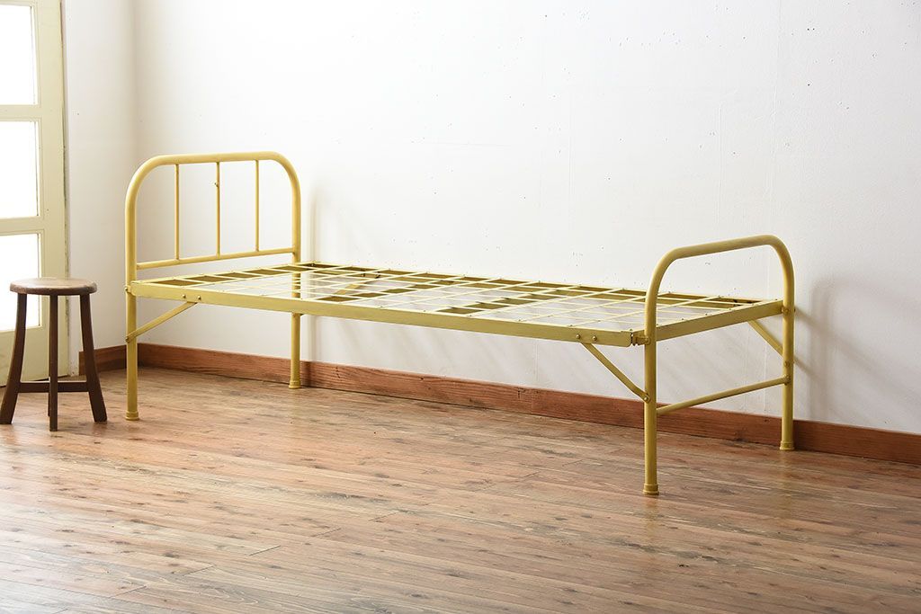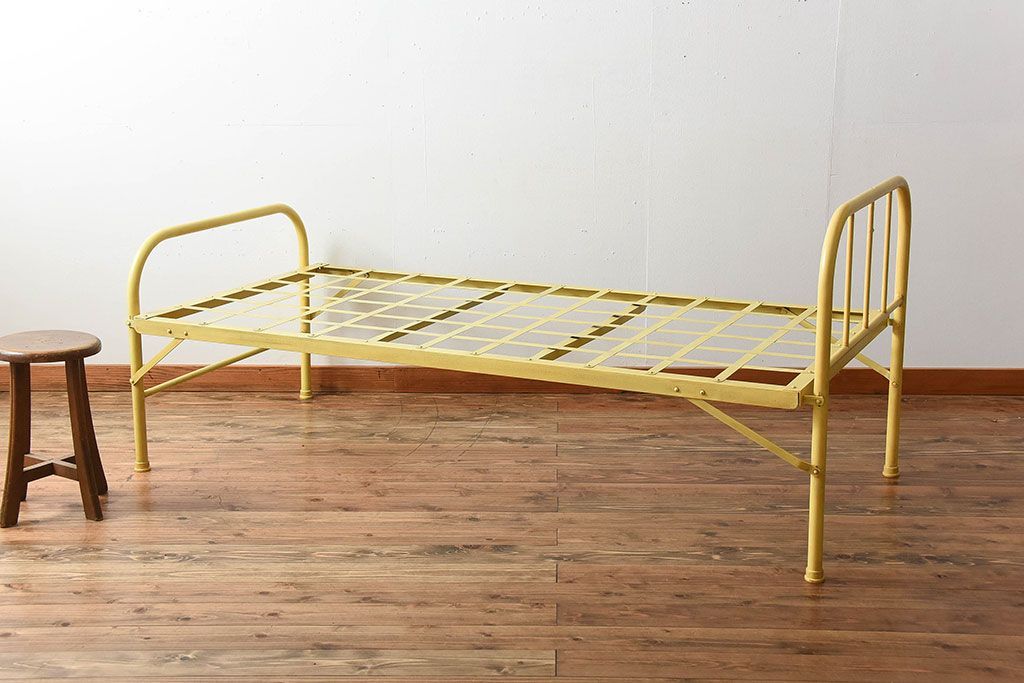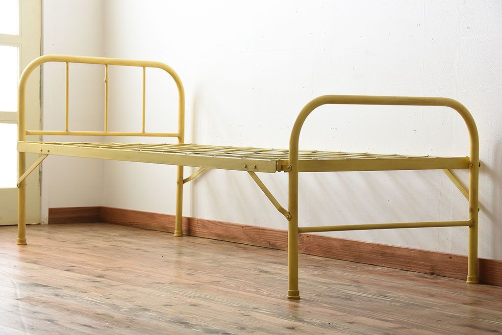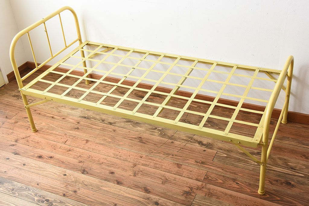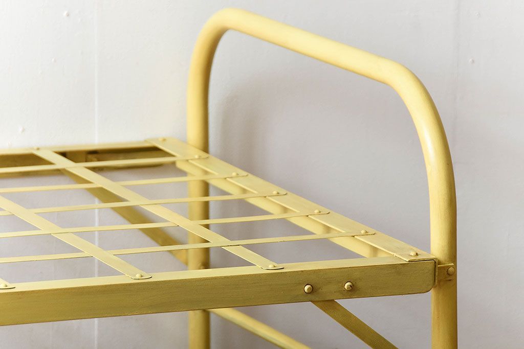 アンティーク家具 アンティークペイント かわいらしい色のアイアン折り畳みベッドフレーム