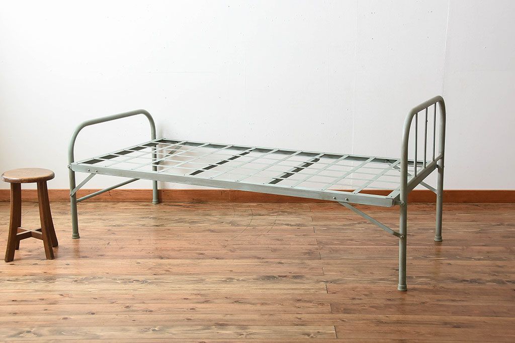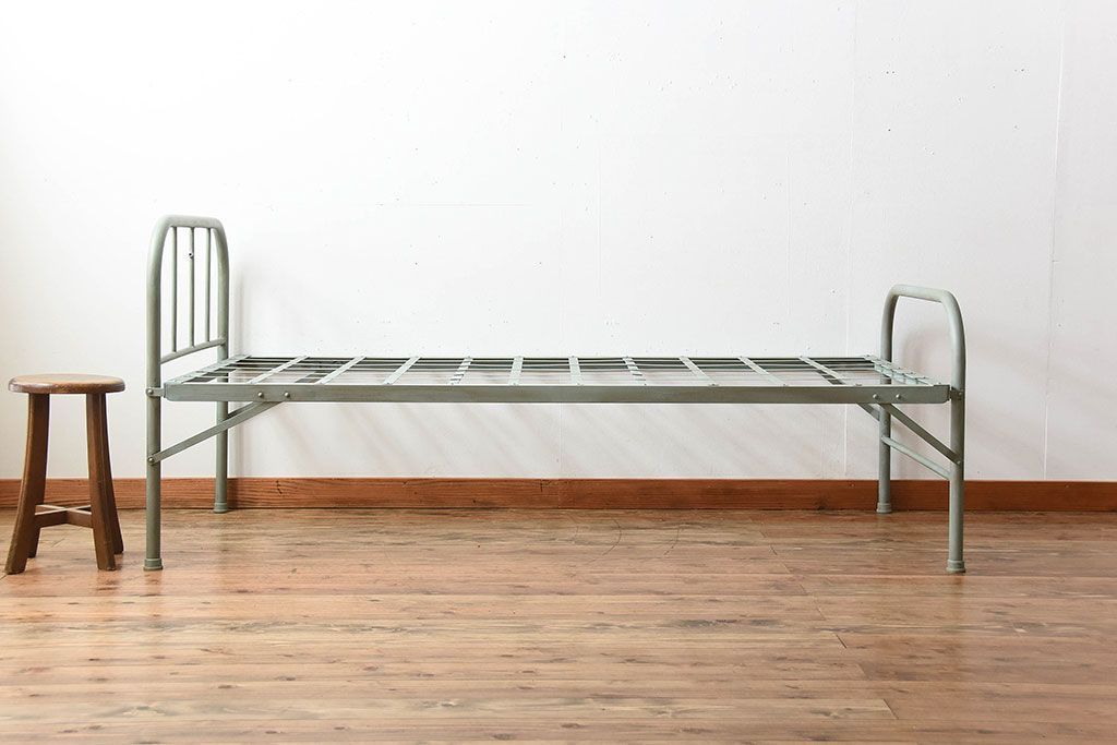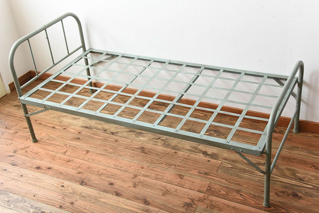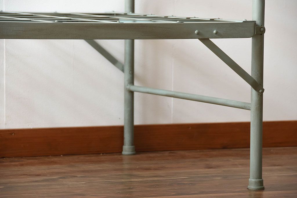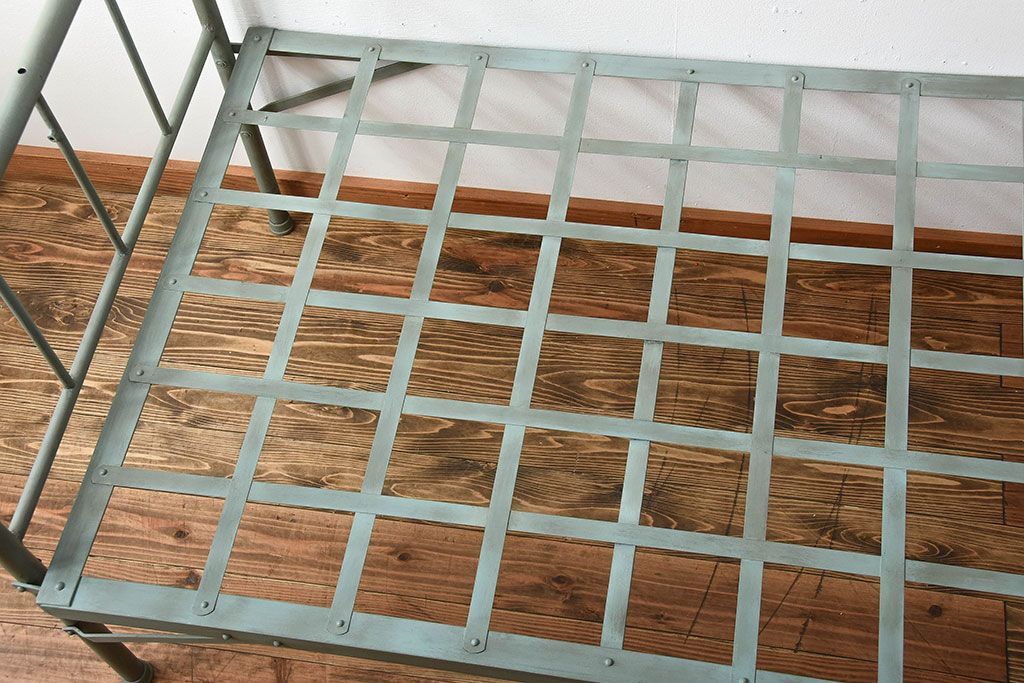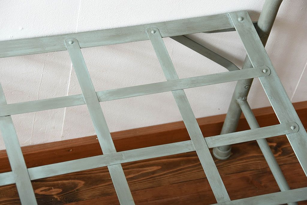 アンティーク家具 アンティークペイント 爽やかな色のアイアン折り畳みベッドフレーム