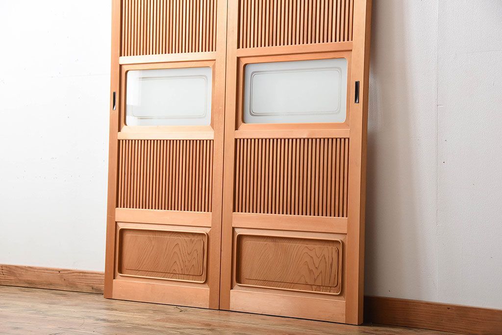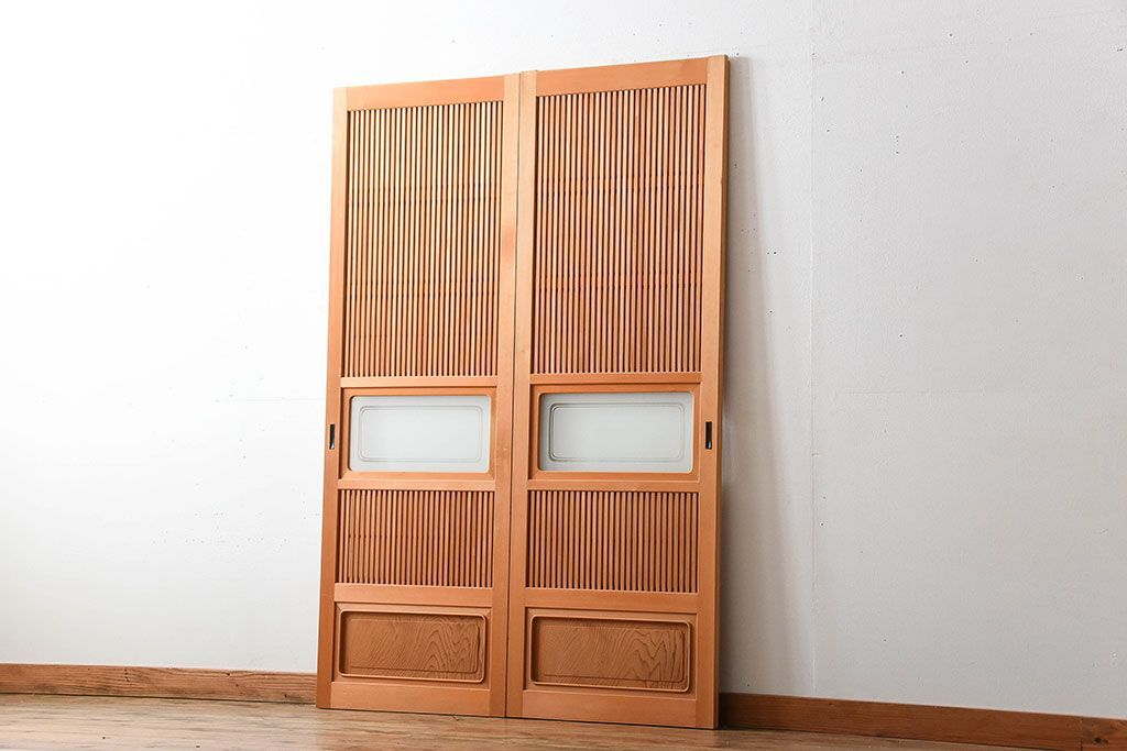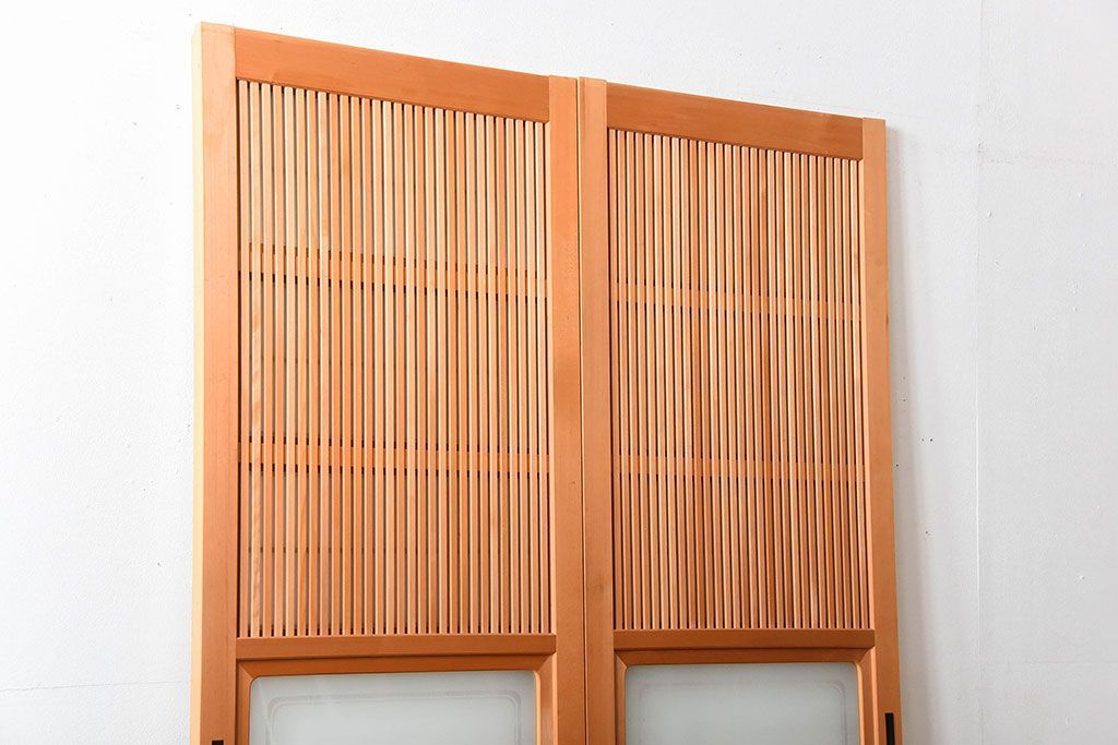 中古美品 木味を楽しむ美しさ 檜・杉材の高級障子格子戸2枚セットです。