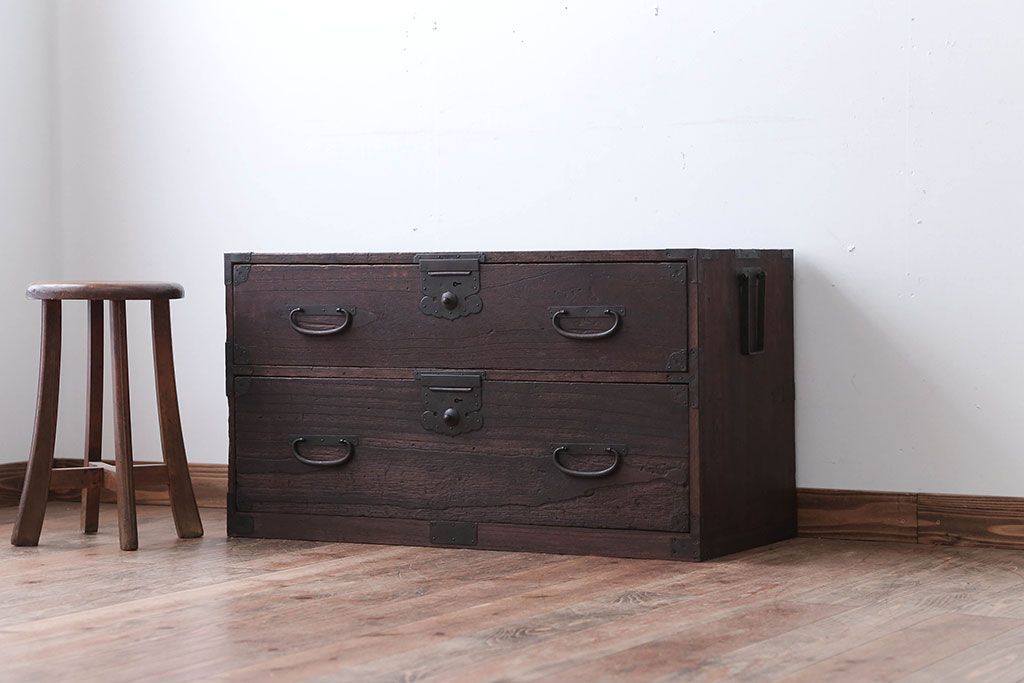 アンティーク家具 和製アンティーク 古い桐材の時代箪笥ローボード(1)