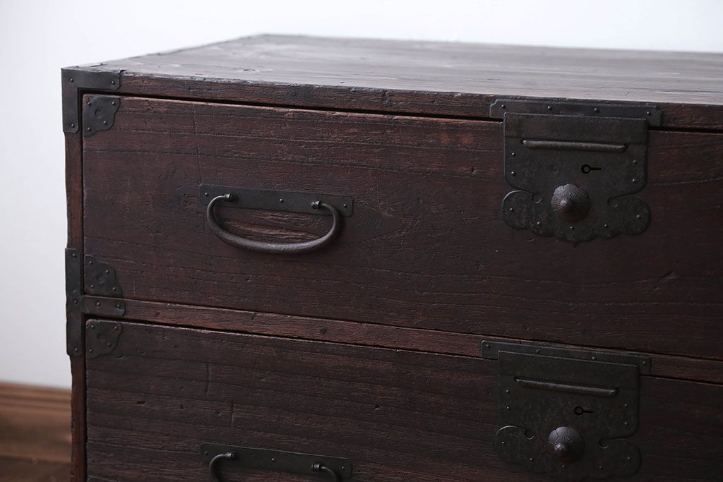 アンティーク家具 和製アンティーク 古い桐材の時代箪笥ローボード(1、桐箪笥、桐たんす)