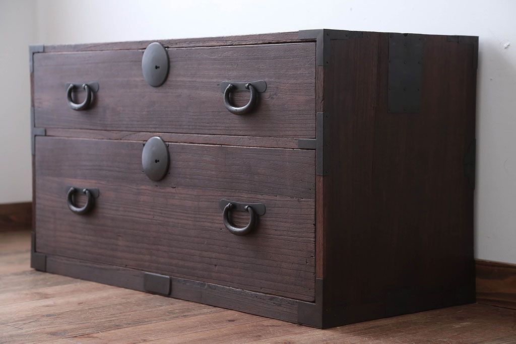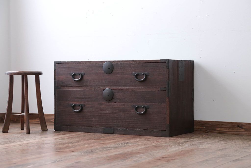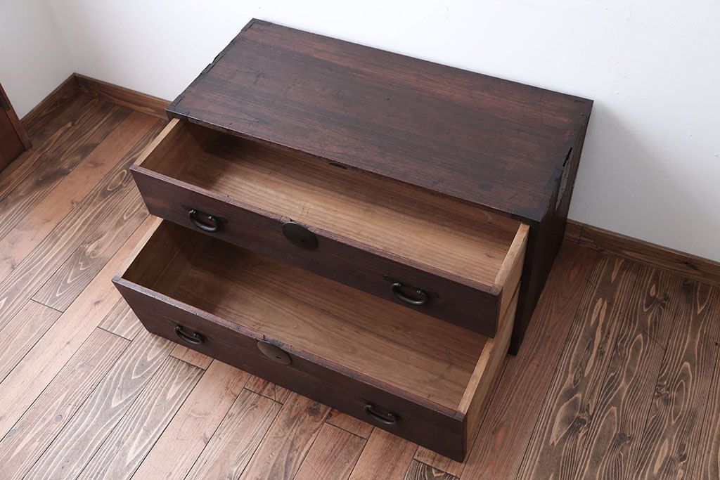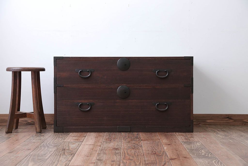 和箪笥 > アンティーク家具 和製アンティーク 古い桐材の時代箪笥ローボード(2、桐箪笥、桐たんす)