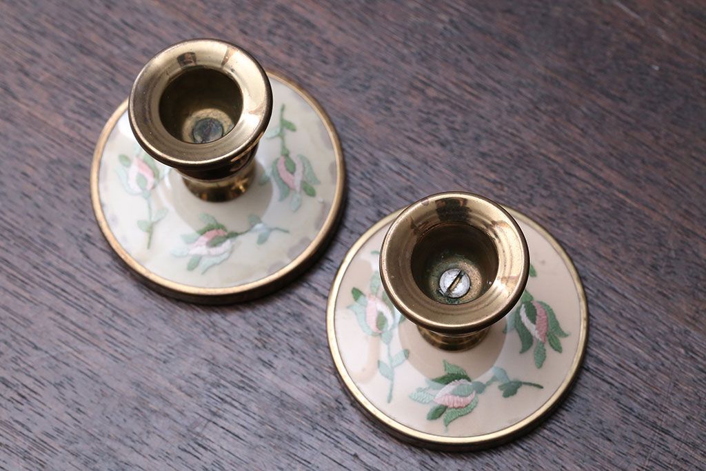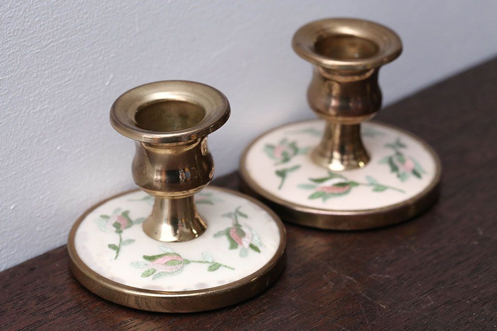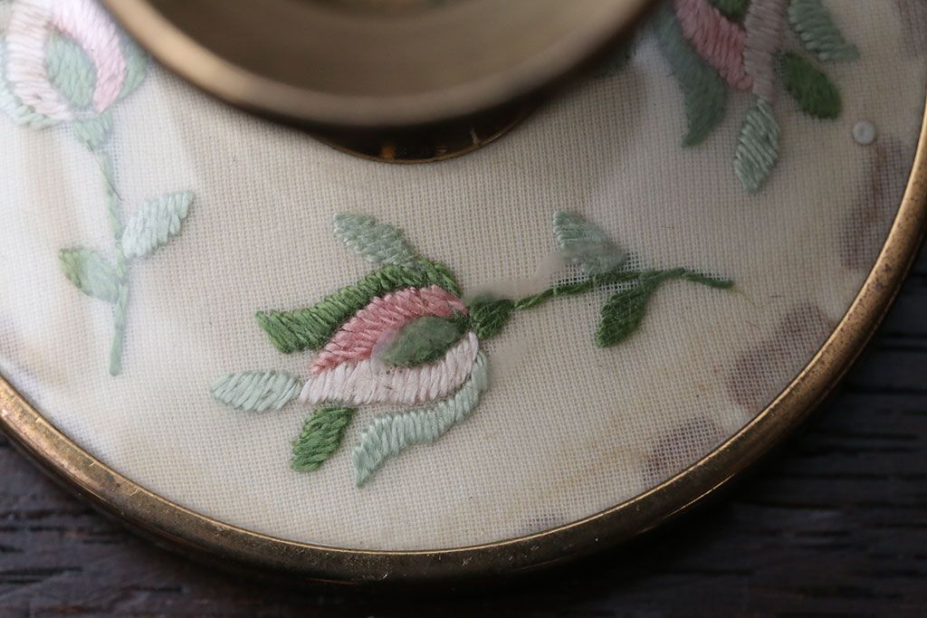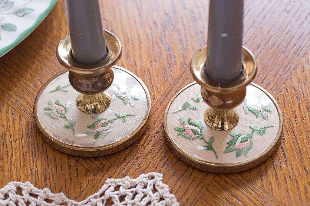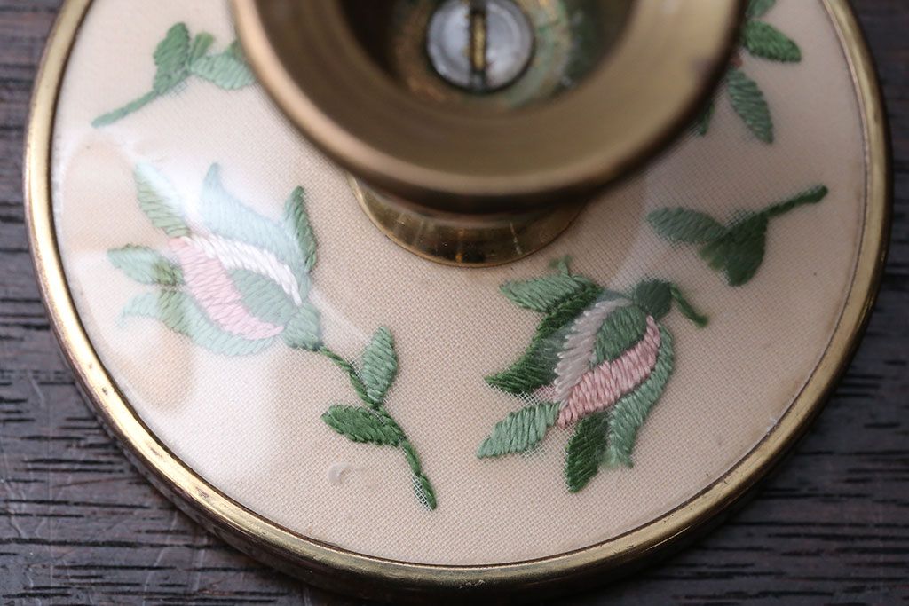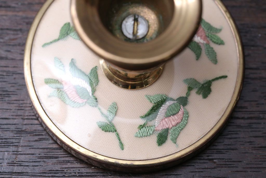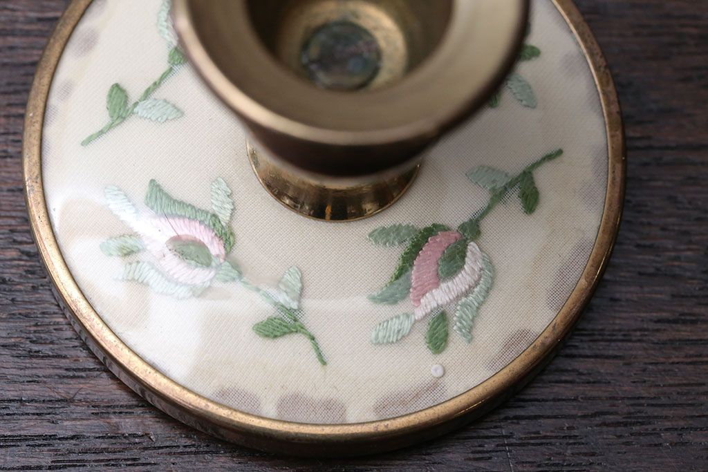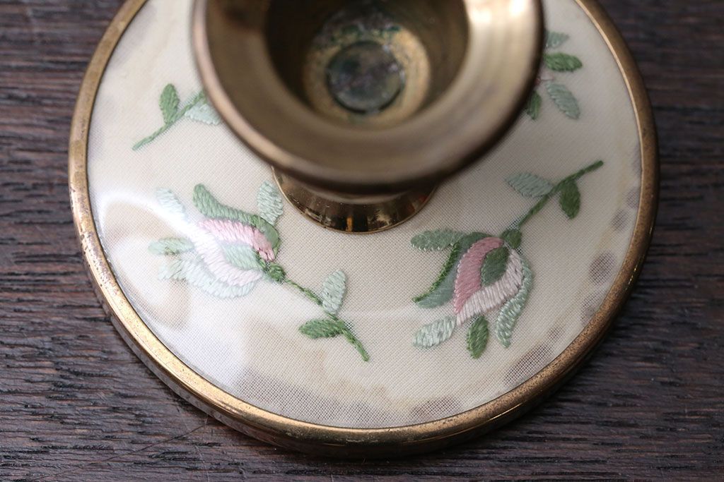 アンティーク雑貨 イギリスアンティーク 刺繍がかわいいお洒落なキャンドルスタンドペアセット