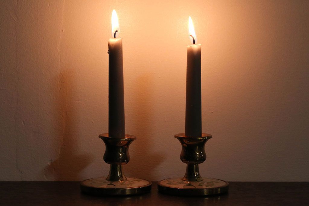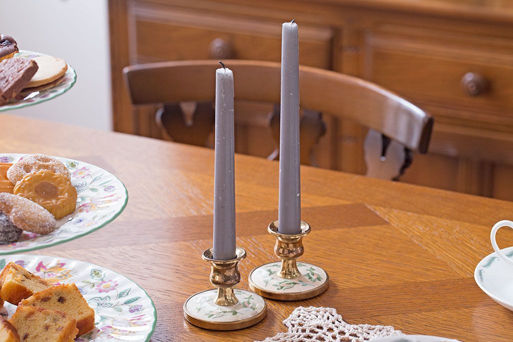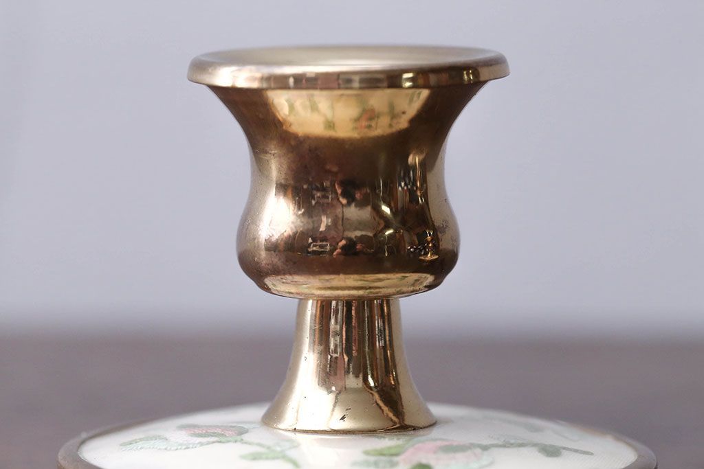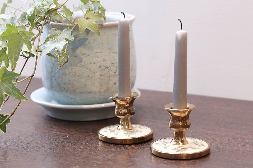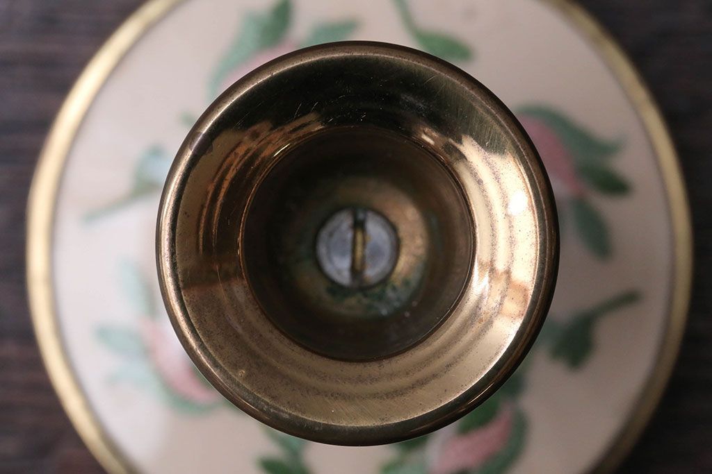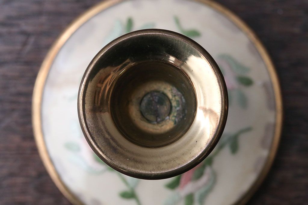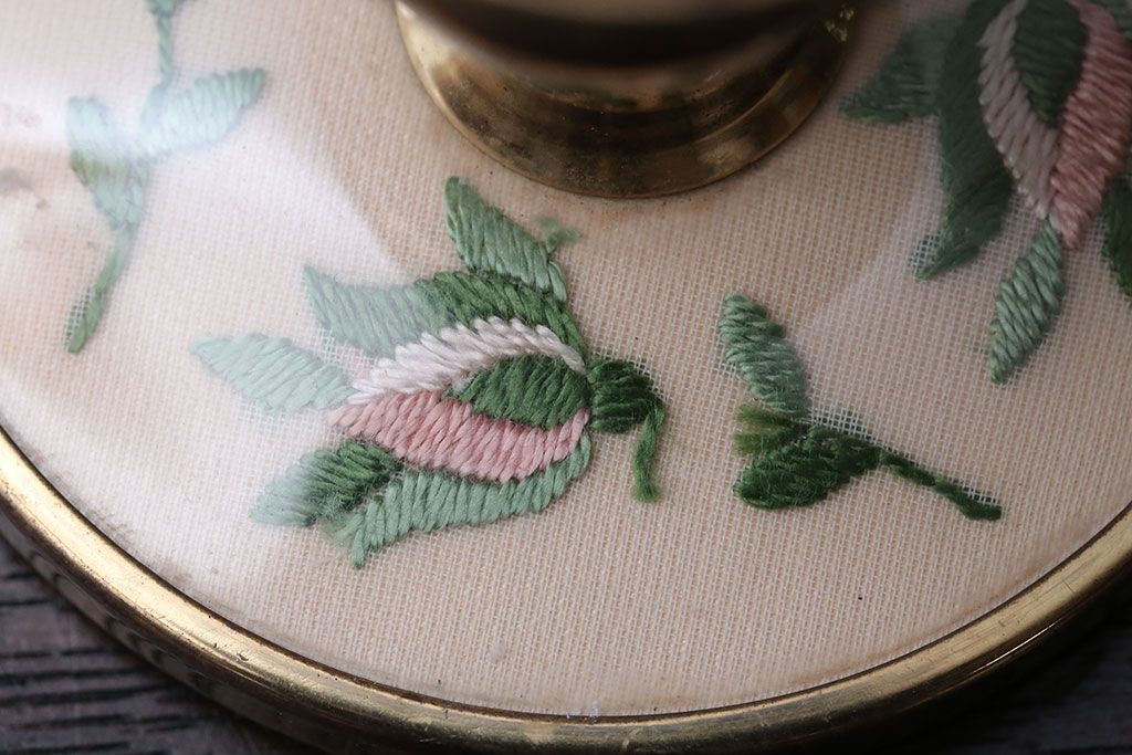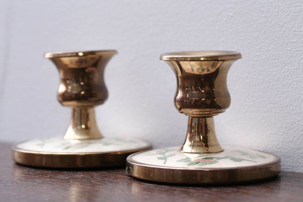 アンティーク雑貨 イギリスアンティーク 刺繍がかわいいお洒落なキャンドルスタンドペアセット