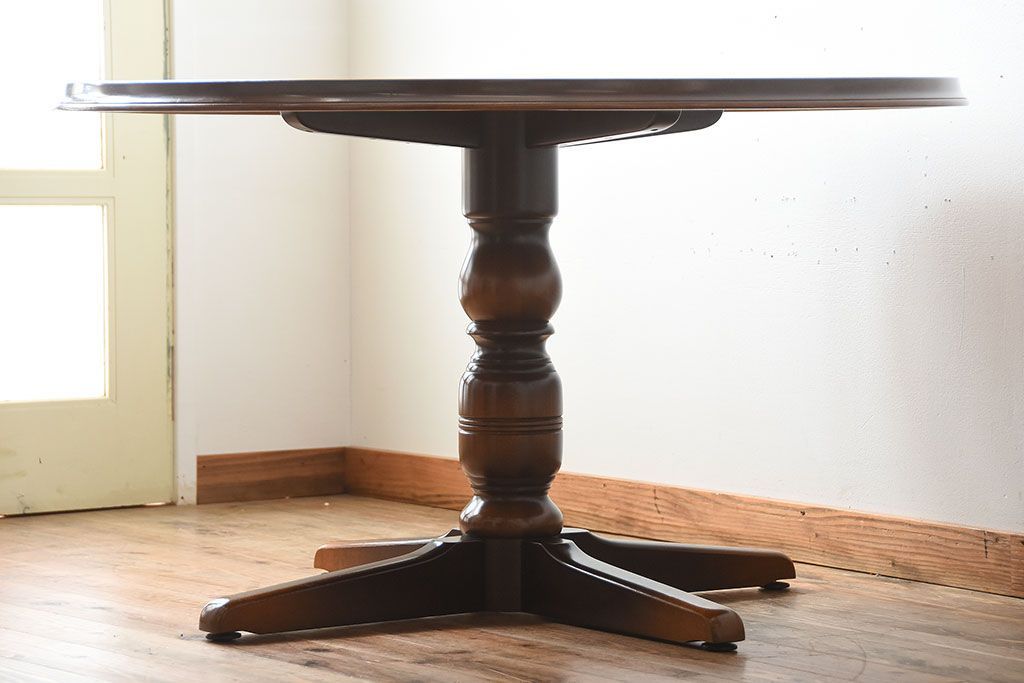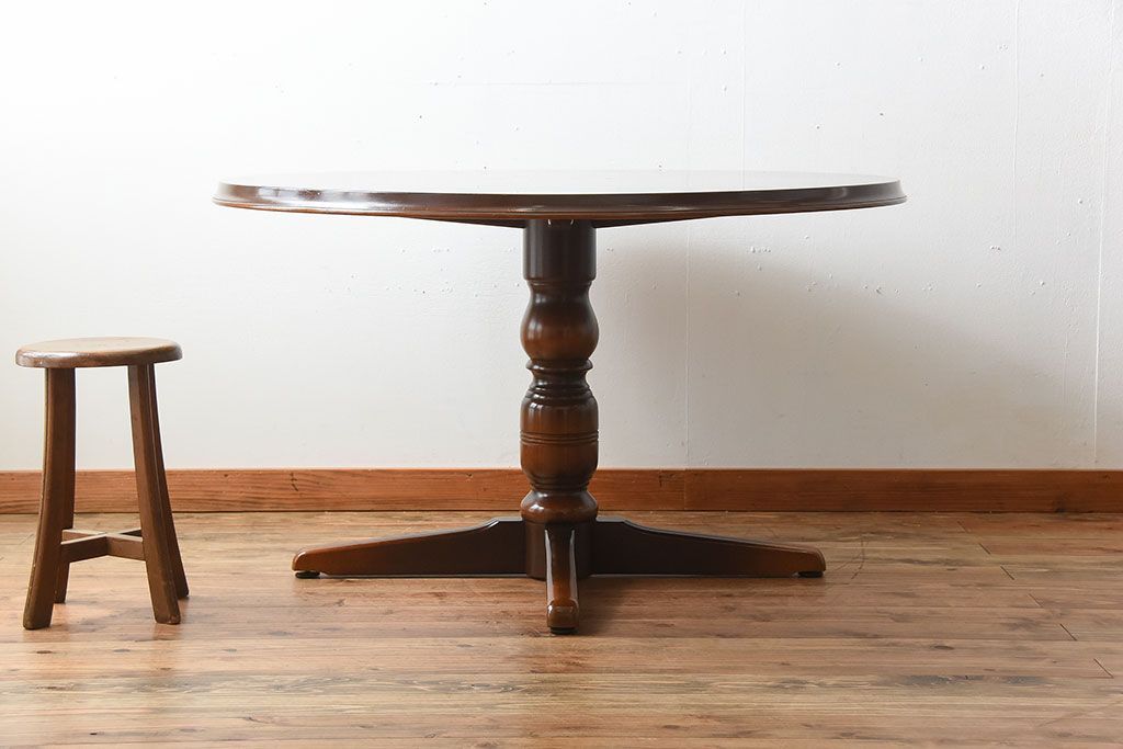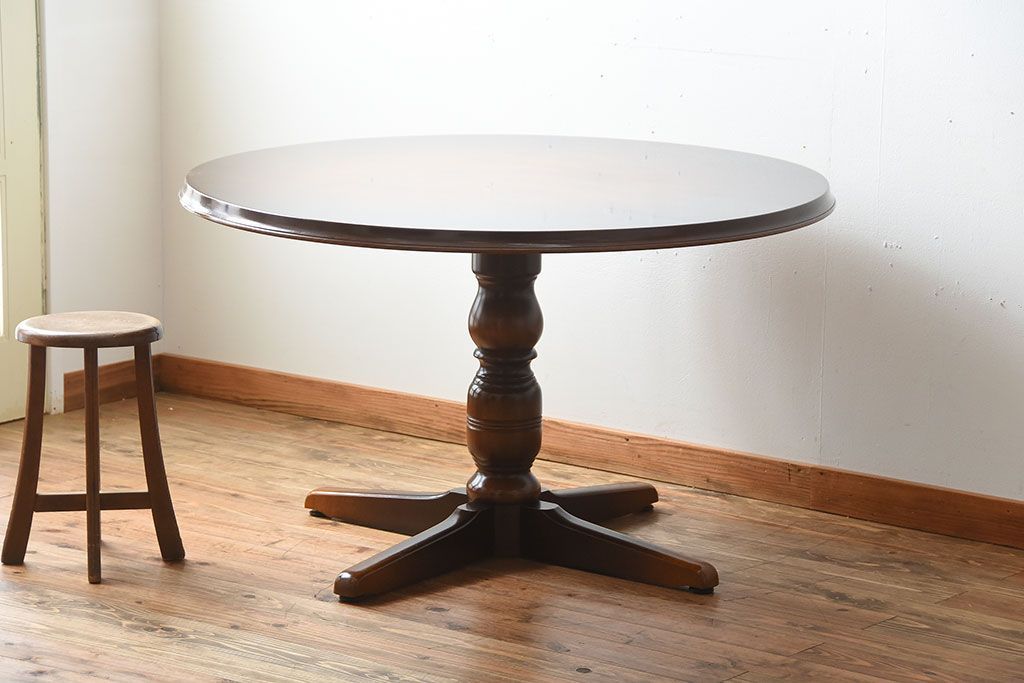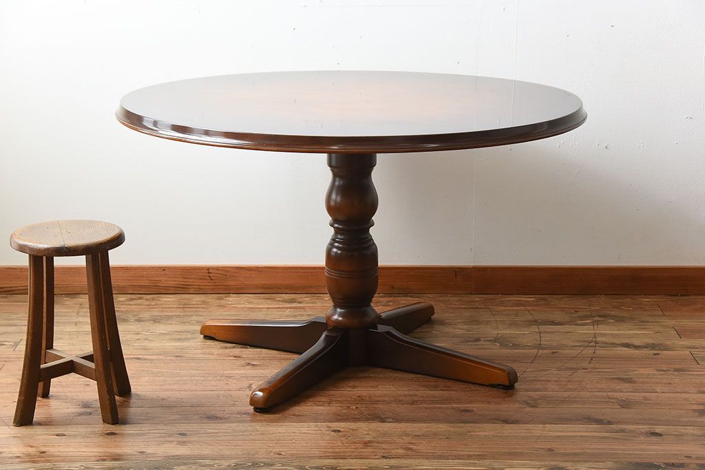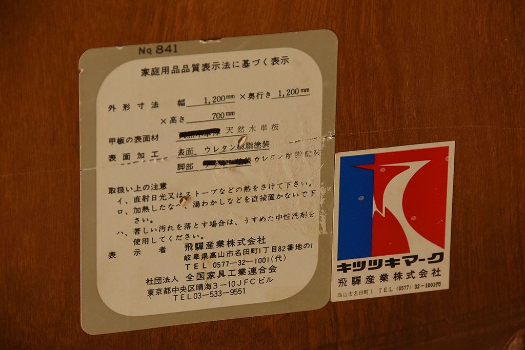 中古 飛騨産業 キツツキマーク ラウンドダイニングテーブル