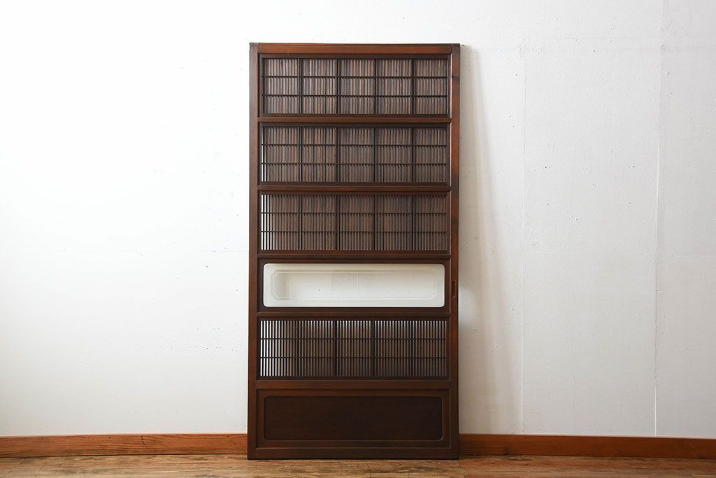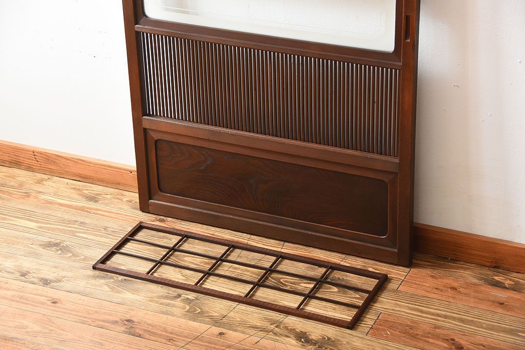 古民具・骨董 裏障子付き!腰板欅材の上質なアンティーク格子戸(1)