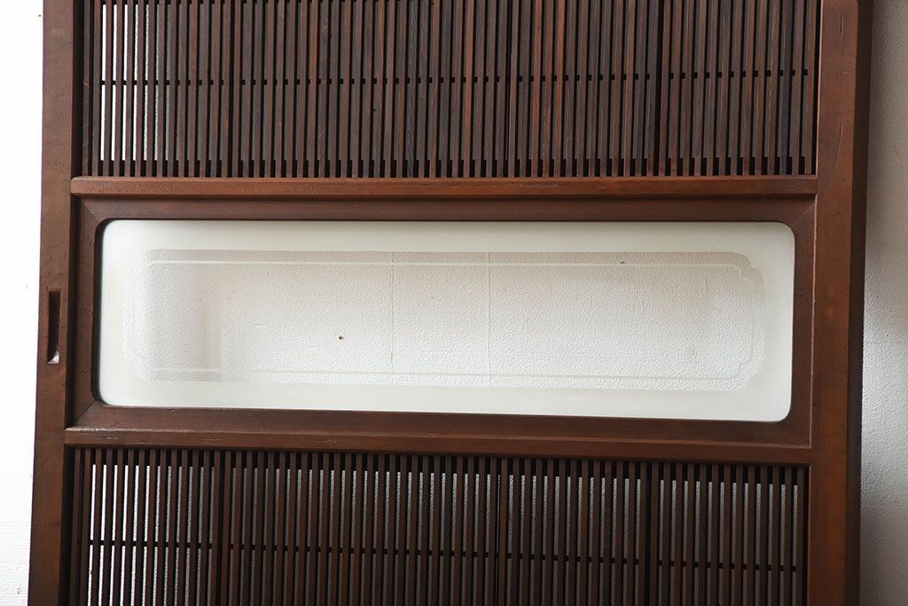 古民具・骨董 裏障子付き!腰板欅材の上質なアンティーク格子戸(3)