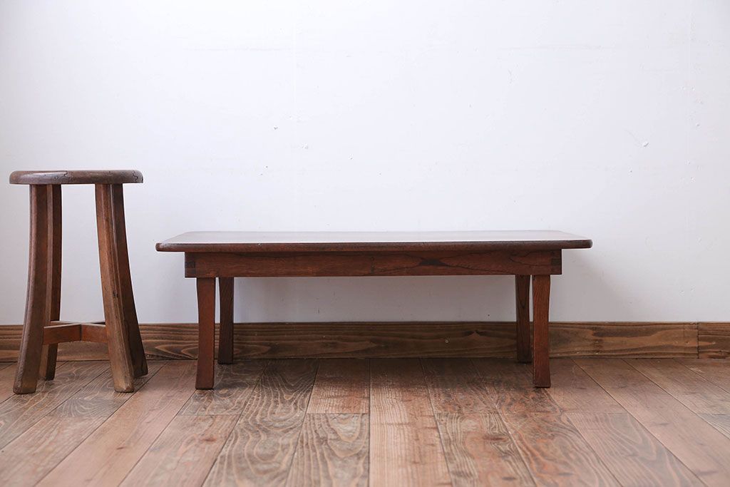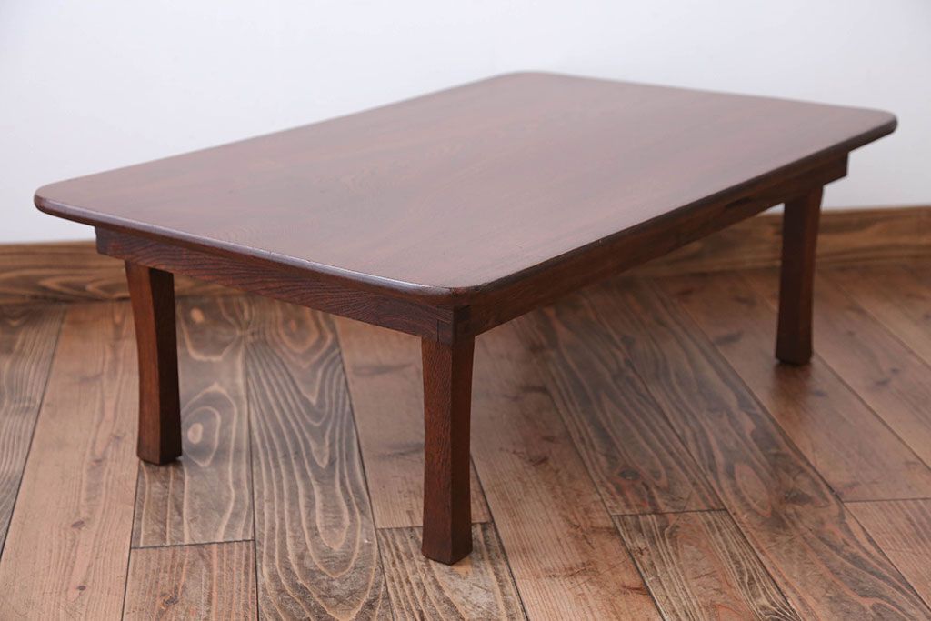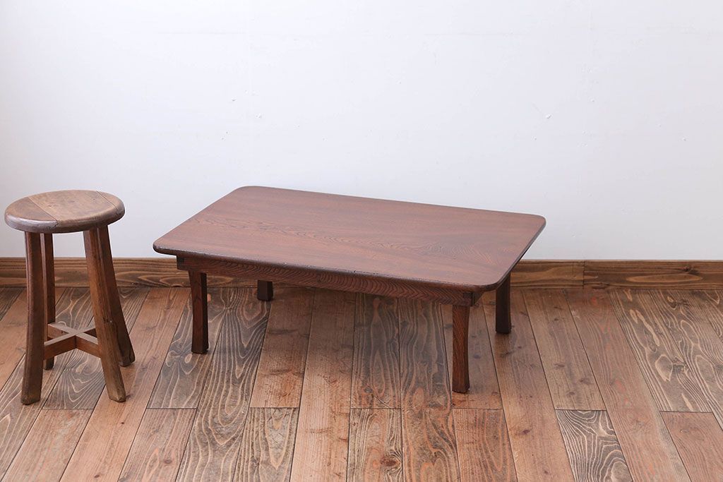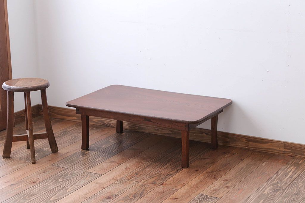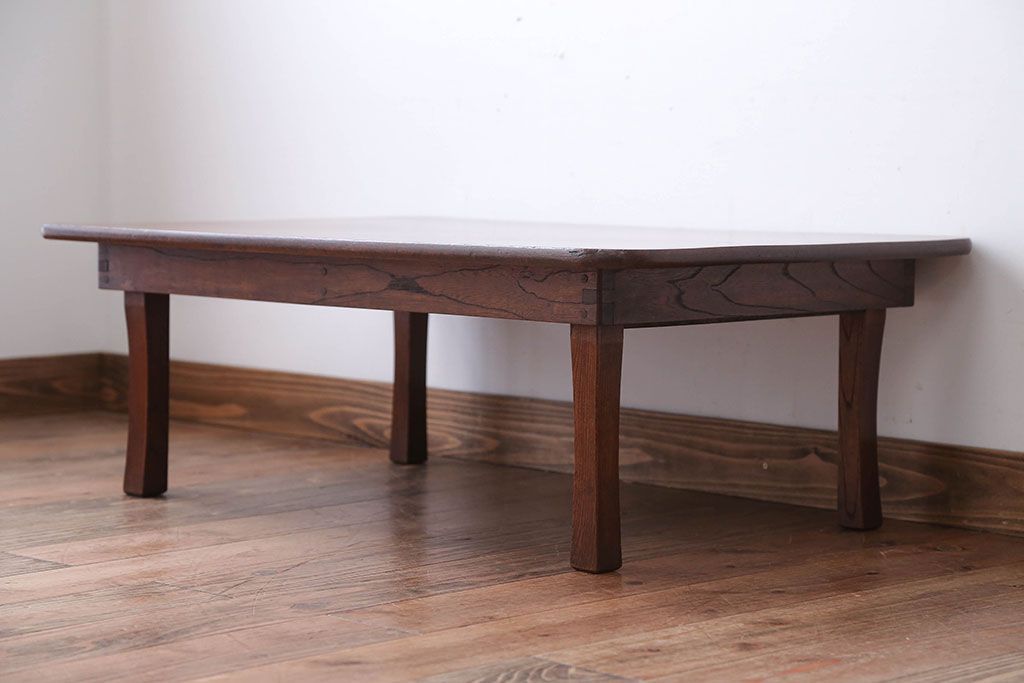 アンティーク家具 和製アンティーク 天板栓材一枚板の角ちゃぶ台