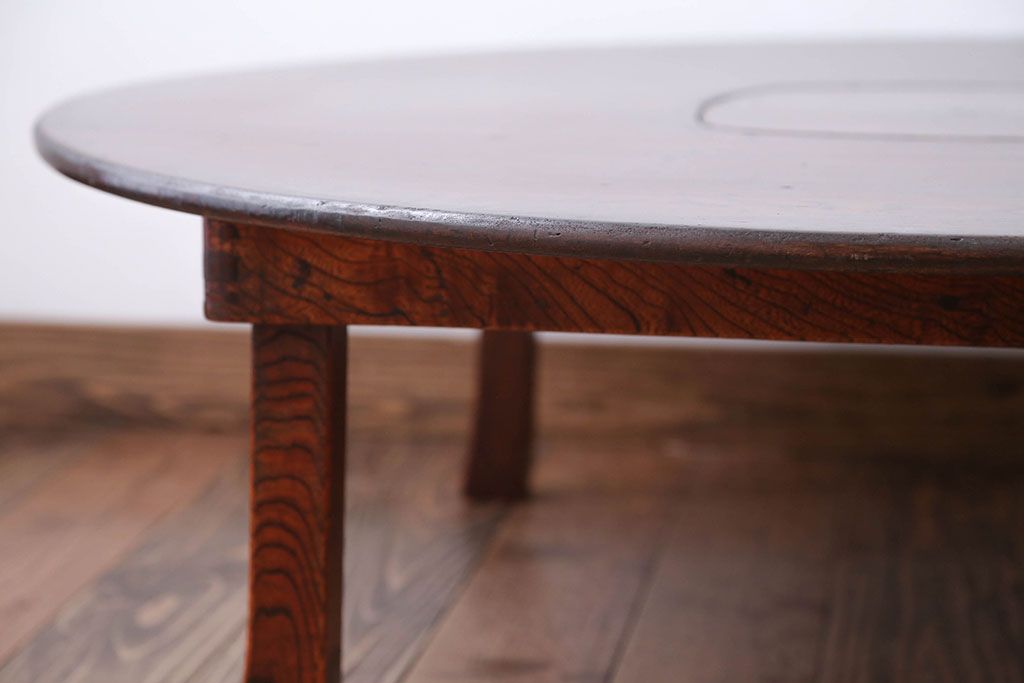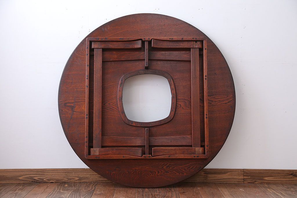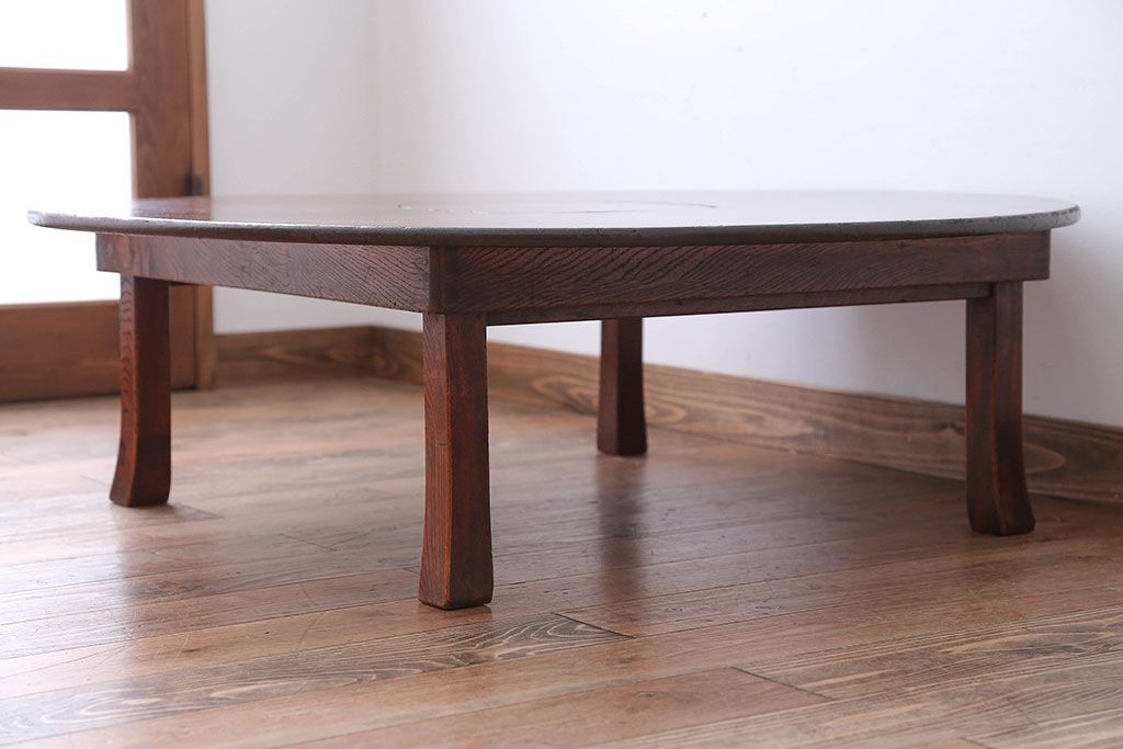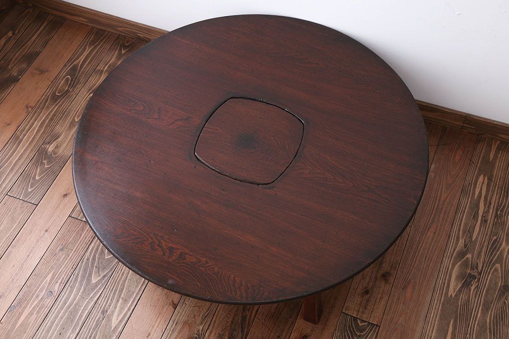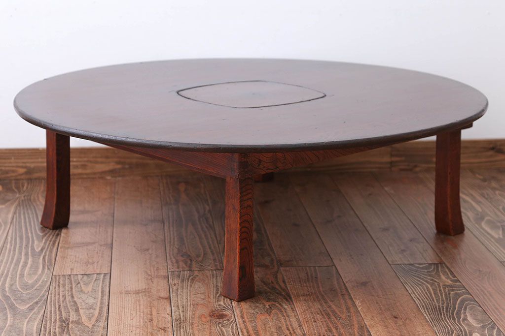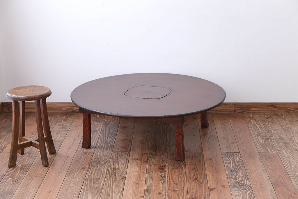 レトロ家具 和製アンティーク 特大サイズ!古い栓材のレトロな丸ちゃぶ台