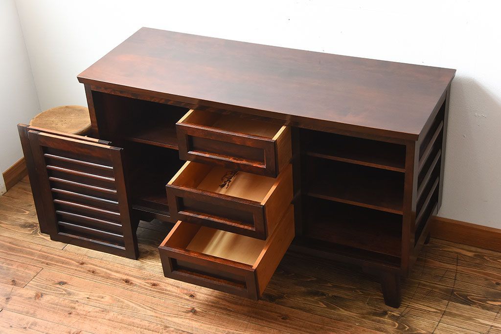 中古 松本民芸家具 シックな脚付きサイドボード(定価約33万円)