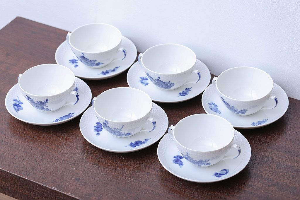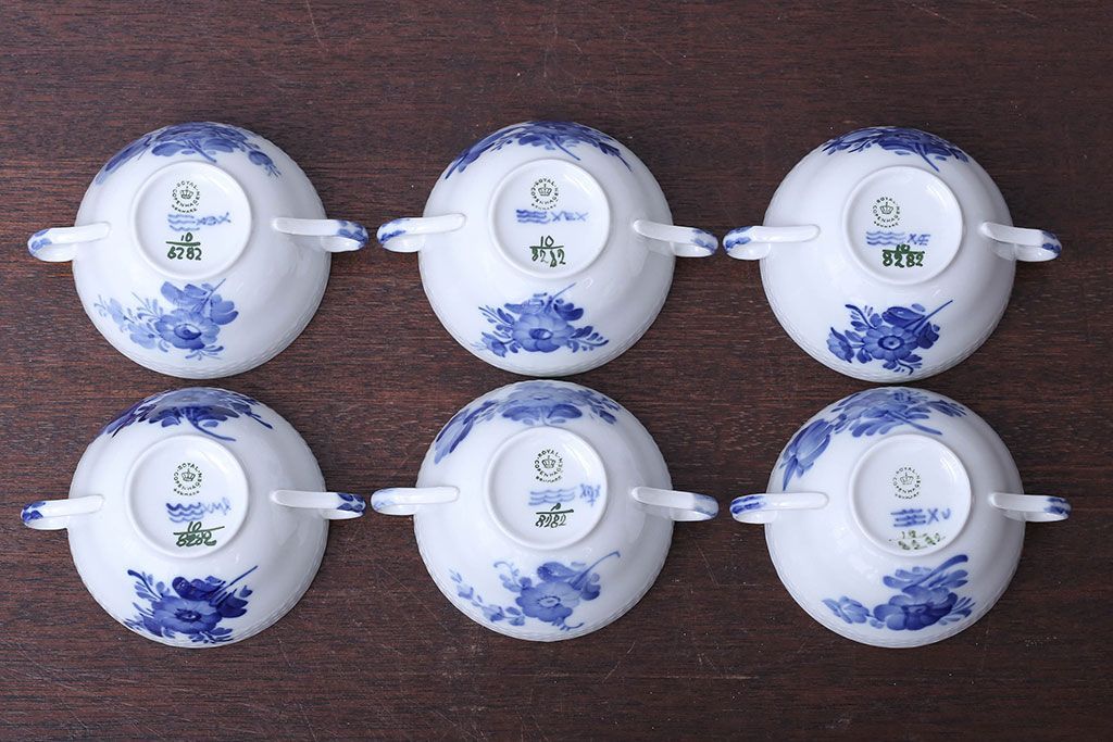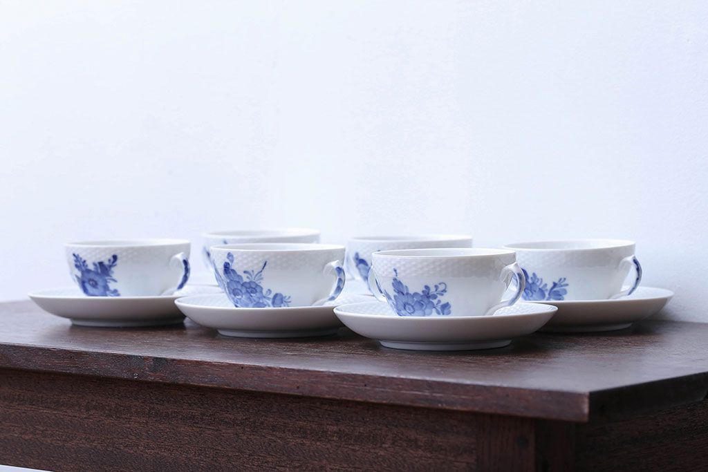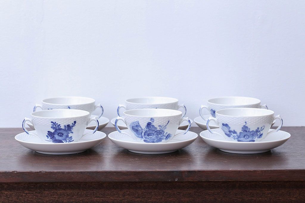 アンティーク雑貨 ロイヤルコペンハーゲン ブルーフラワーブレイデッド・スープカップ&ソーサー6客セット