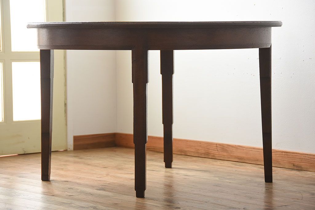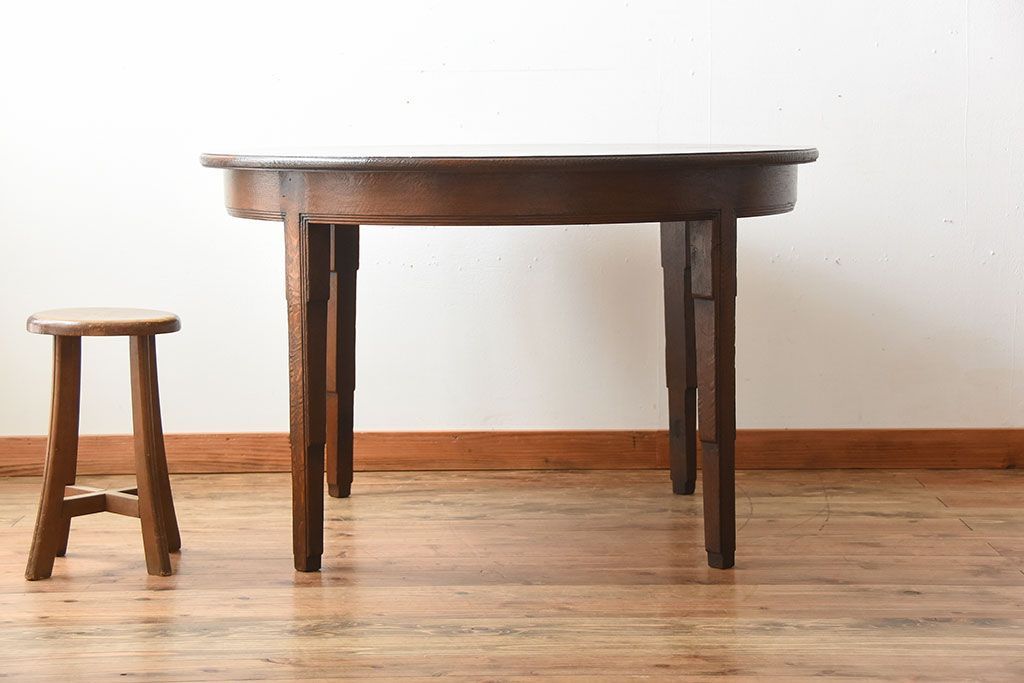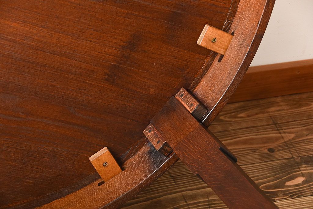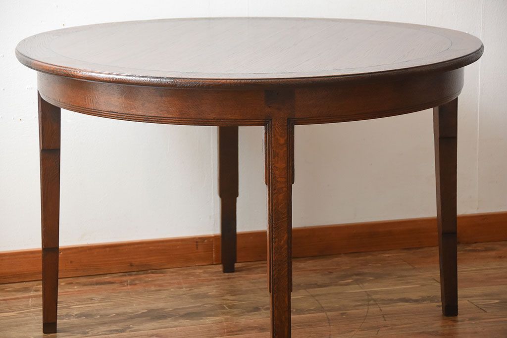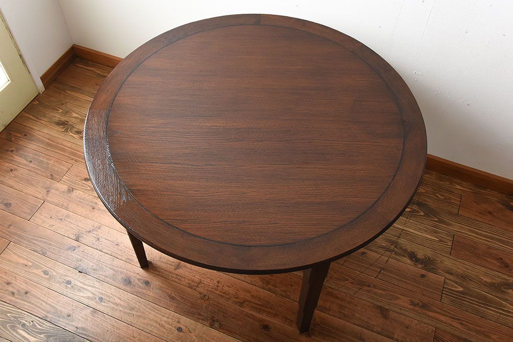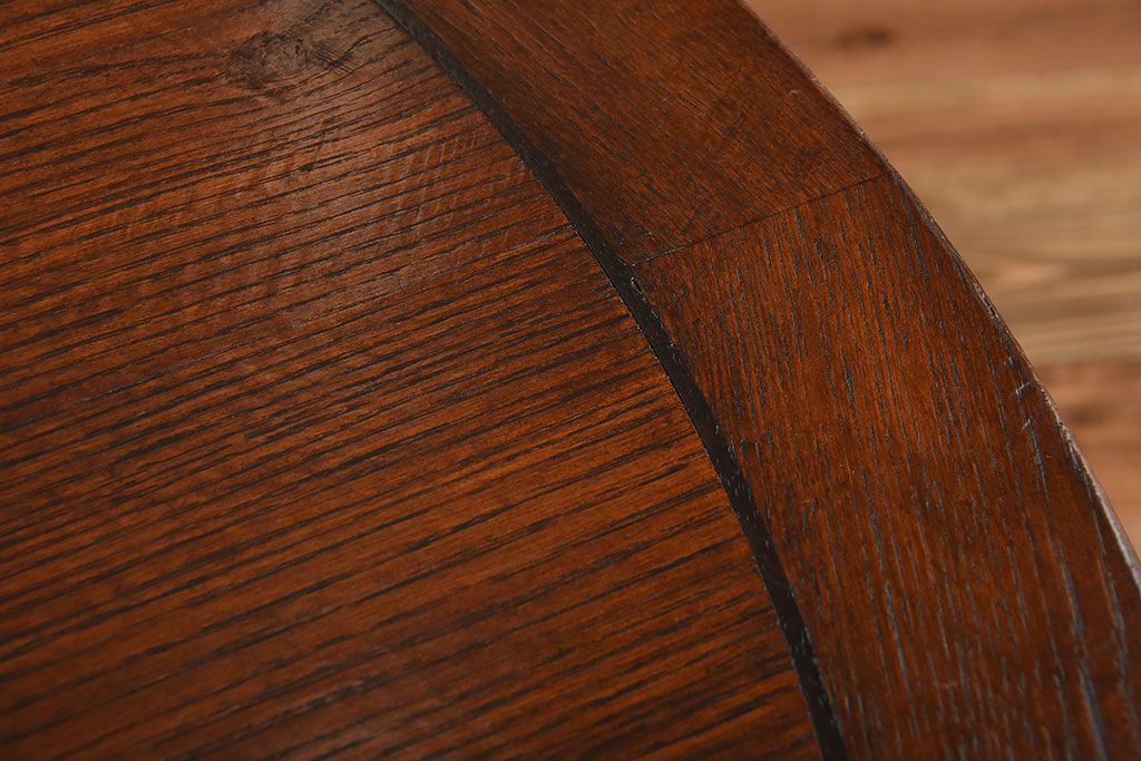 ヴィンテージ家具 イギリスビンテージ おしゃれなオーク材のラウンドダイニングテーブル