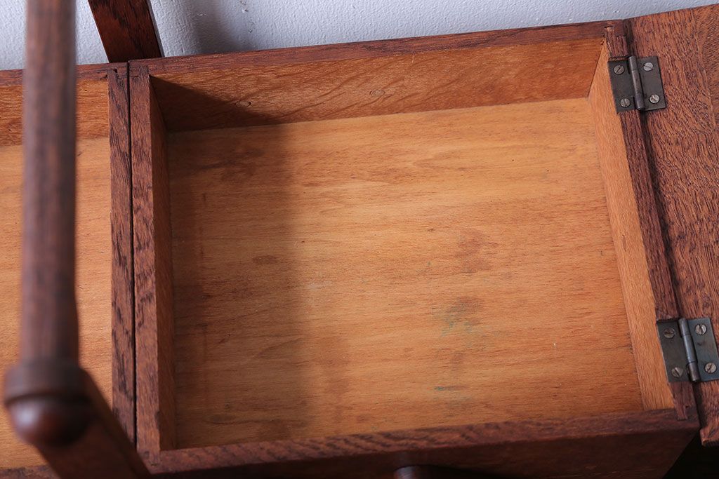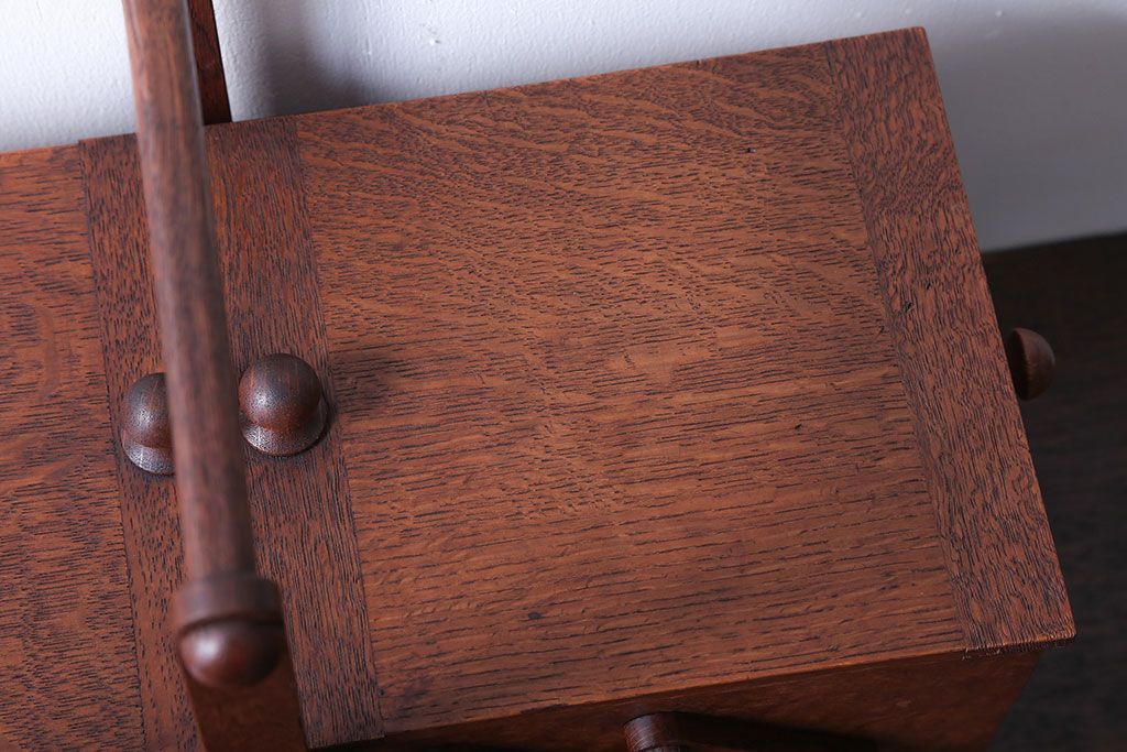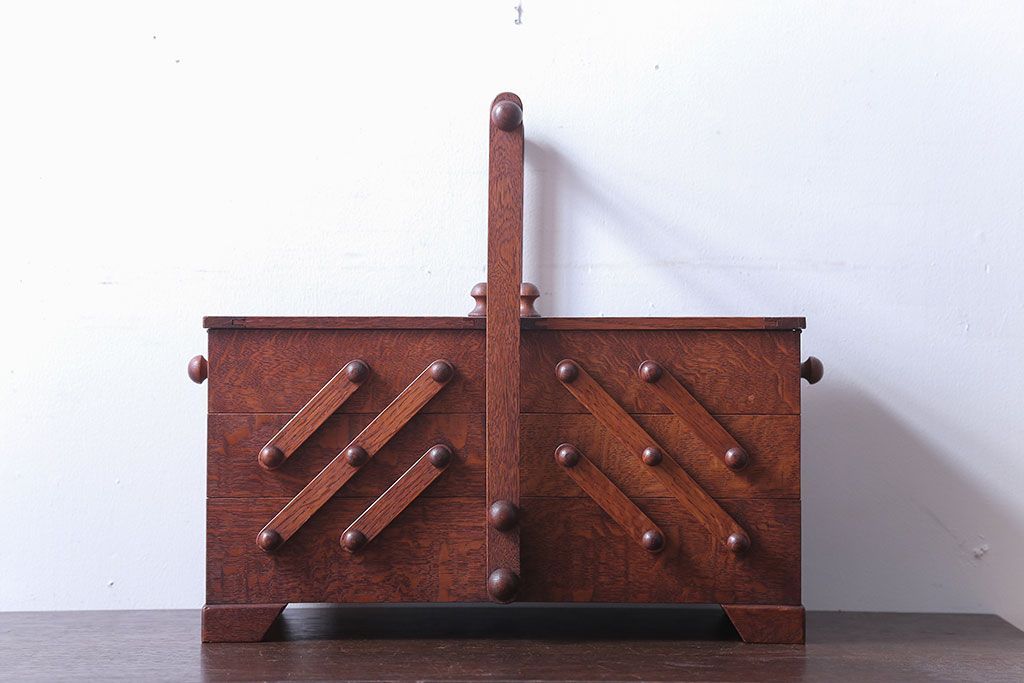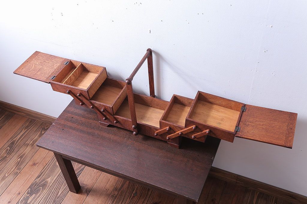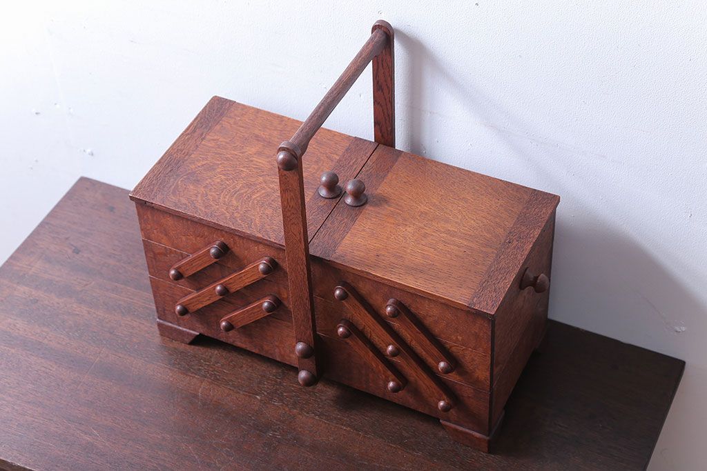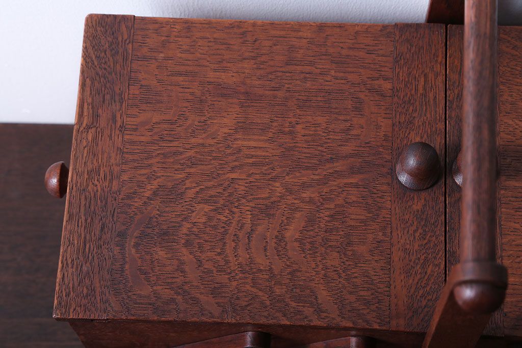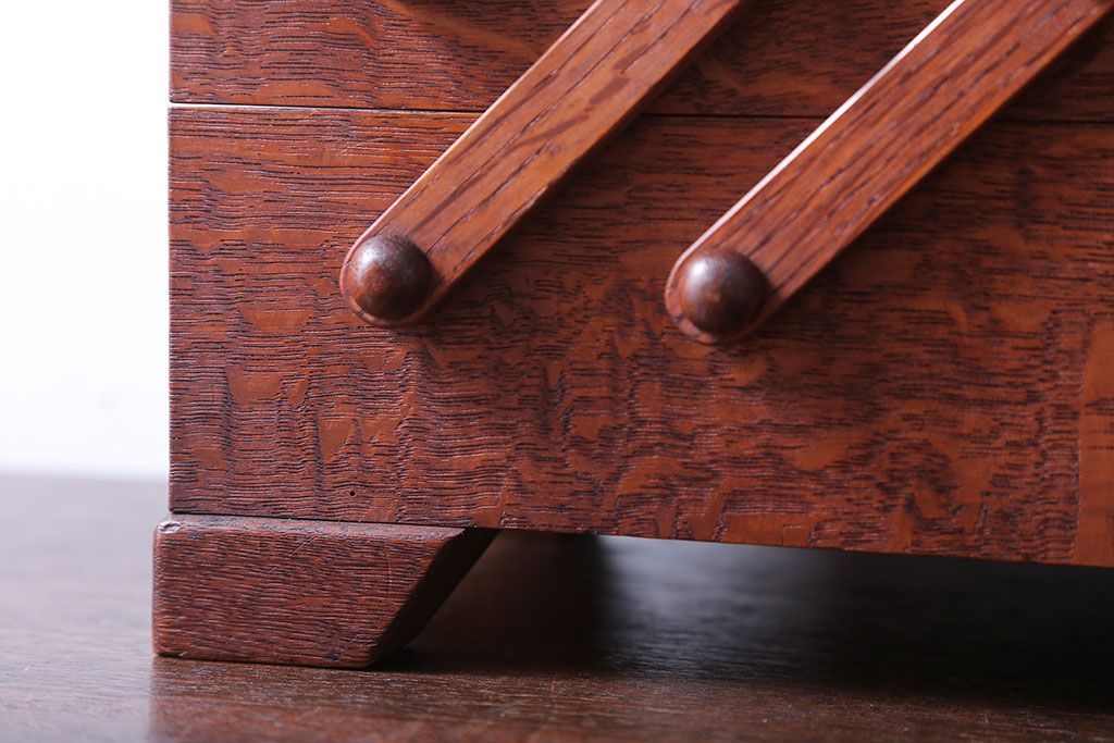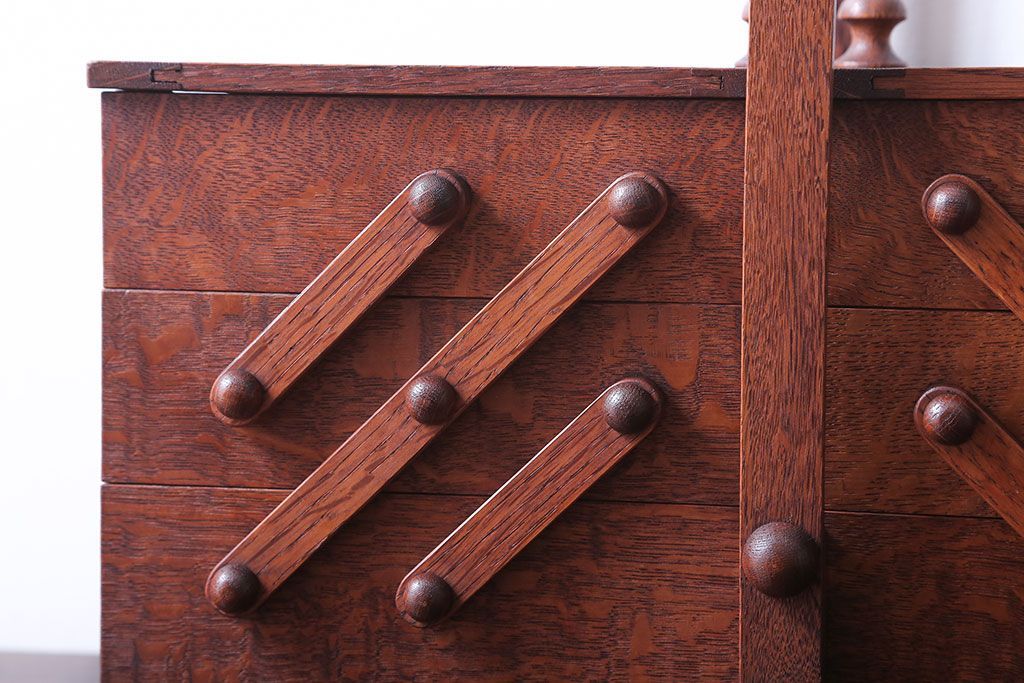 アンティーク雑貨 和製アンティーク 古いナラ材の階段状に広がる脚付き裁縫箱
