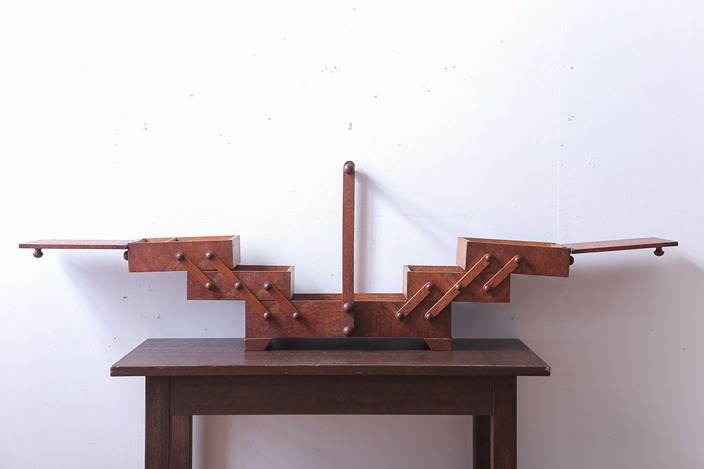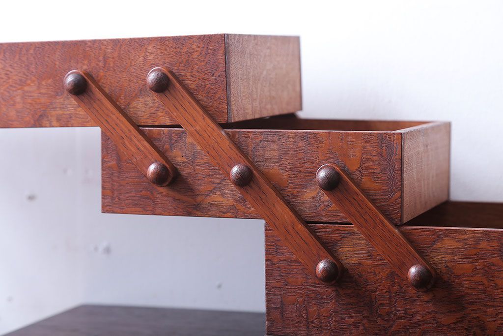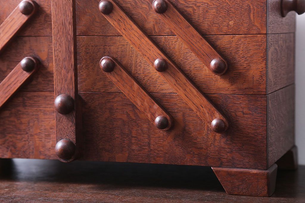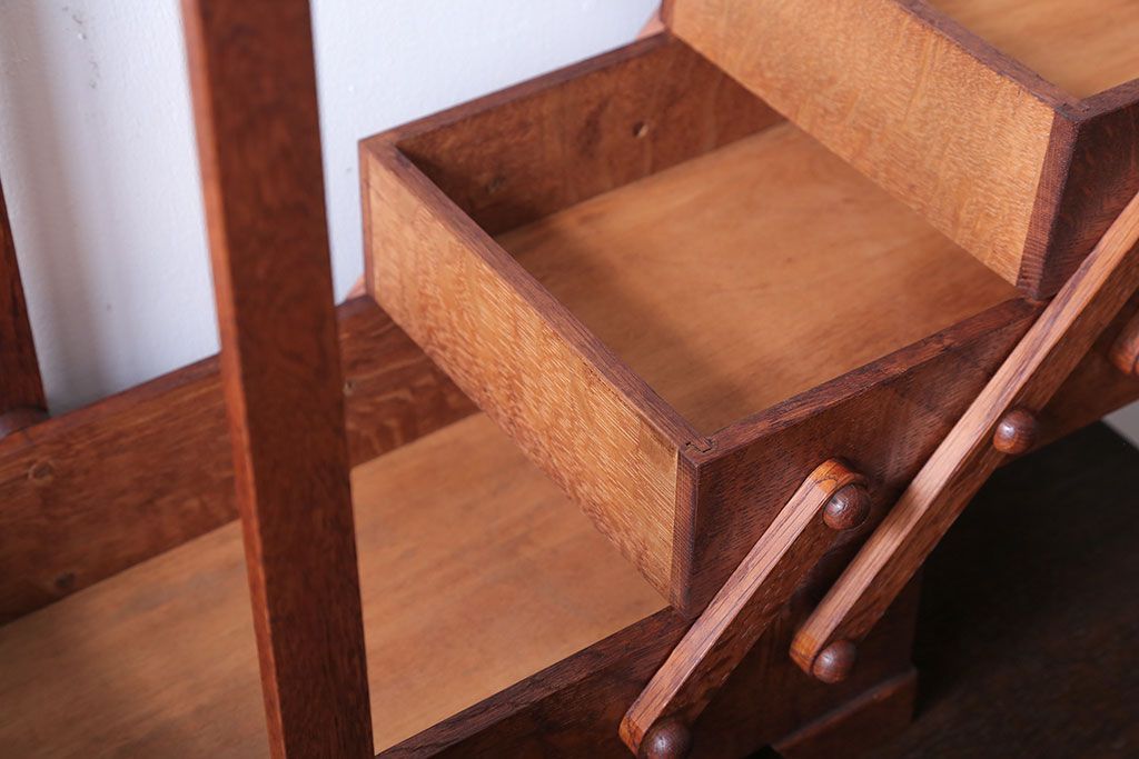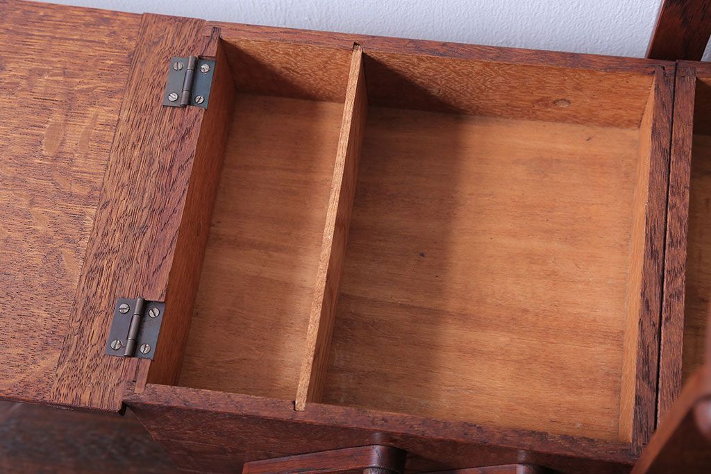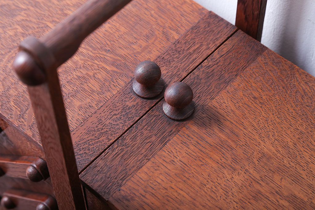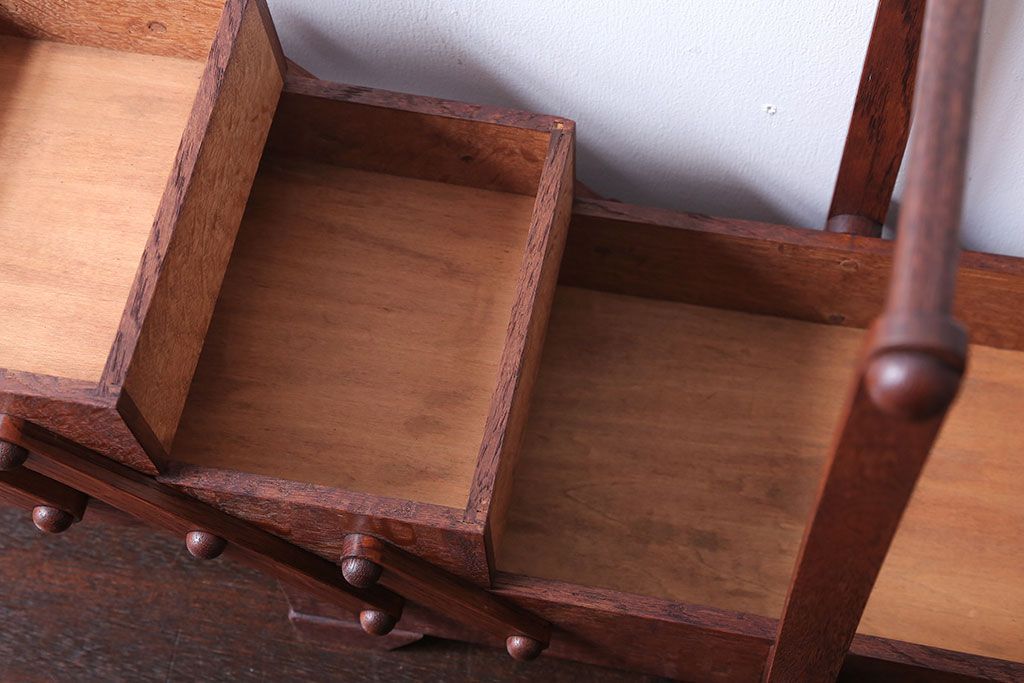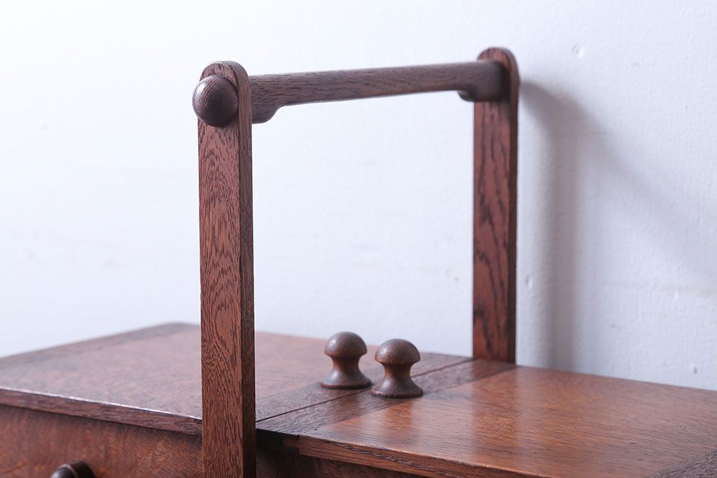 アンティーク雑貨 和製アンティーク 古いナラ材の階段状に広がる脚付き裁縫箱