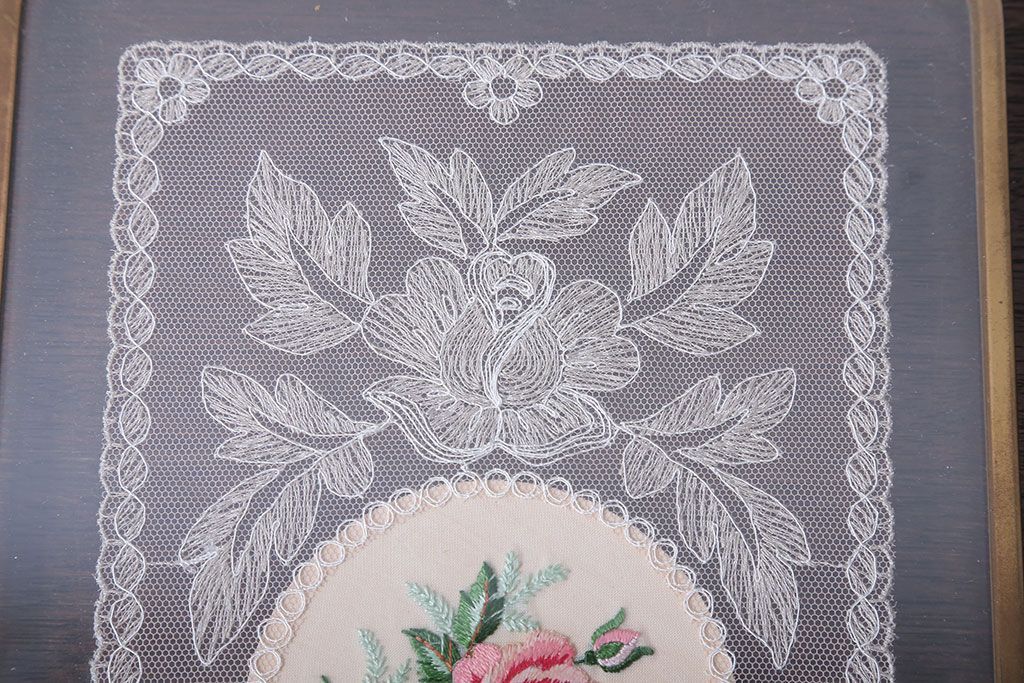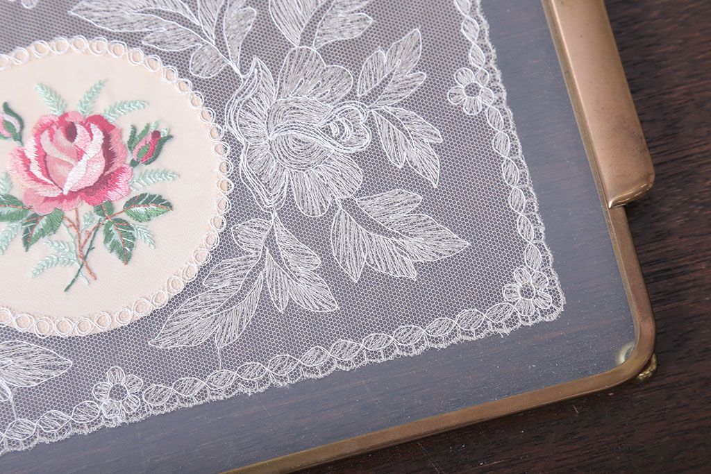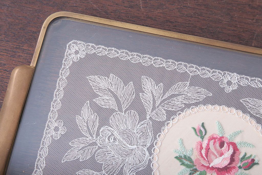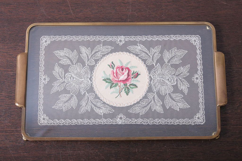 アンティーク雑貨 イギリスアンティーク バラの刺繍のガラストレー