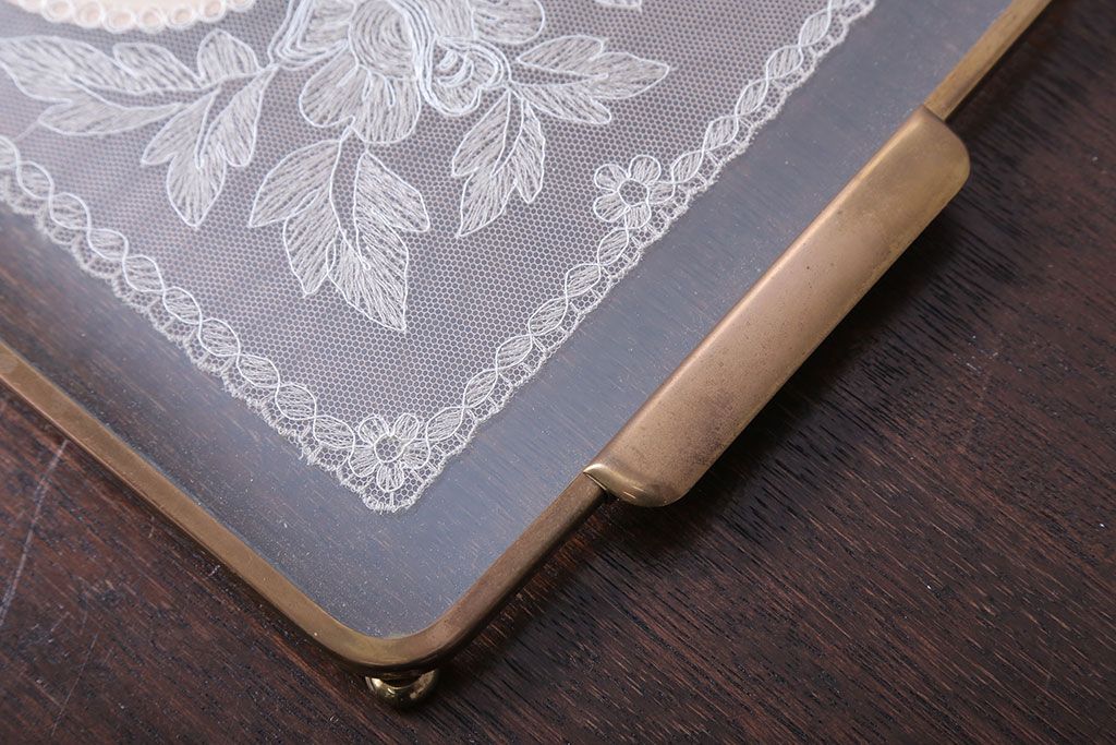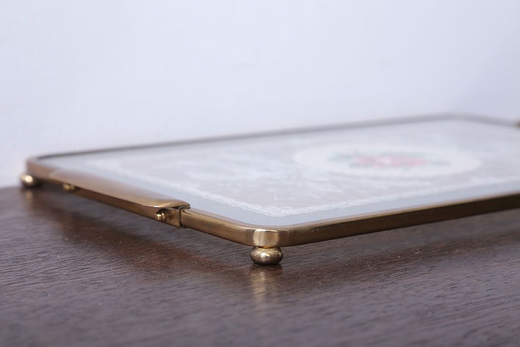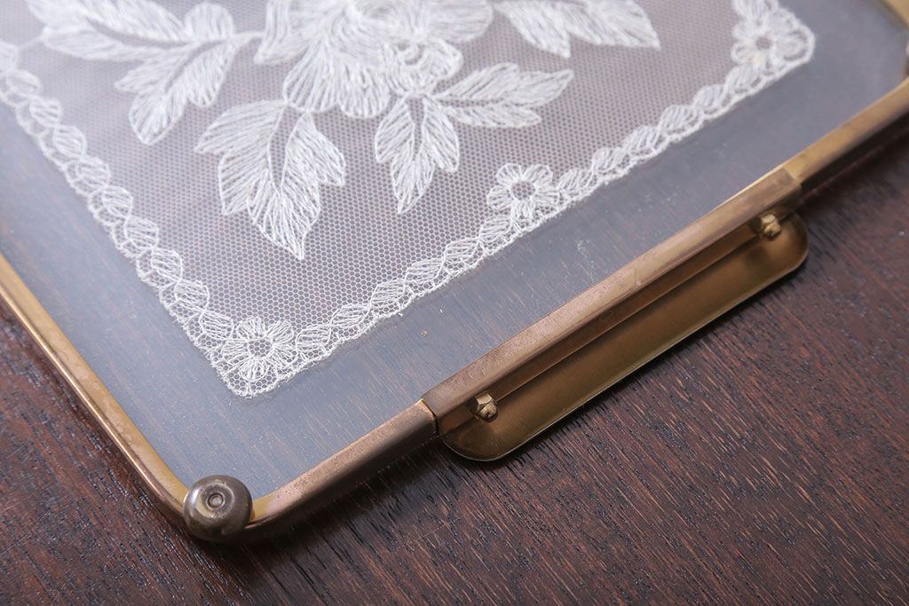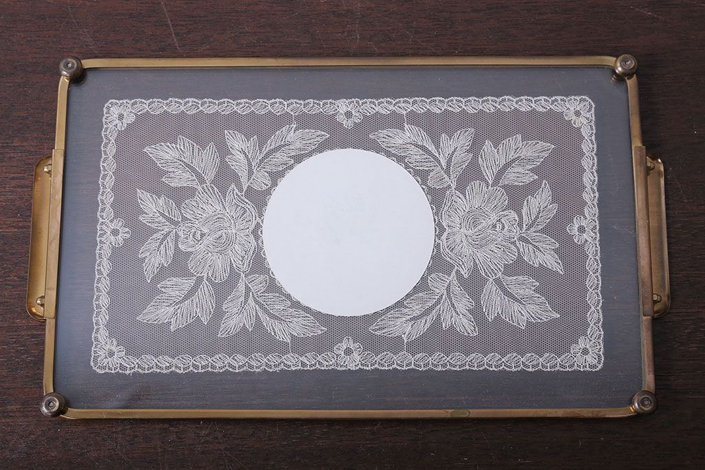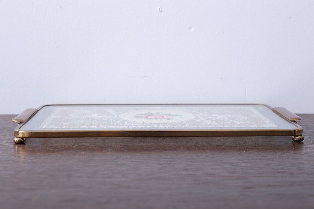 ラフジュ工房> 洋食器・キッチン用品> トレー > アンティーク雑貨 イギリスアンティーク バラの刺繍のガラストレー