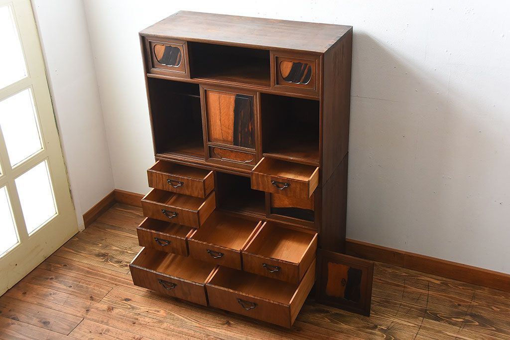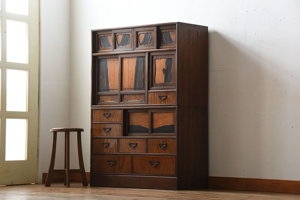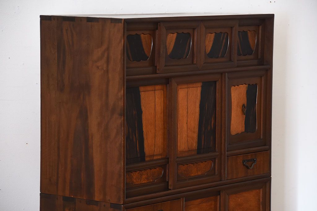 アンティーク家具 古民具・骨董 黒柿材と栃の木材の高級茶箪笥
