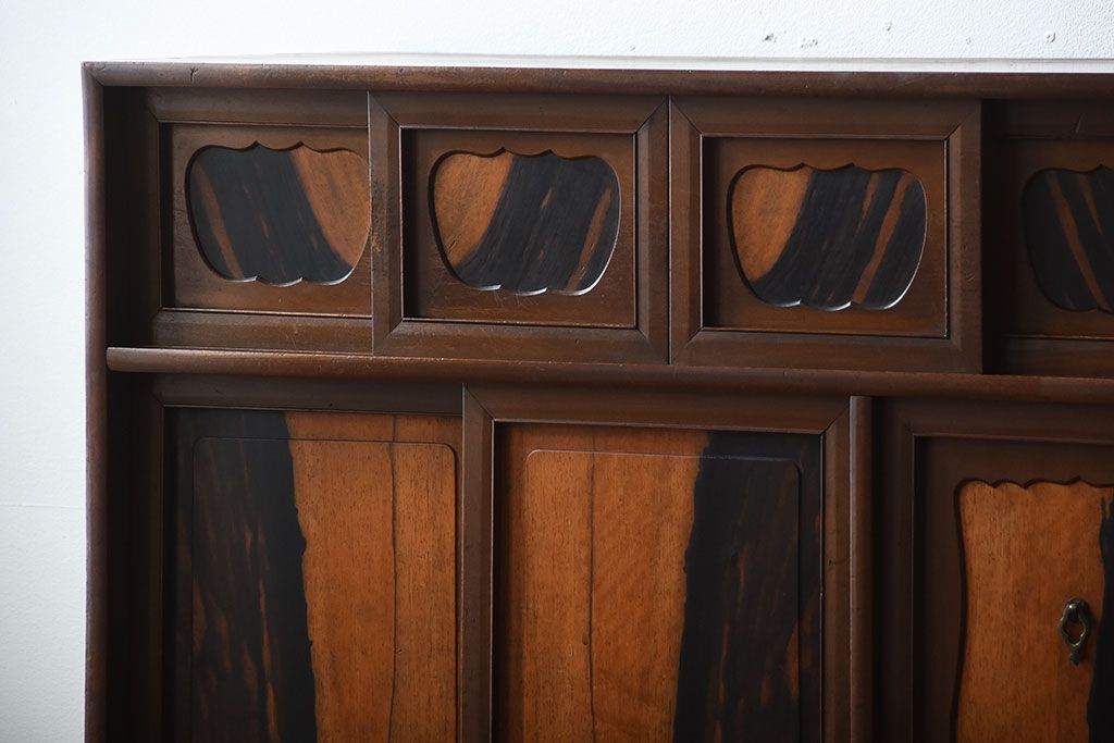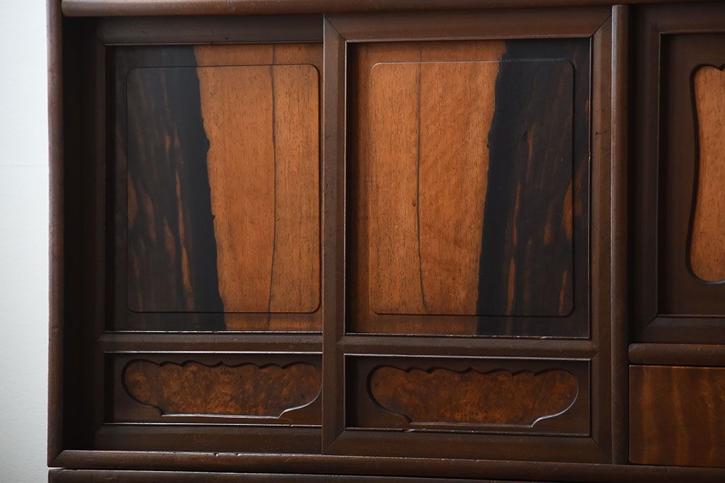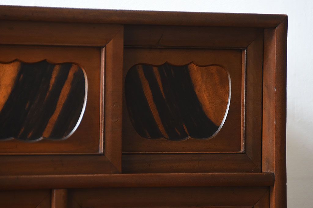 ラフジュ工房> キャビネット・戸棚> サイドボード > アンティーク家具 古民具・骨董 黒柿材と栃の木材の高級茶箪笥