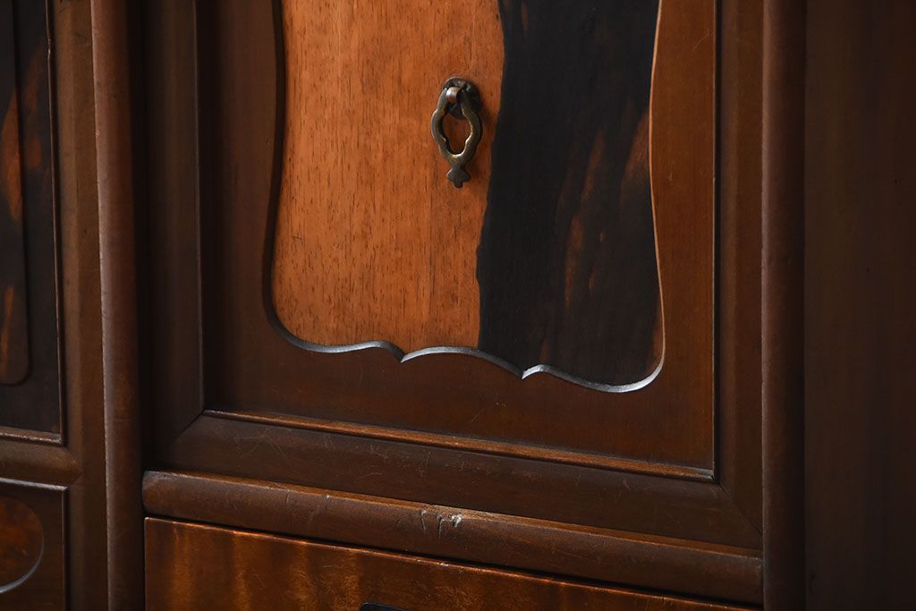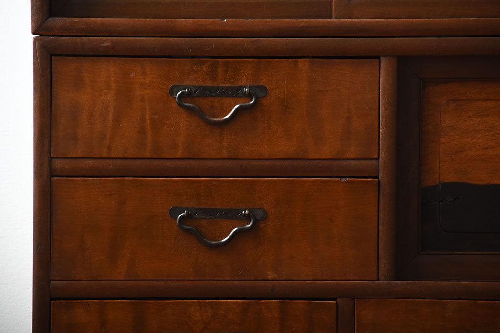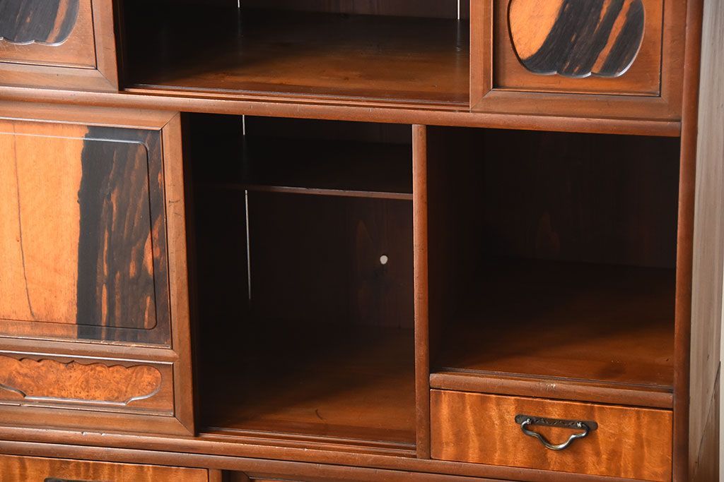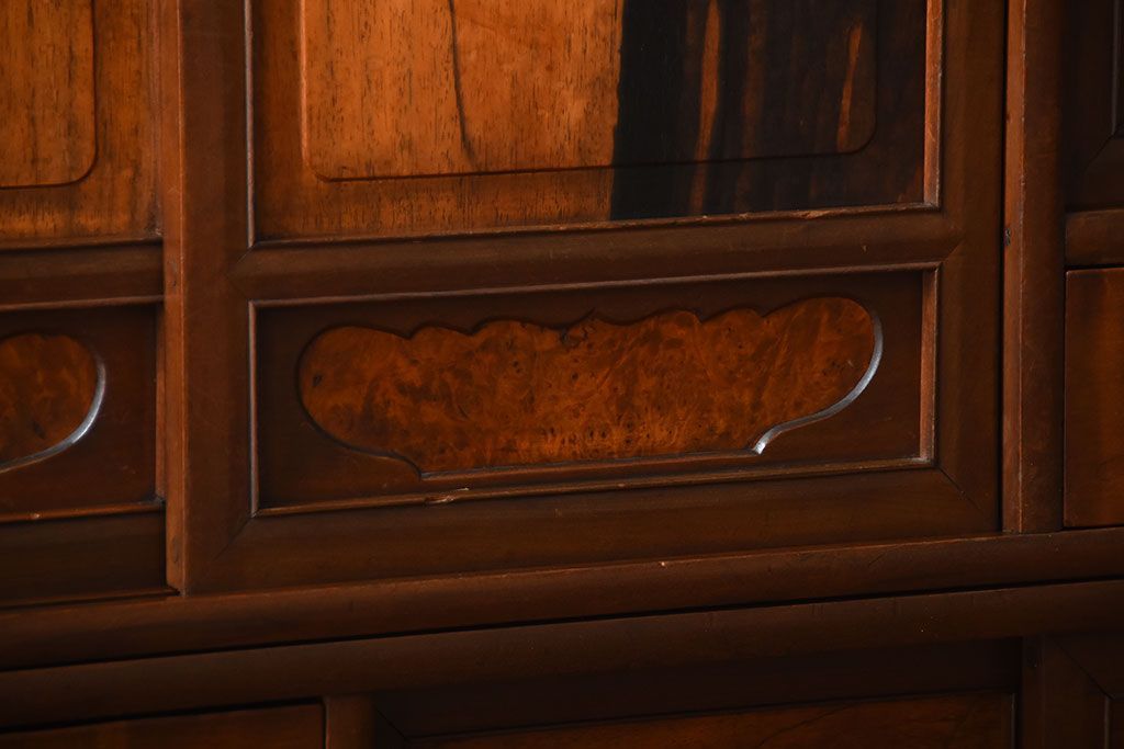 ラフジュ工房> キャビネット・戸棚> 食器棚・カップボード > アンティーク家具 古民具・骨董 黒柿材と栃の木材の高級茶箪笥