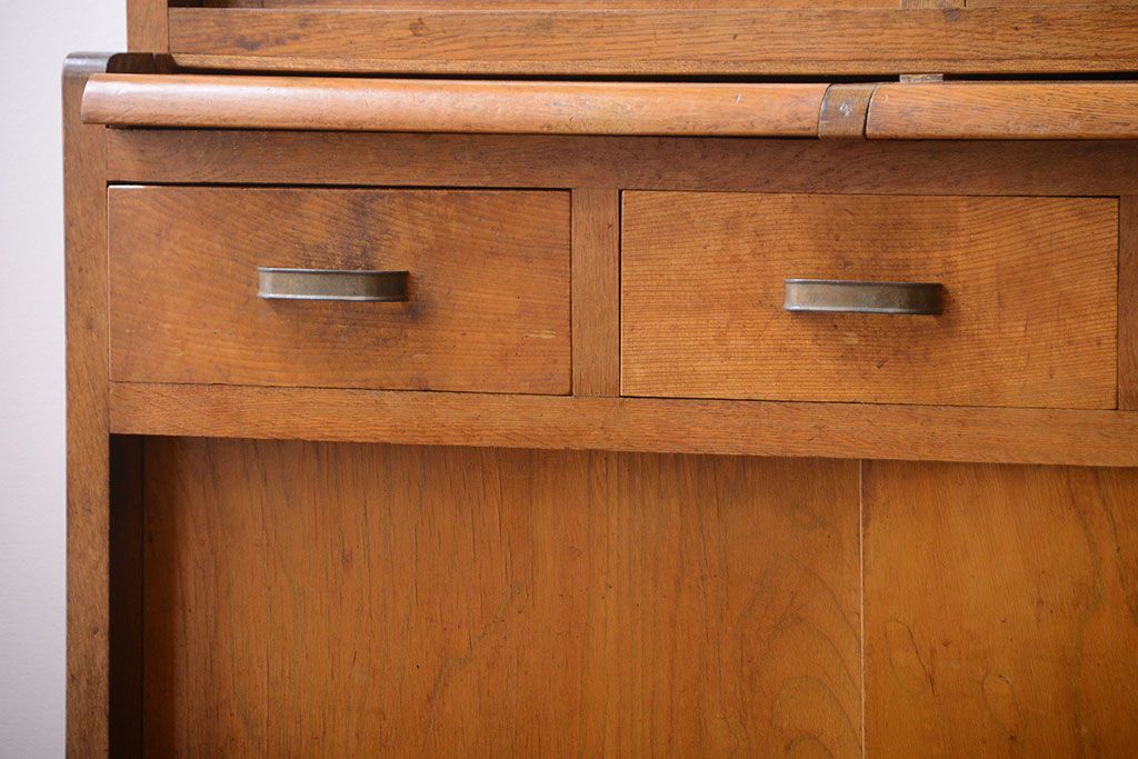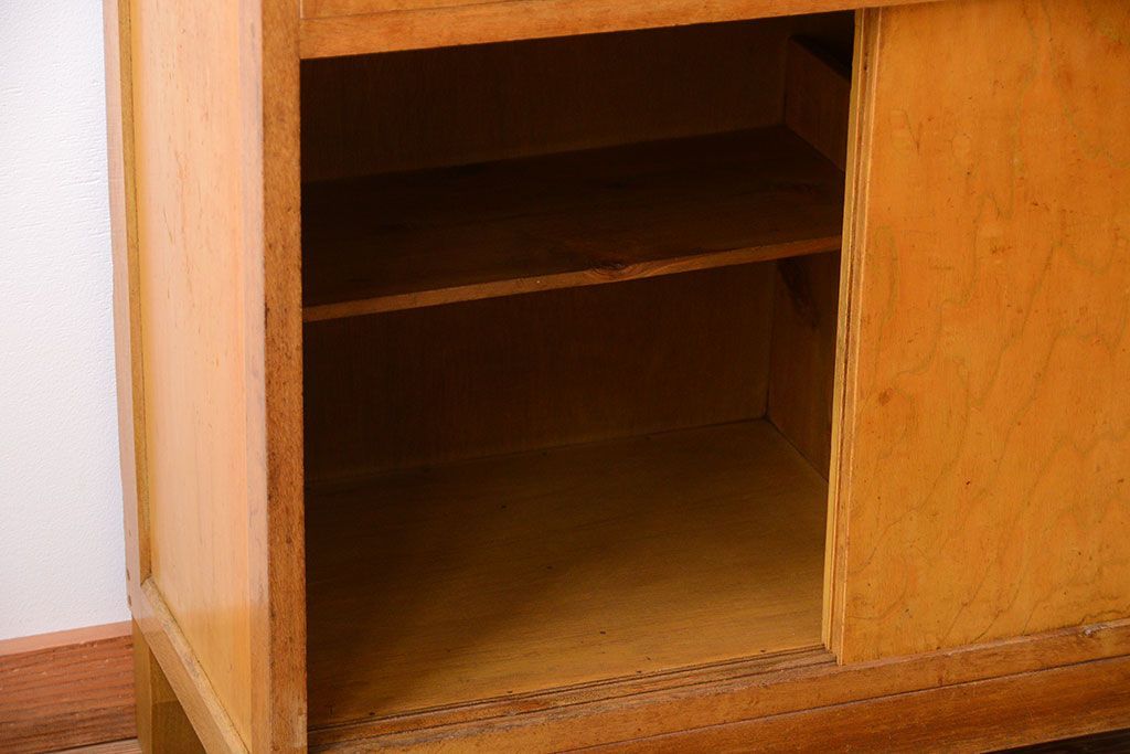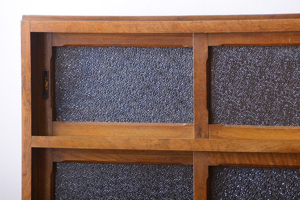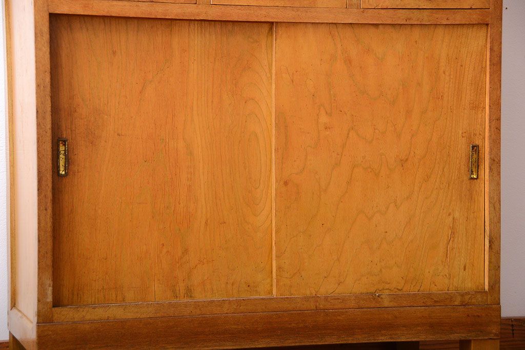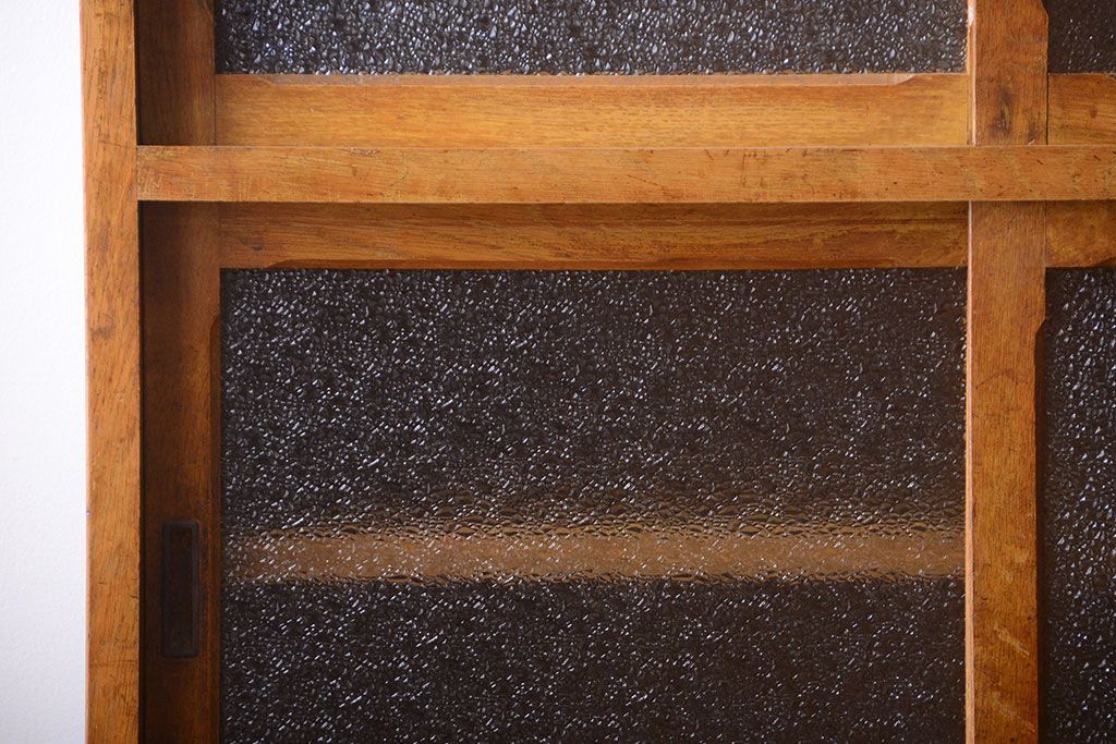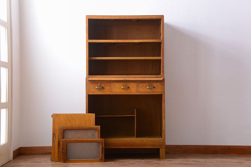 昭和レトロ ダイヤガラス入り!古い木製の脚付き食器棚(カップボード)です。