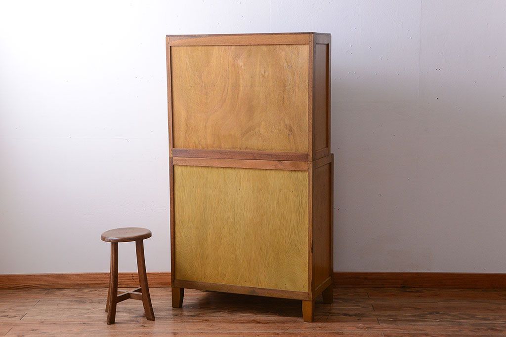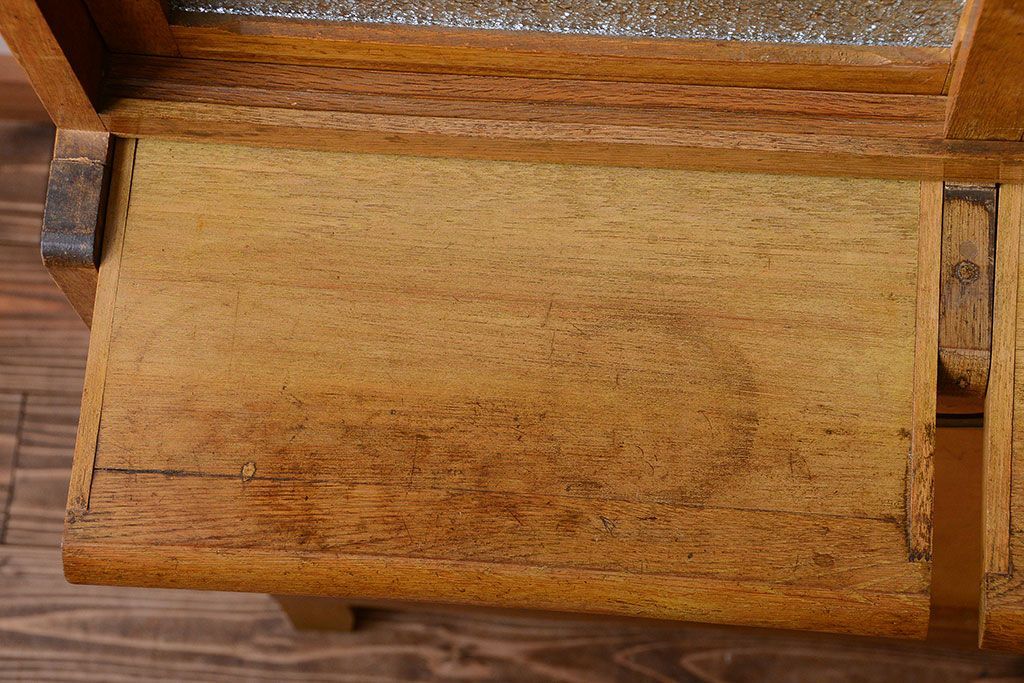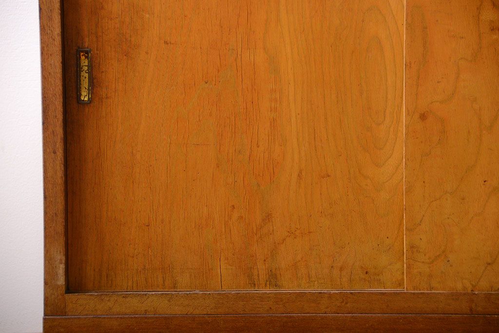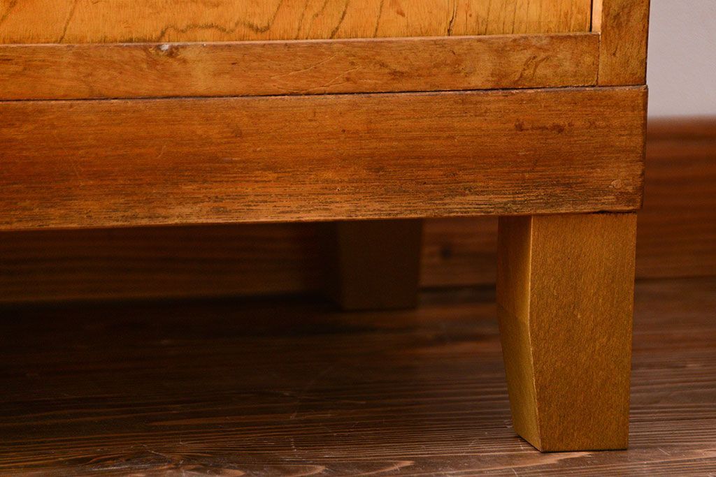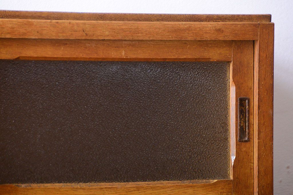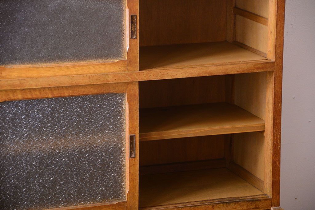 レトロ家具 昭和レトロ ダイヤガラス入り!古い木製の脚付き食器棚(カップボード)