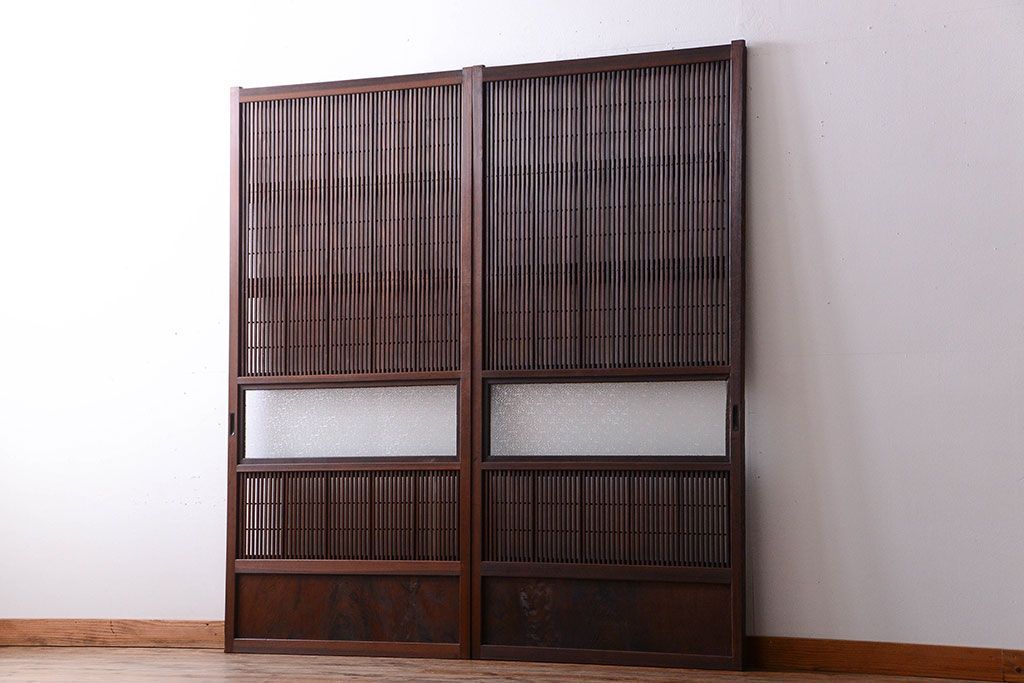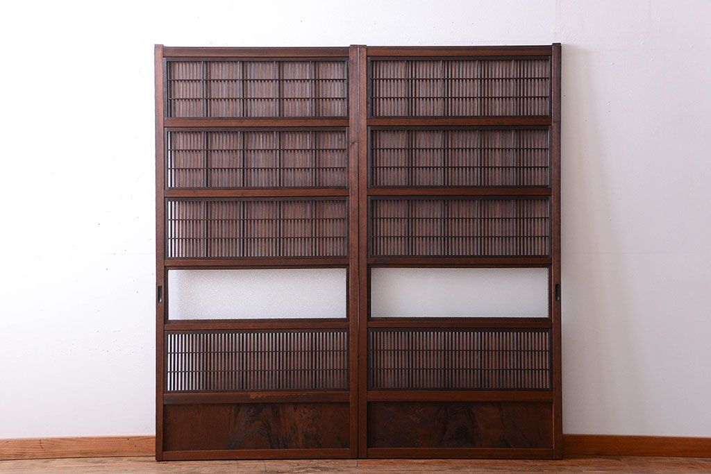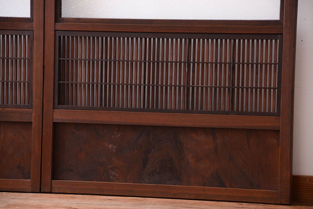 古民具・骨董 裏障子付き!ダイヤガラス入り格子戸2枚セット