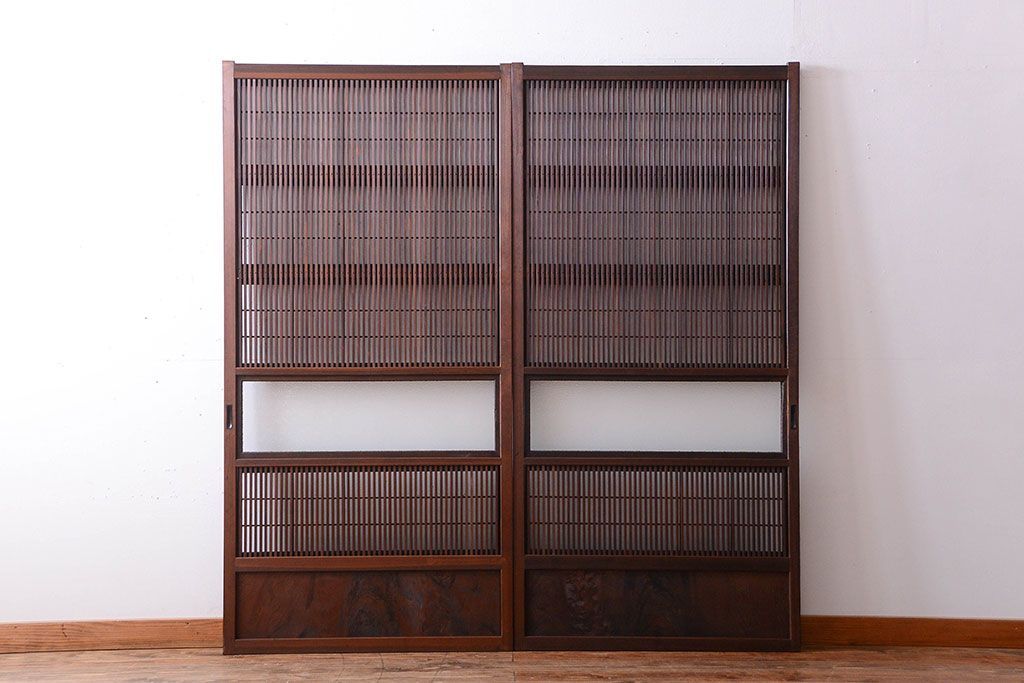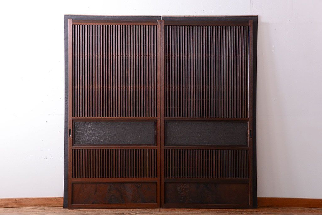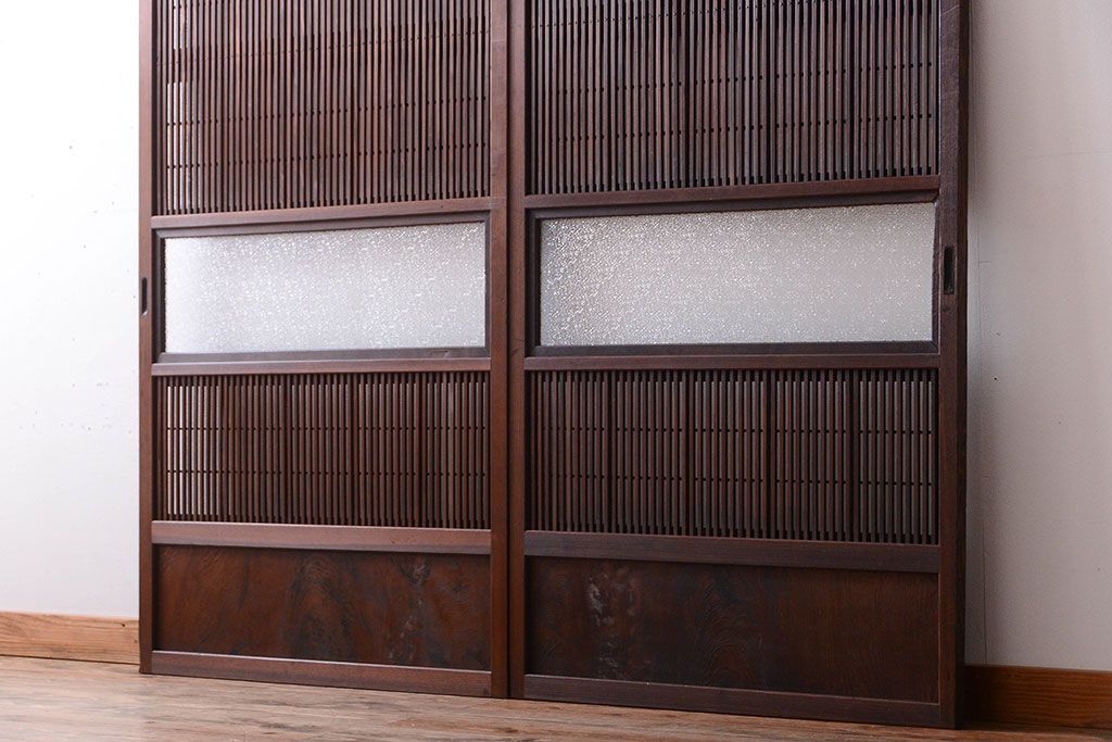古民具・骨董 裏障子付き!ダイヤガラス入り格子戸2枚セットです。