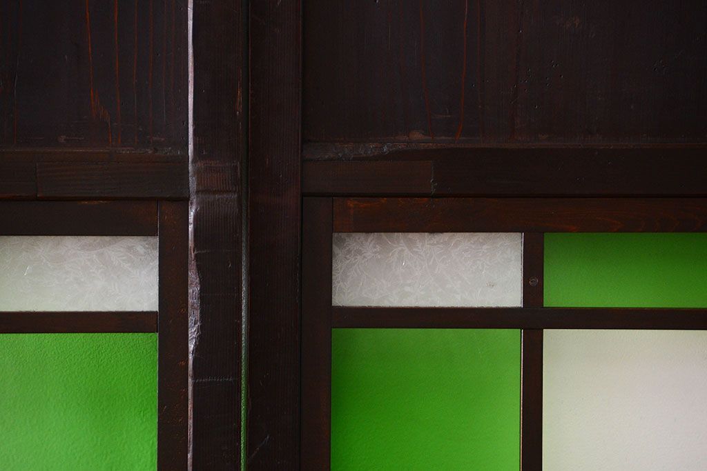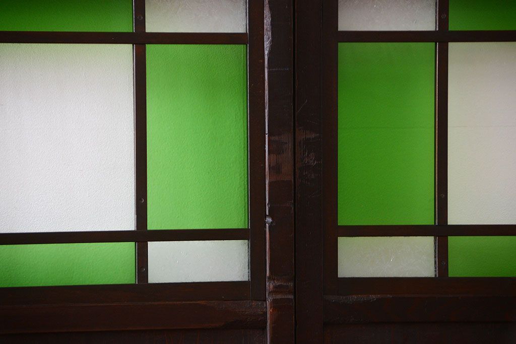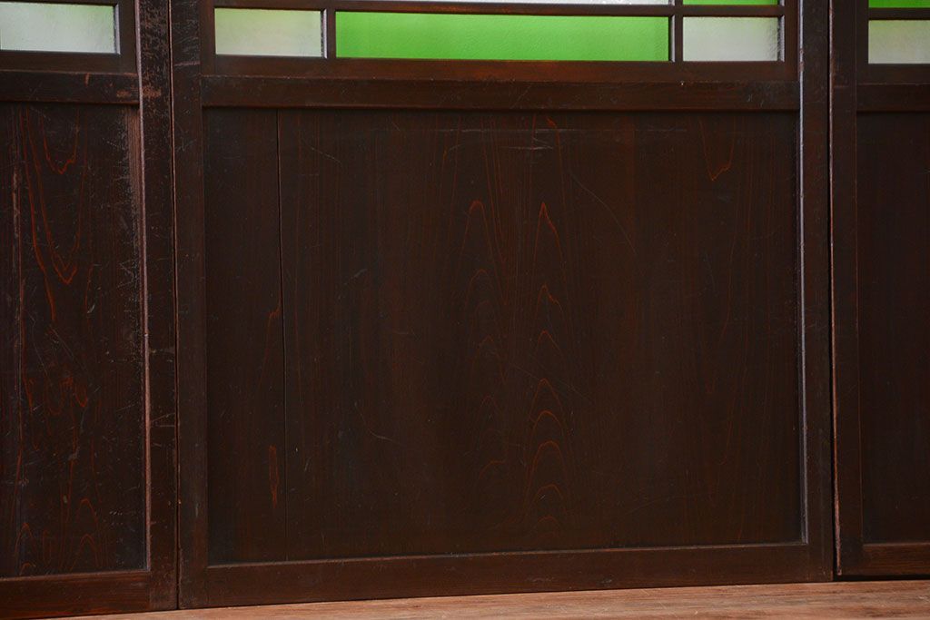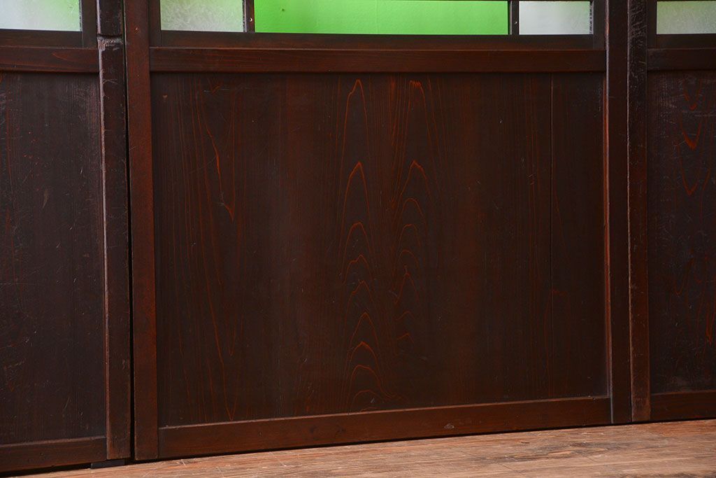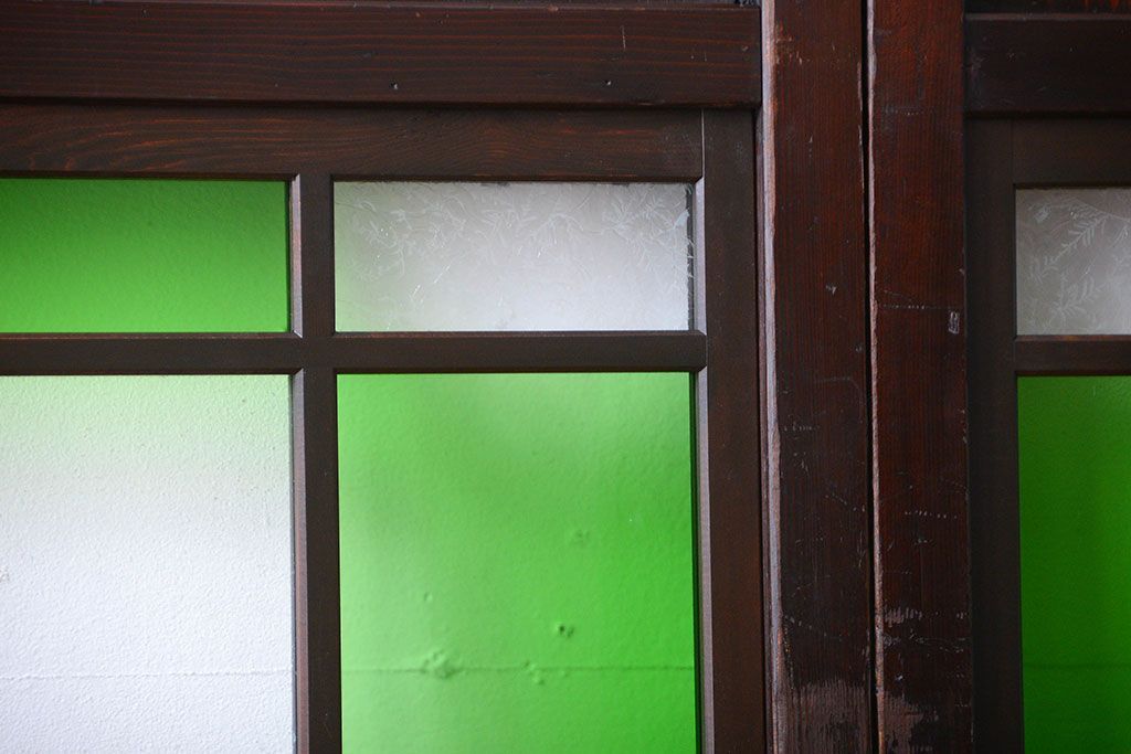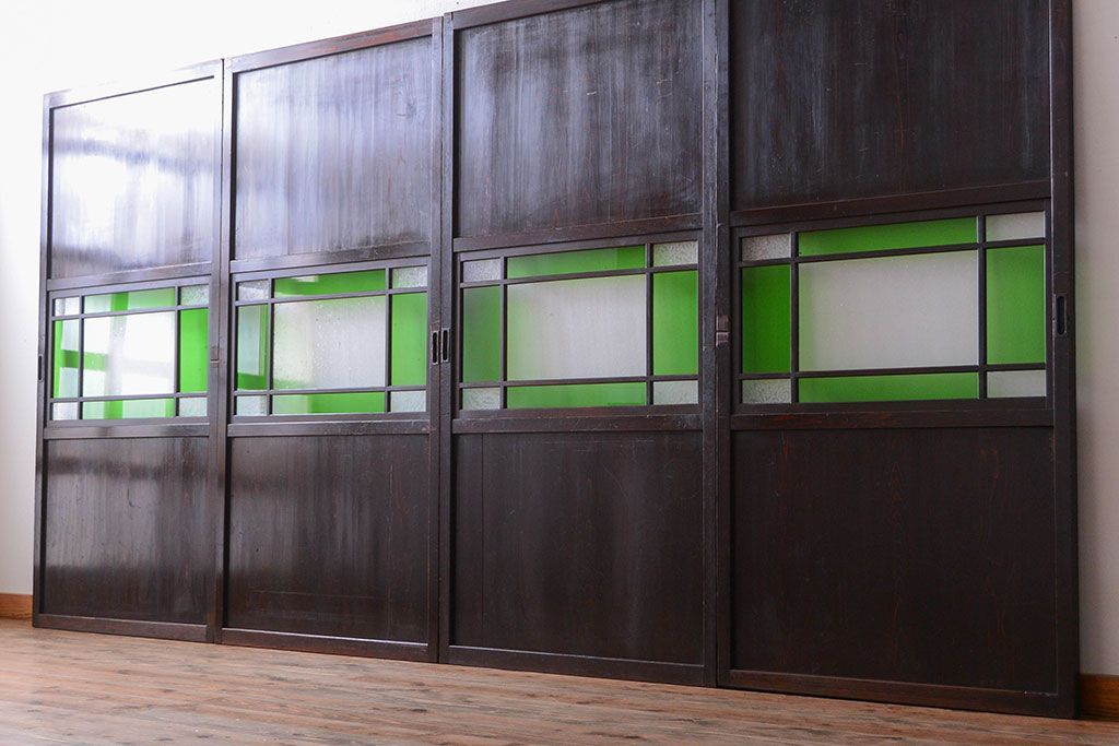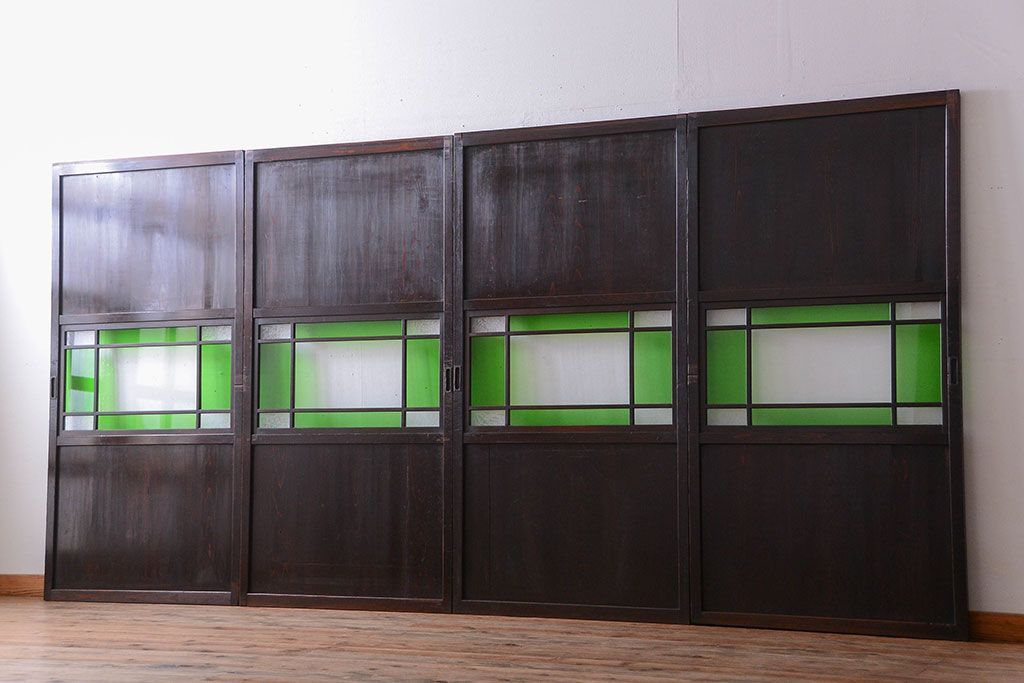 ラフジュ工房> ドア・建具> 板戸・帯戸 > アンティーク 色ガラス入り!モダンなガラス帯戸4枚セット