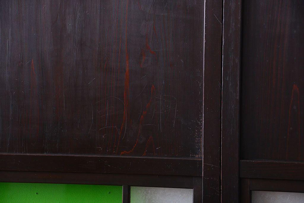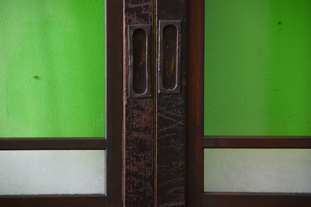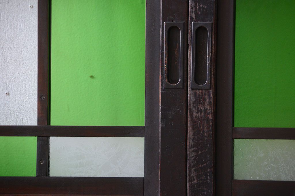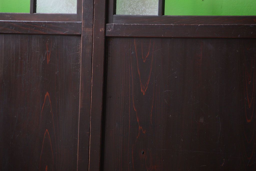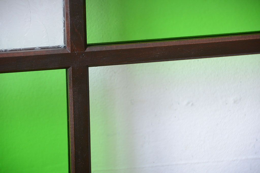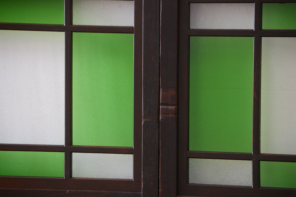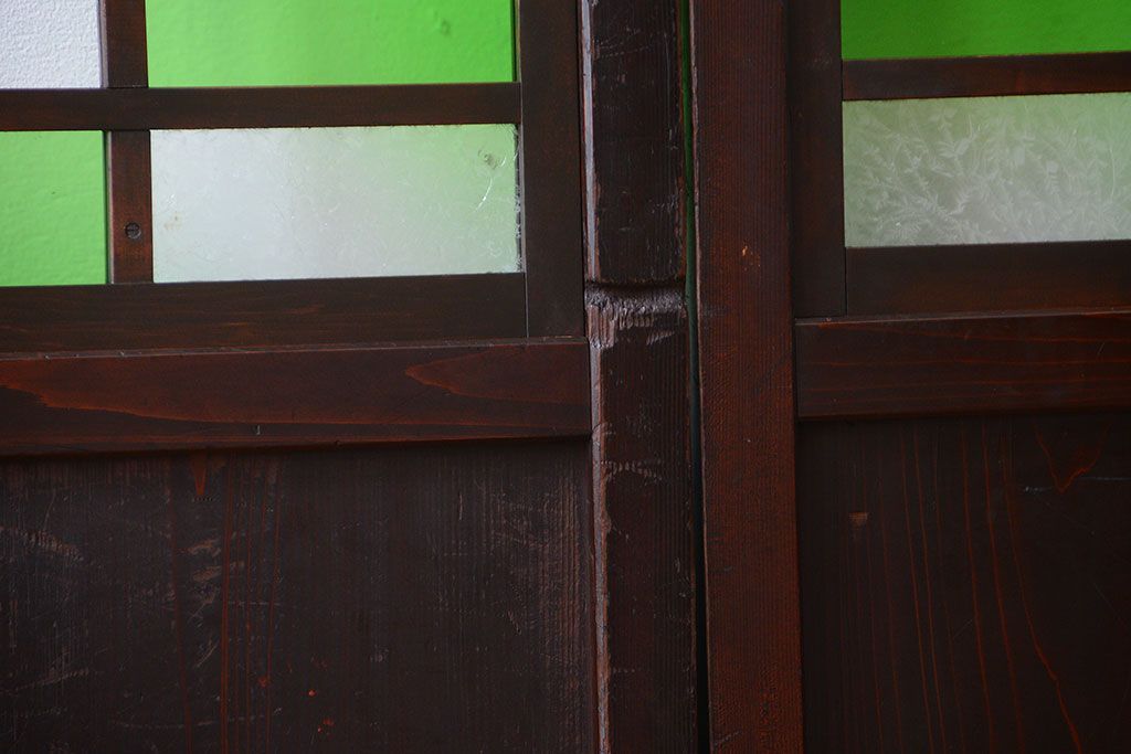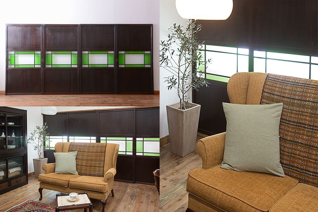 ラフジュ工房> ドア・建具> 板戸・帯戸 > アンティーク 色ガラス入り!モダンなガラス帯戸4枚セット