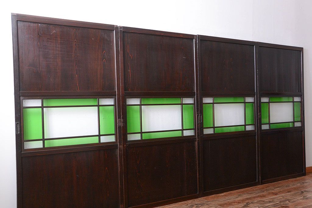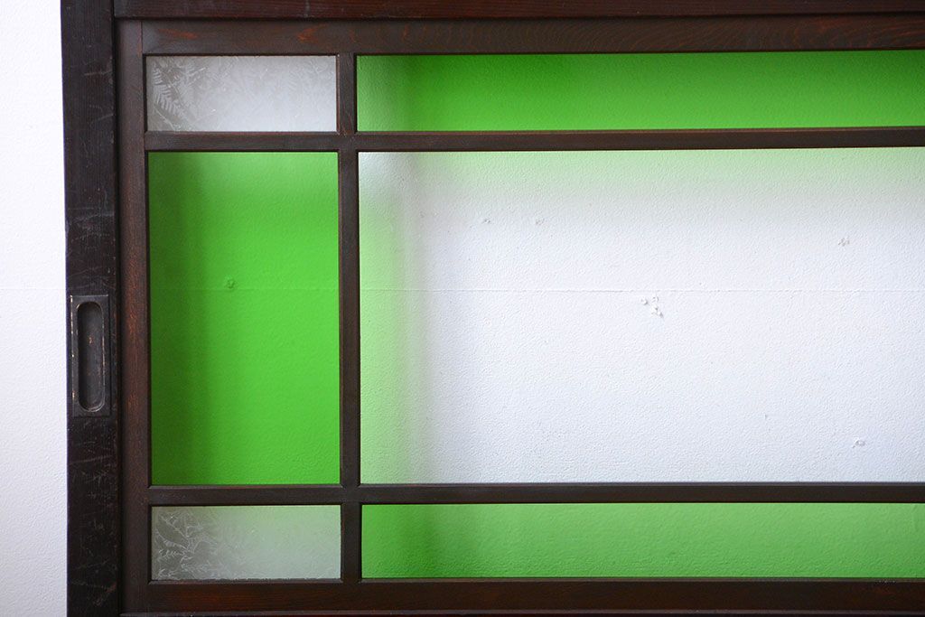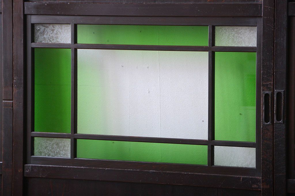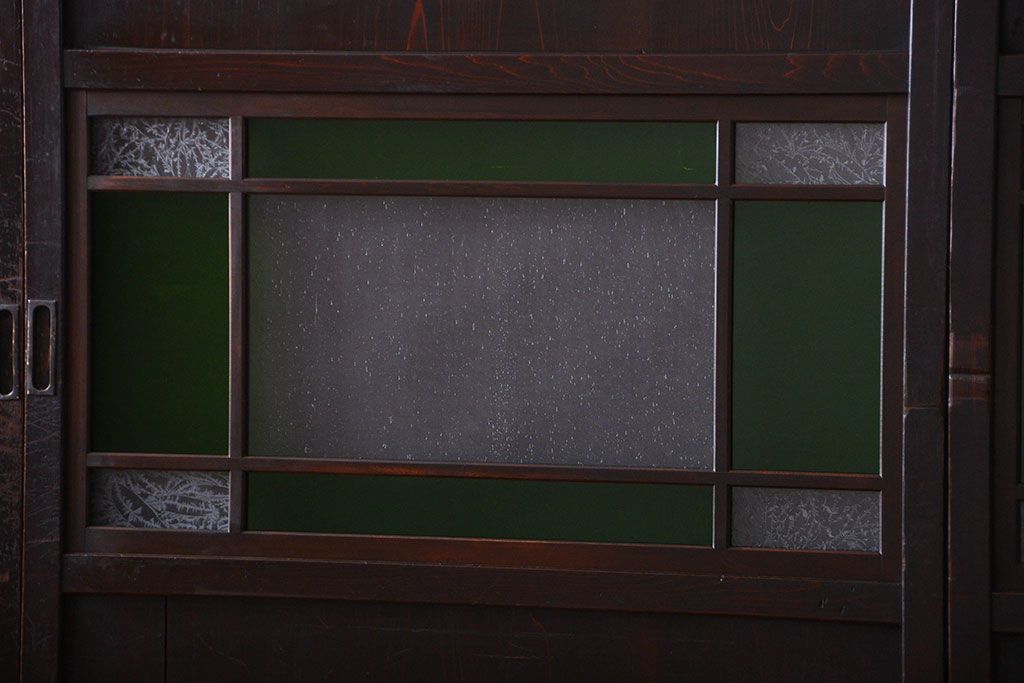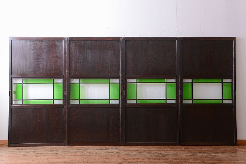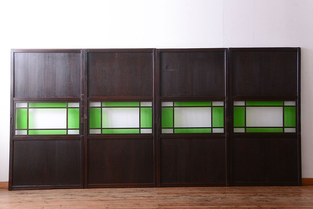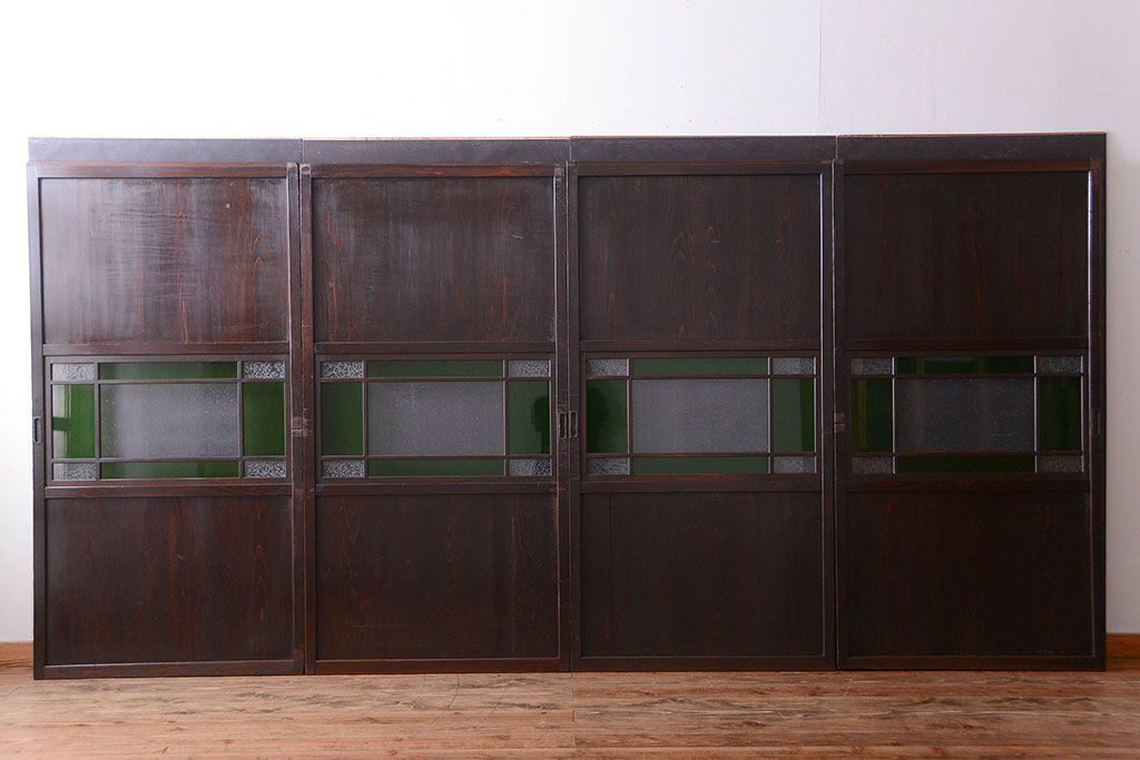 アンティーク 色ガラス入り!モダンなガラス帯戸4枚セット